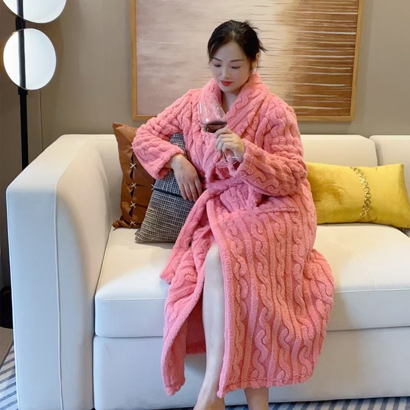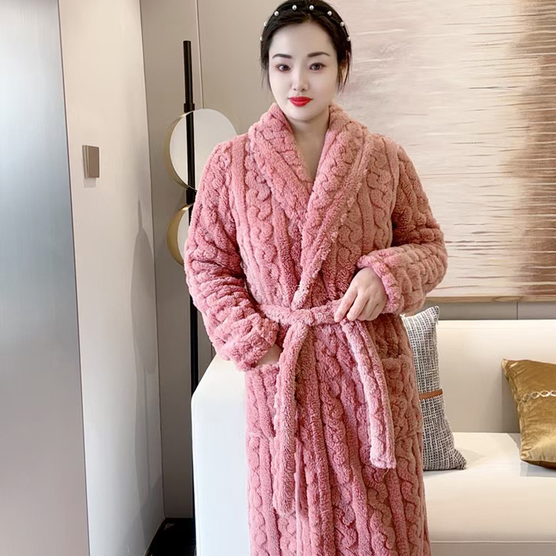 여성용 잠옷 가을, 겨울 플란넬 두꺼운 커플 산호 벨벳 잠옷 겨울 플러스 벨벳 새로운 목욕 가운 남성용 목욕 가운