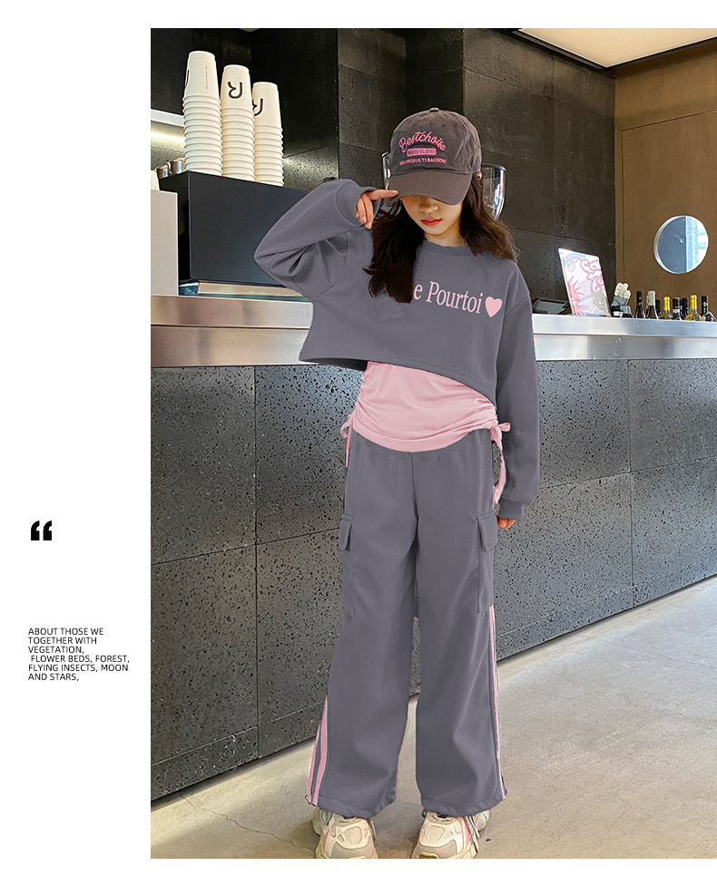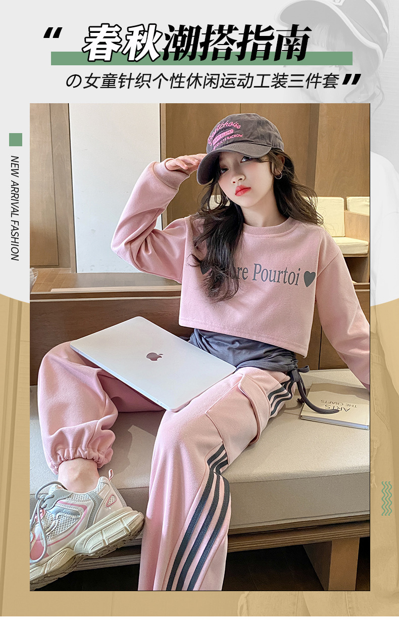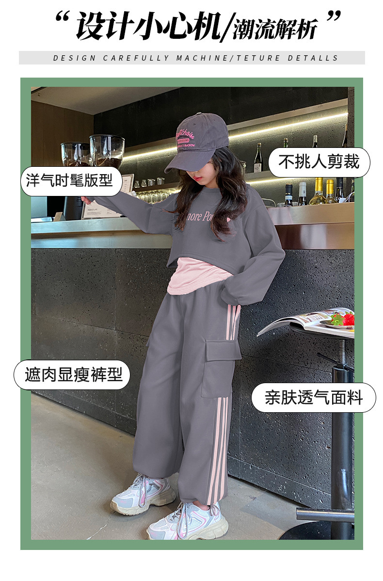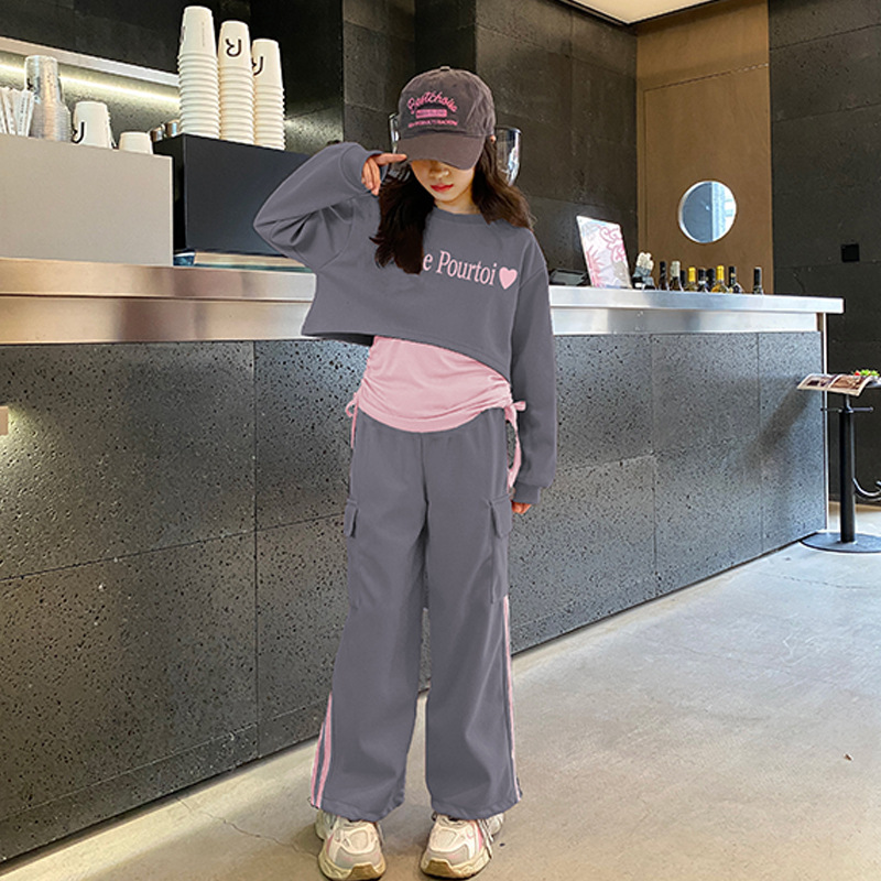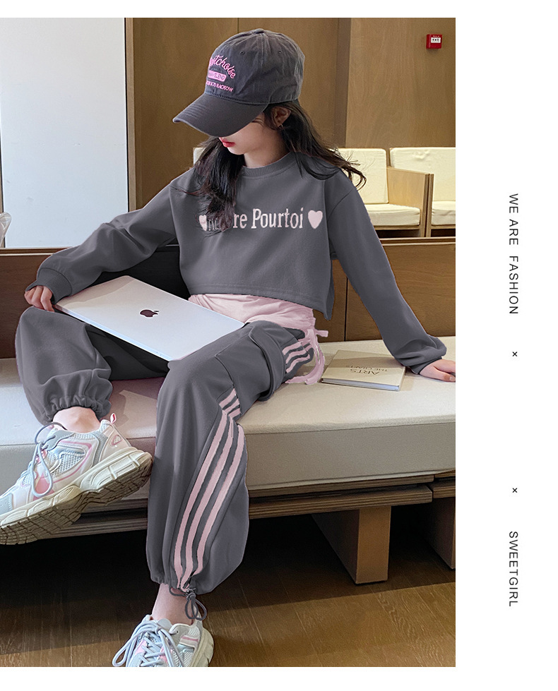 쇼 하이 쇼 새로운 멋진 트렌디 중 큰 어린이 캐주얼 착용 3 피스 땀 허리 얇고 키가 큰 2025 편지 봄 달콤한
