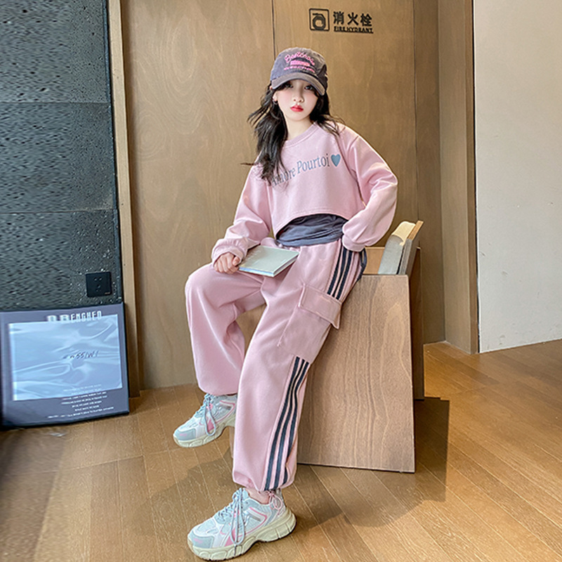 쇼 하이 쇼 새로운 멋진 트렌디 중 큰 어린이 캐주얼 착용 3 피스 땀 허리 얇고 키가 큰 2025 편지 봄 달콤한스토어 가기