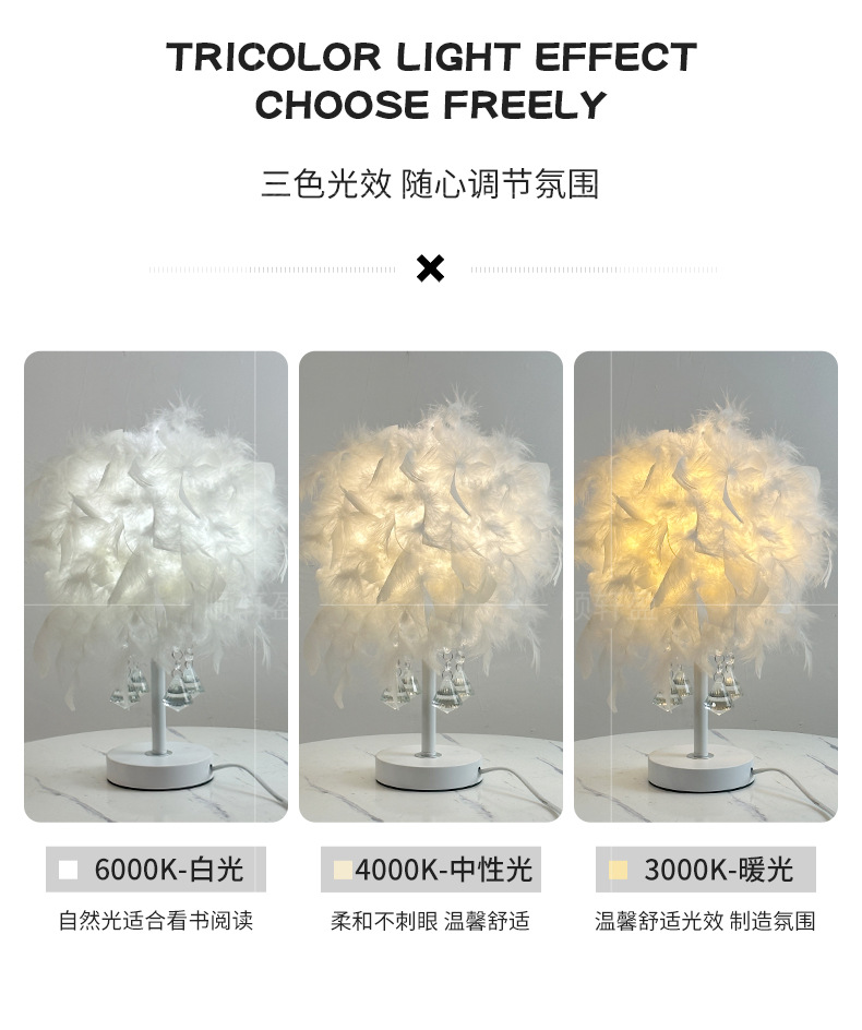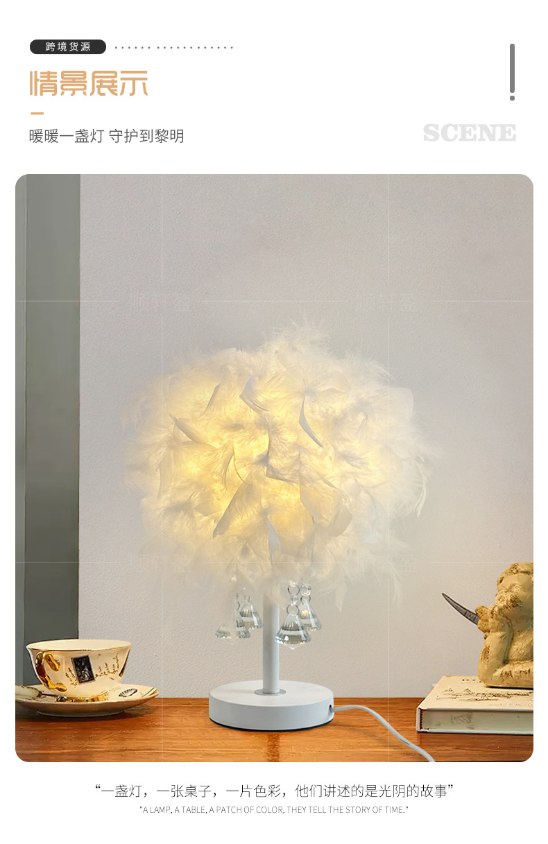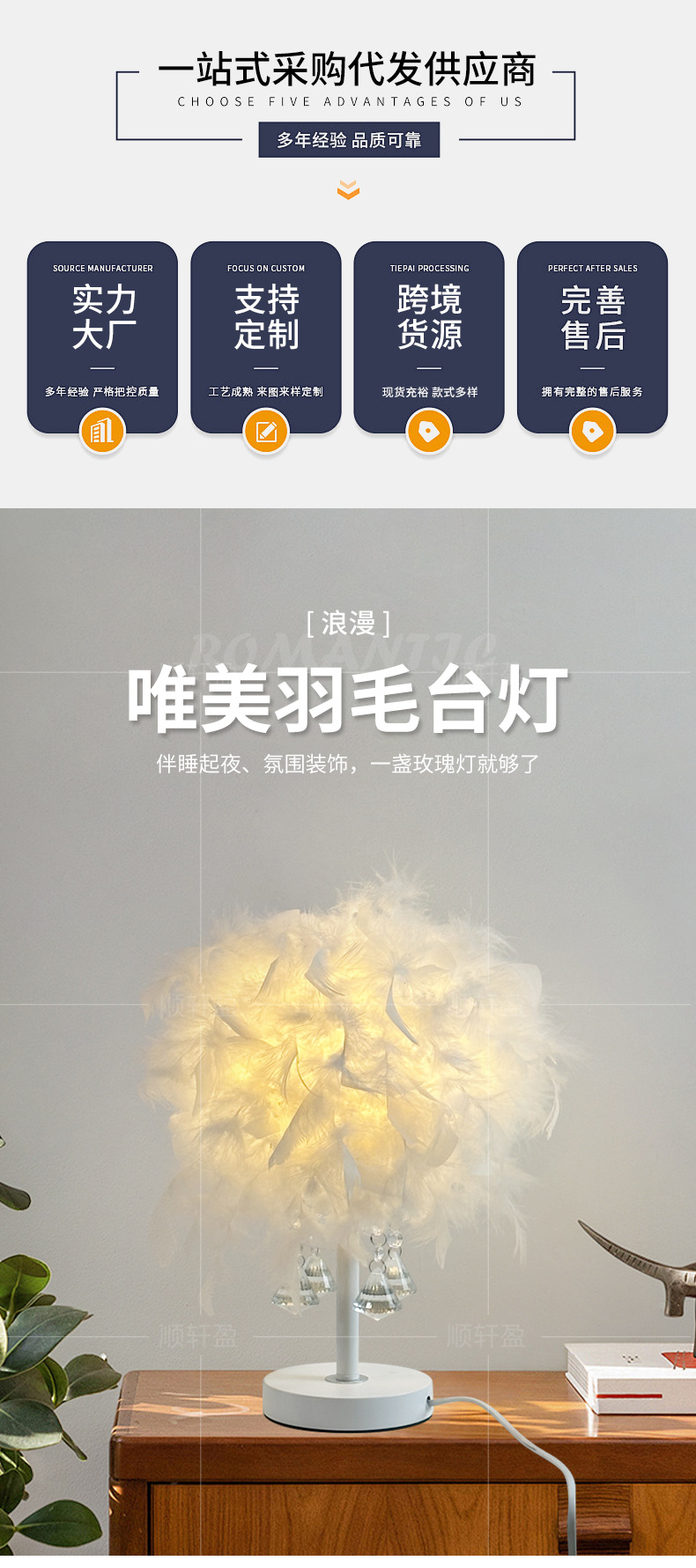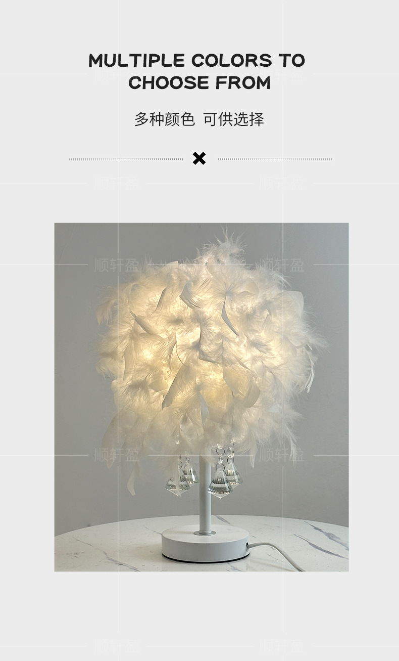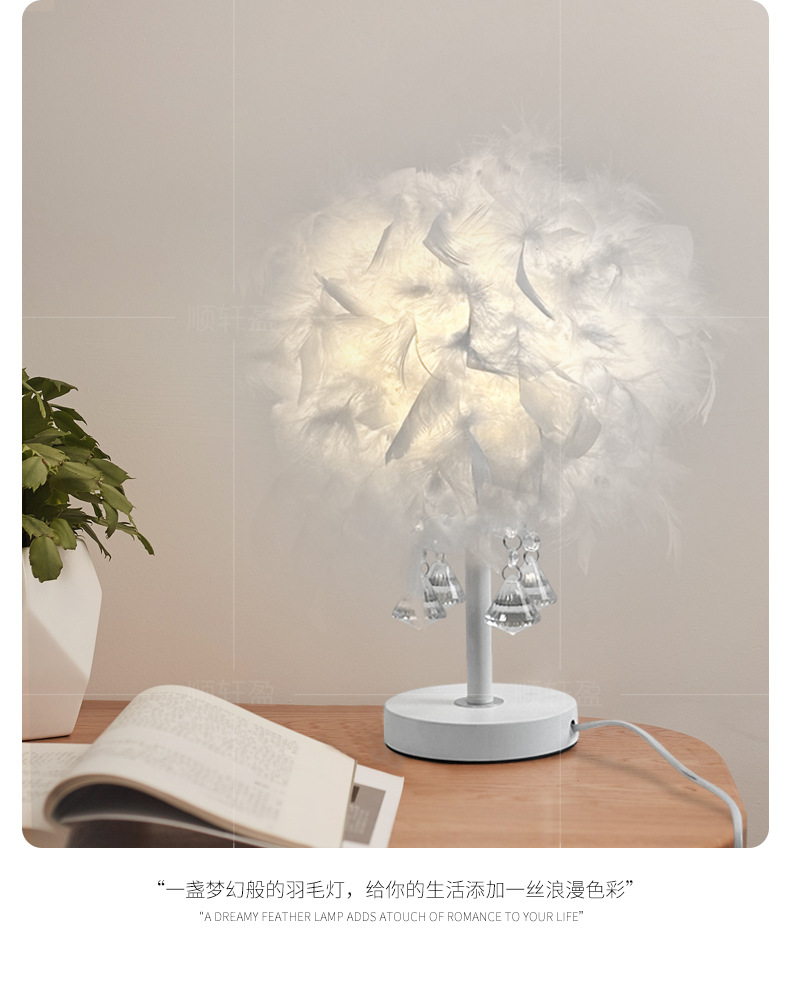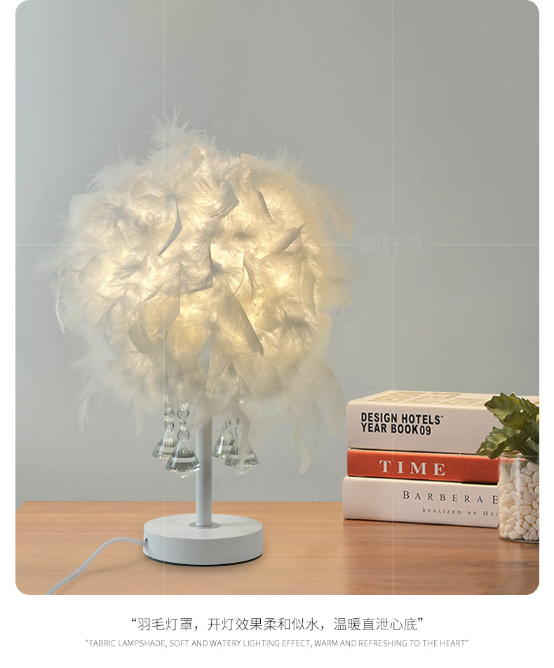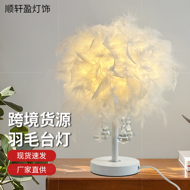 국경 간 아마존 침실 테이블 램프 고급 간단한 스타일 깃털 머리맡 램프 현대 간단한 깃털 장식 테이블 램프