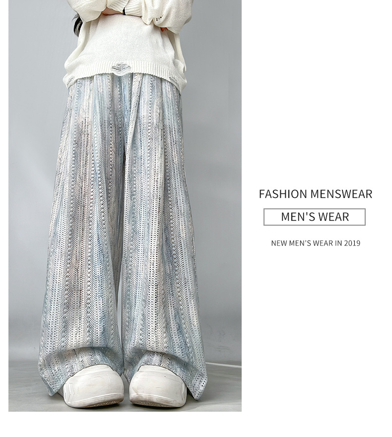 블루 아이스 실크 넓은 다리 바지 여성 여름 새로운 높은 허리 느슨한 복용량 캐주얼 쿨 바지 넥타이 염색 중공 랩 바지스토어 가기