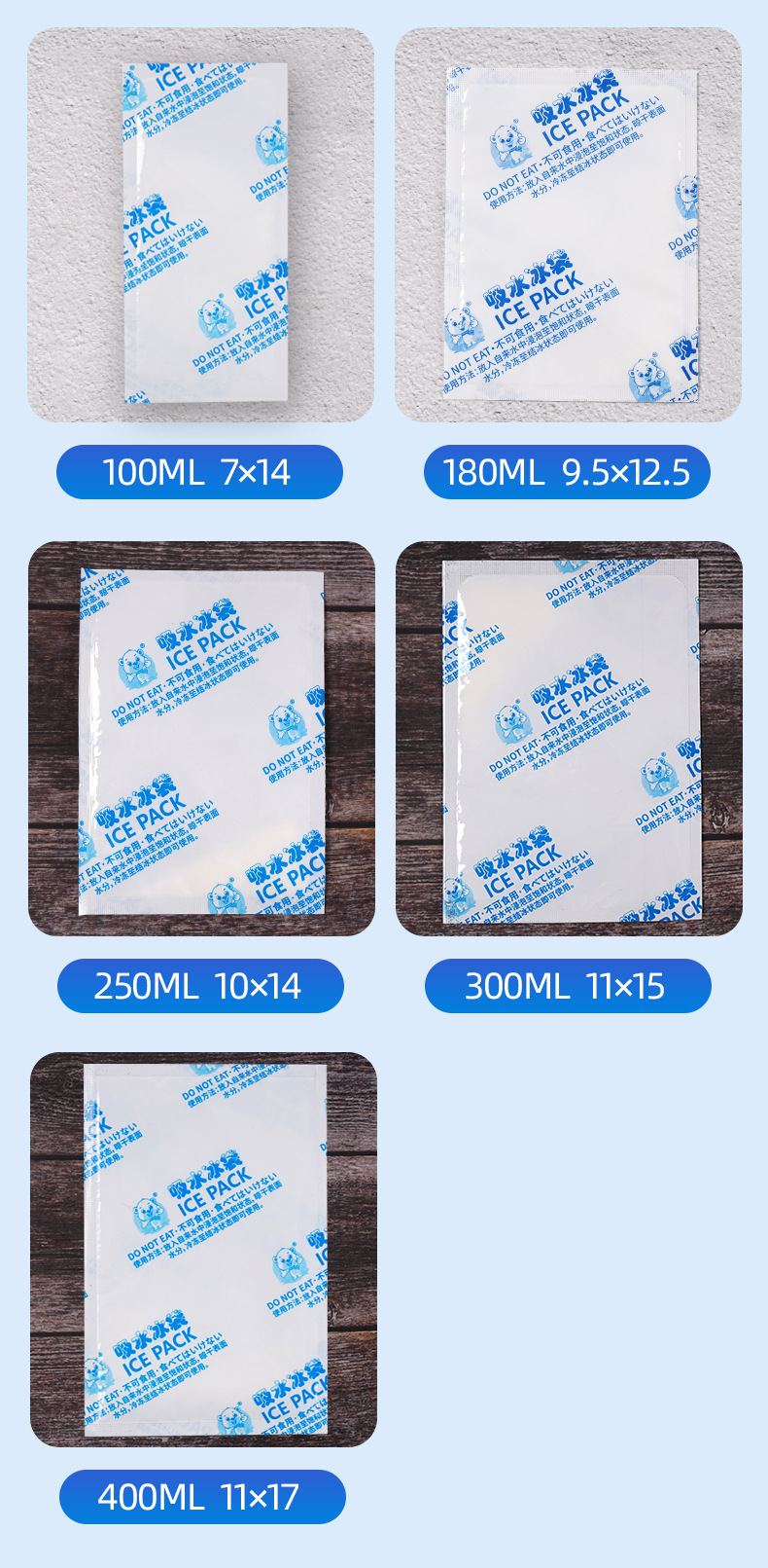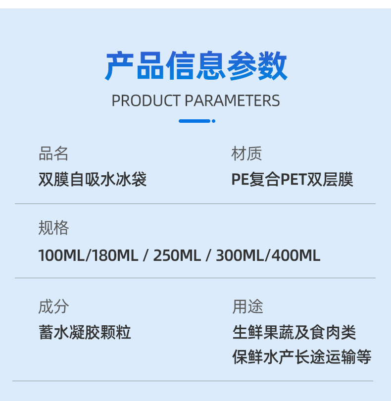 180ml 이중 필름 자체 흡수 아이스 백 물리적 냉각 얼음 압축 장기 냉간 보존 대용량 이중 필름 자체 흡수 아이스 백