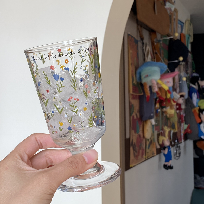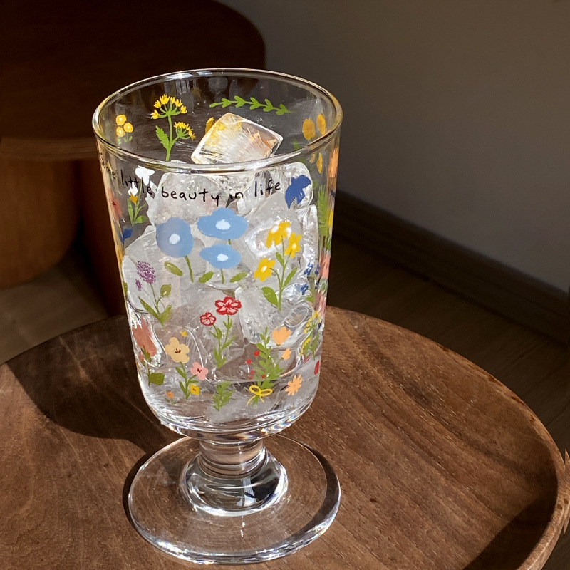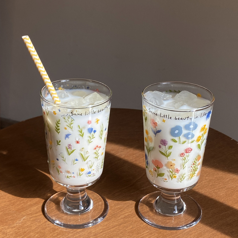 빈티지 프랑스 로맨틱 잔 봄 꽃 유리 달콤한 컵 틈새 간단한 우유 컵 고온 저항