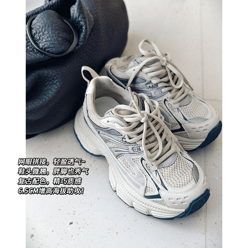 MEIYANG 터보 아빠 신발 가죽*메쉬 | 여성을 위한 미래형 라운드 토 두꺼운 밑창 스포츠 및 캐주얼 신발