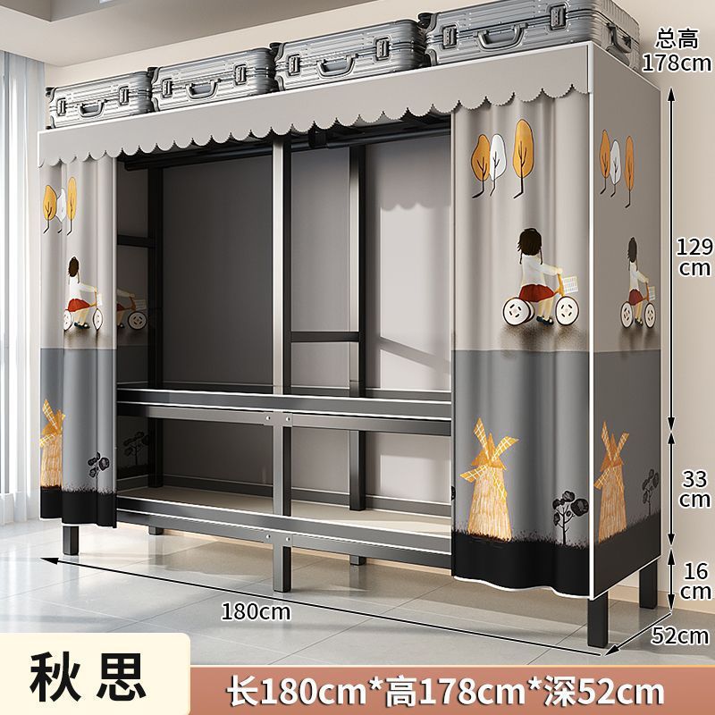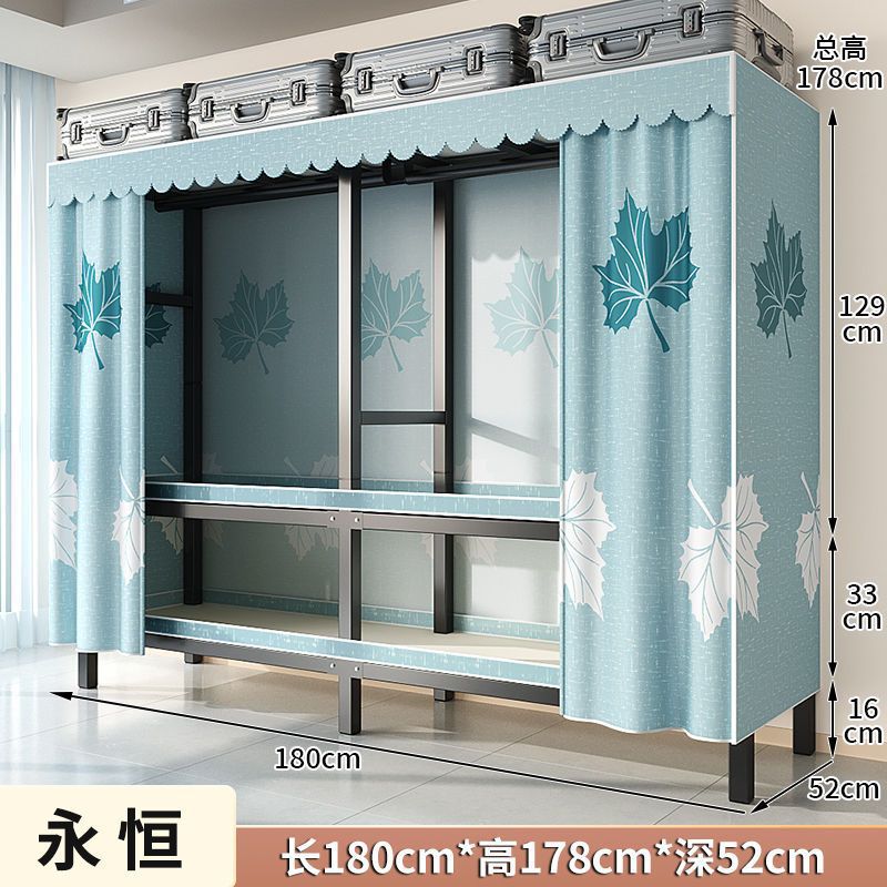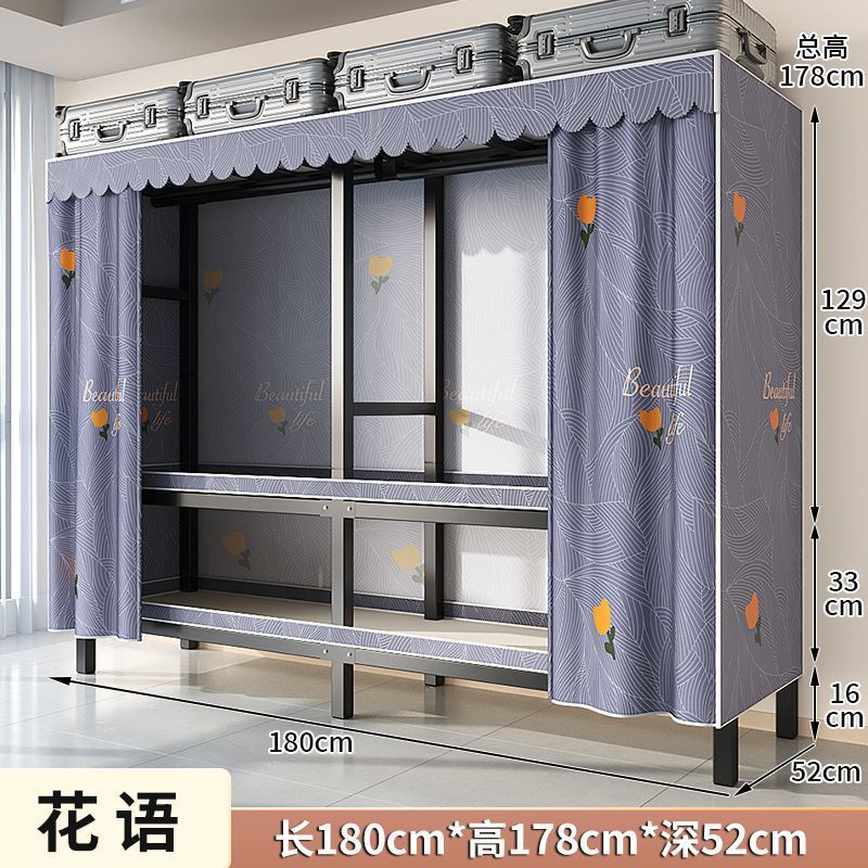 침실 두껍고 견고한 천 옷장 대용량 설치가 필요없는 강철 프레임 튼튼한 옷 간단한 가정용 보관 캐비닛