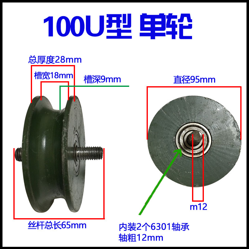 풀리 트랙 휠 V 자형 U 자형 H 자형 홈이있는 시브 베어링 풀리 주철 와이어 로프 작은 고정 슬라이딩 도어 가이드 레일 아이언 휠