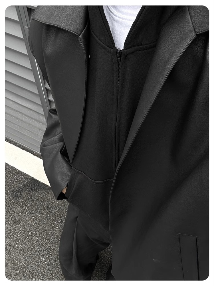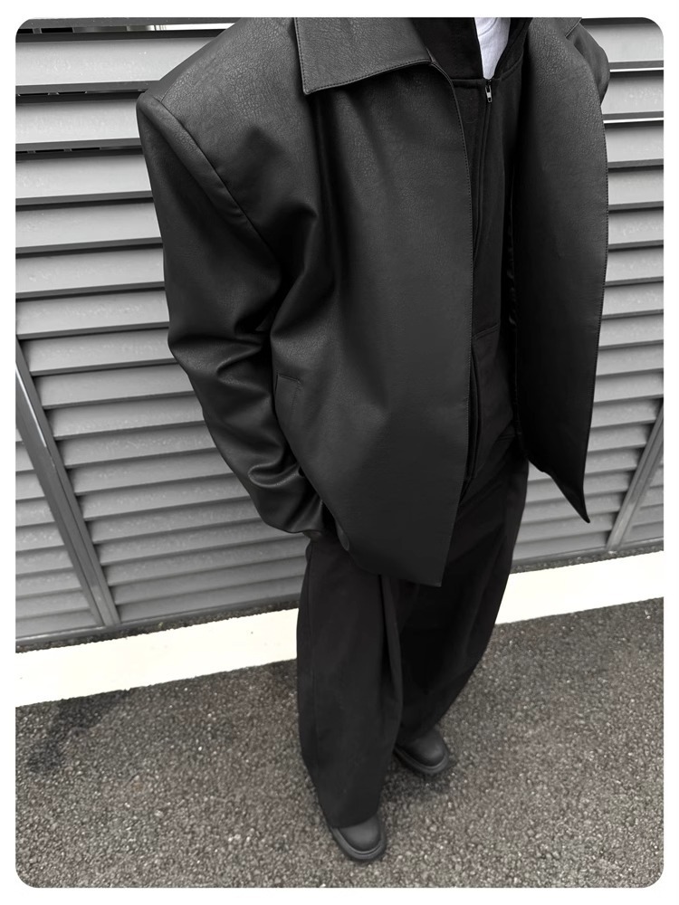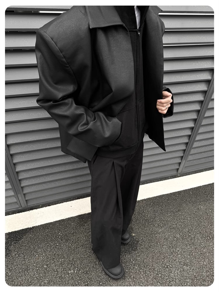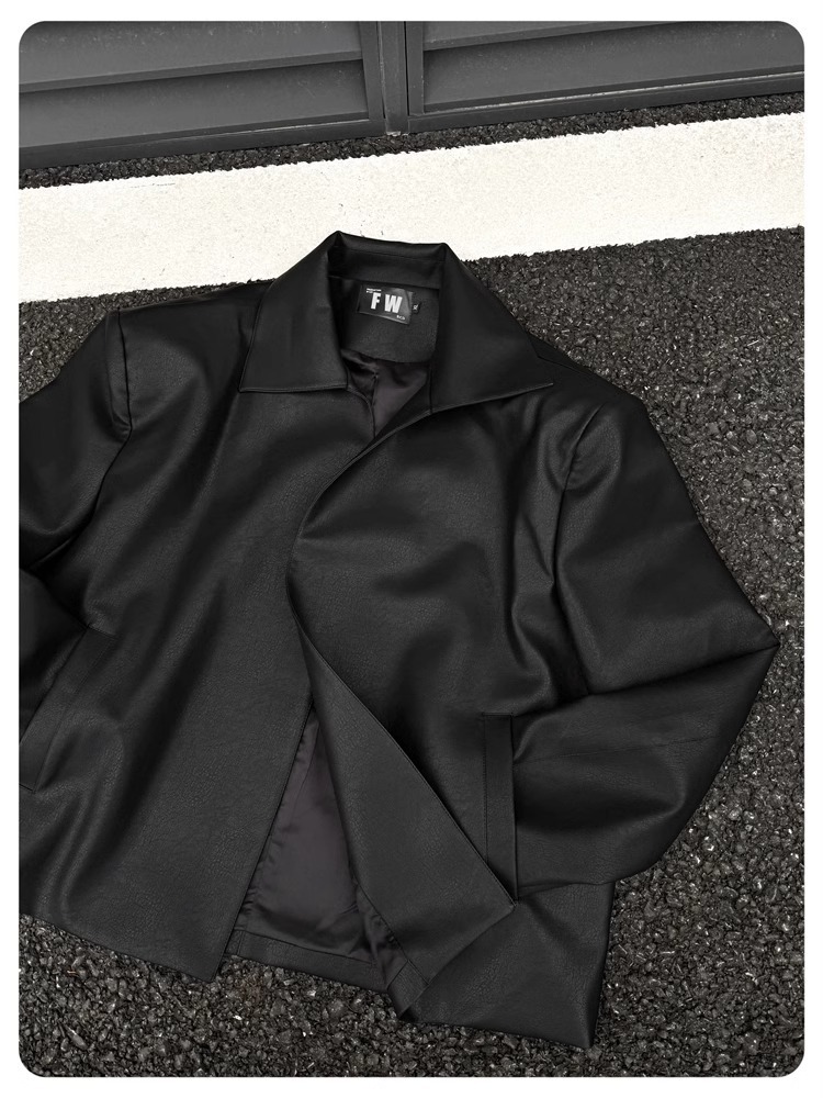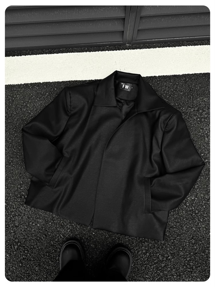 cleanfit无扣极简PU皮衣垫肩夹克男春秋新款简约基础款高级感外套