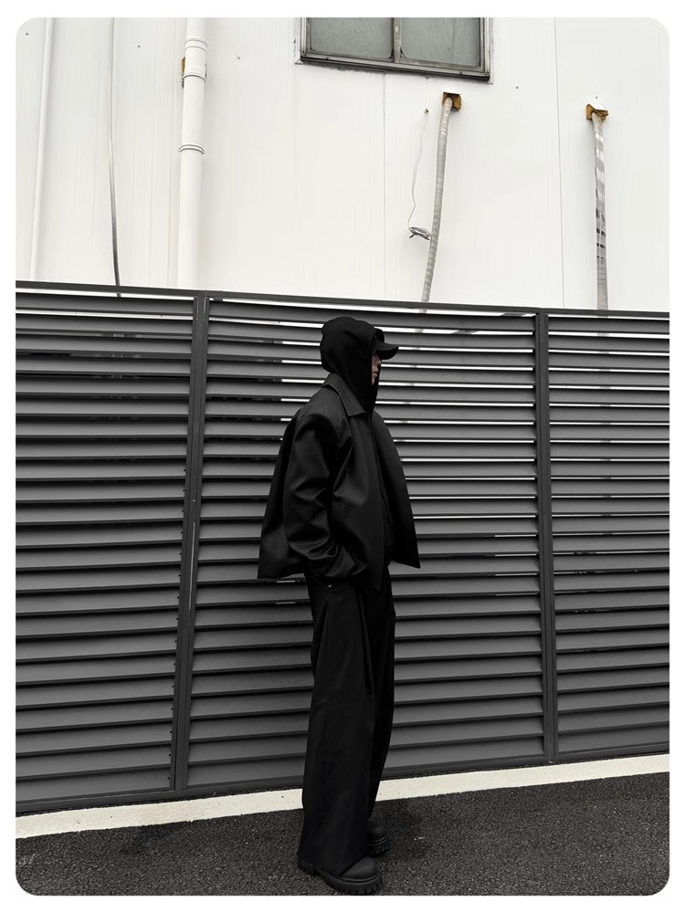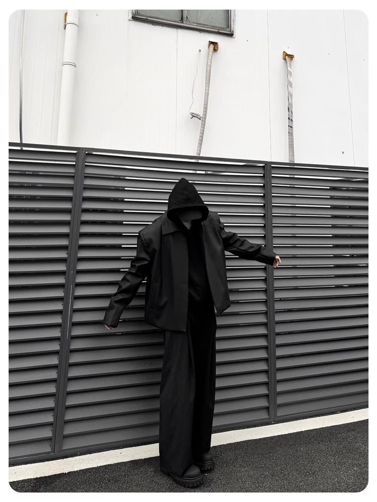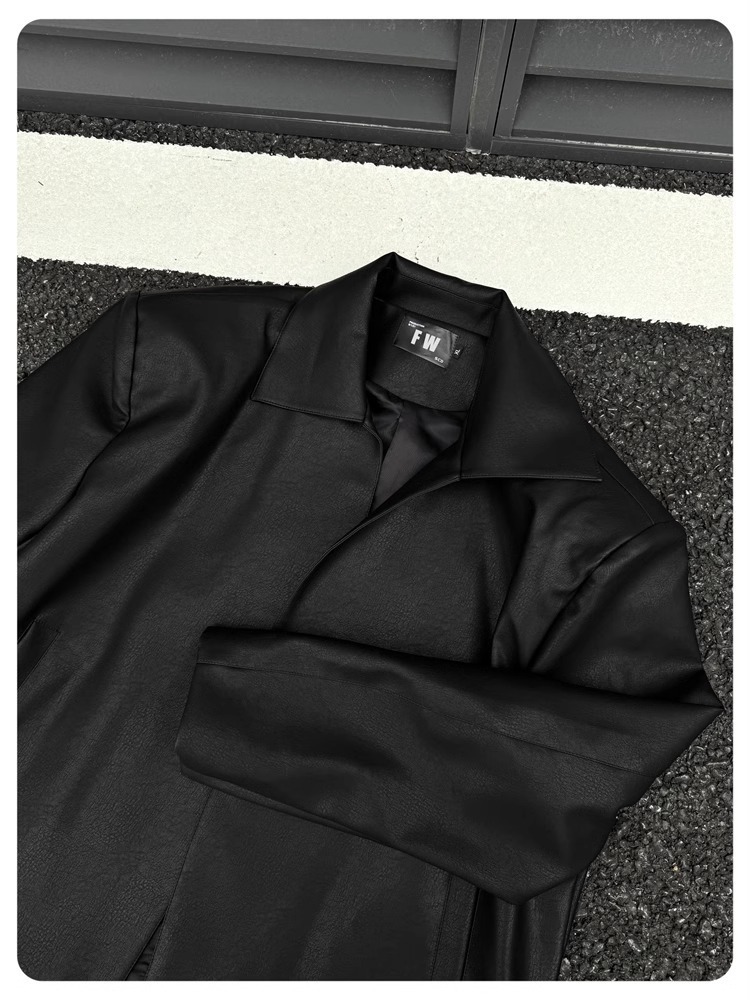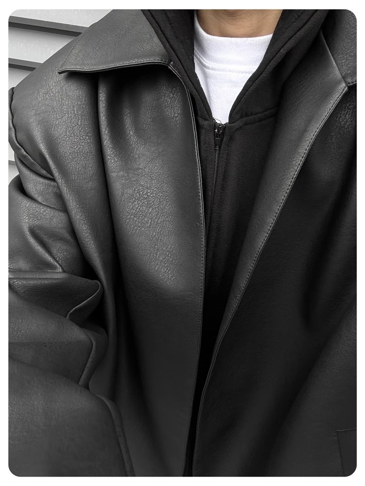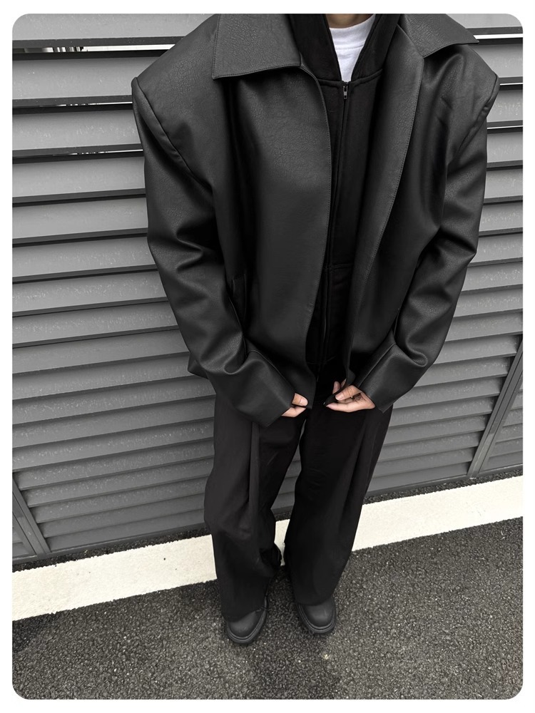 Cleanfit 버튼리스 미니멀리스트 PU 가죽 코트 어깨 패딩 재킷 남성 봄, 가을 새로운 스타일 심플 기본 하이 엔드 코트스토어 가기