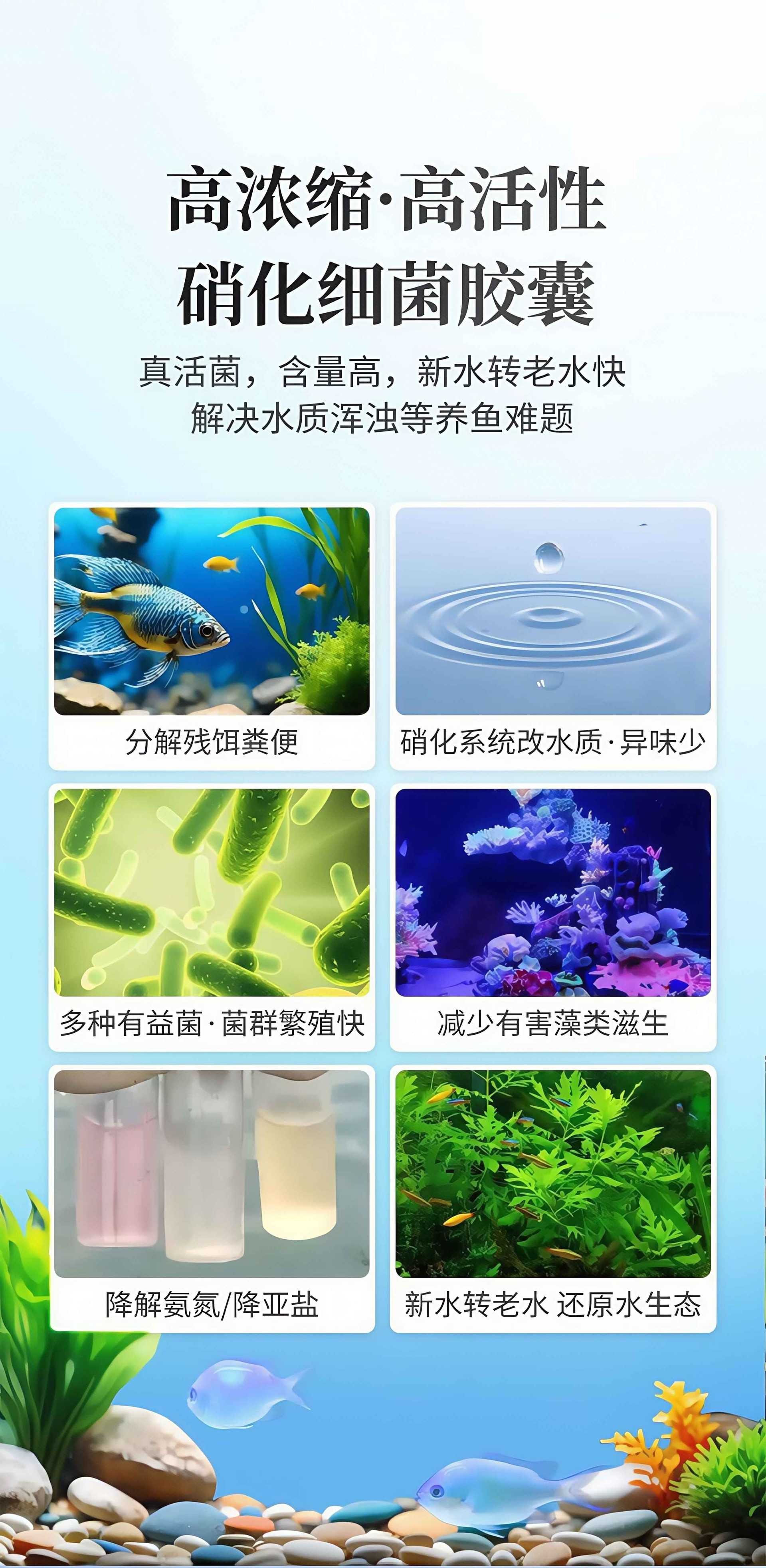 어항 질산화균 청소 유물, 박테리아 배양 안정제, 탈취 정수제, 정화수, 투명하고 투명한 물, 노란 물 제거