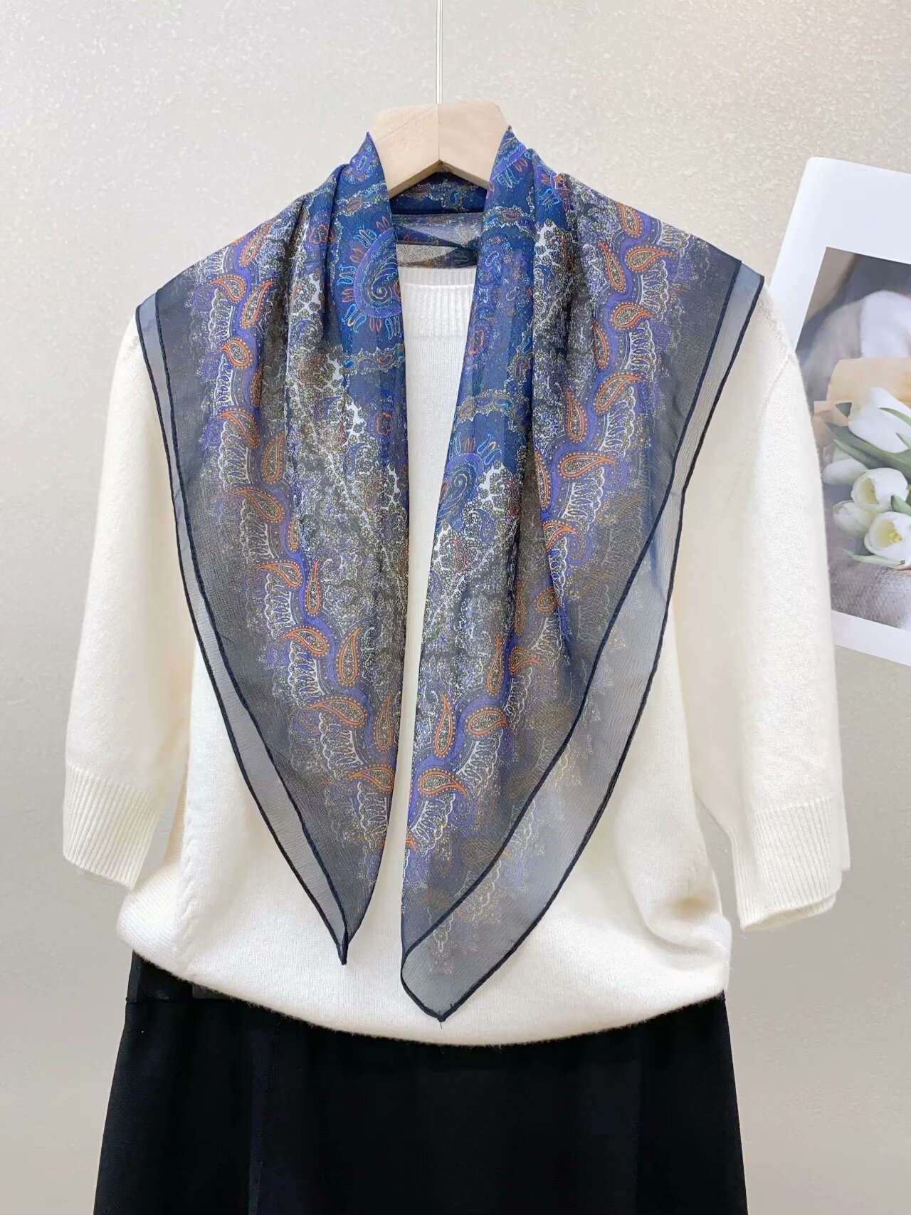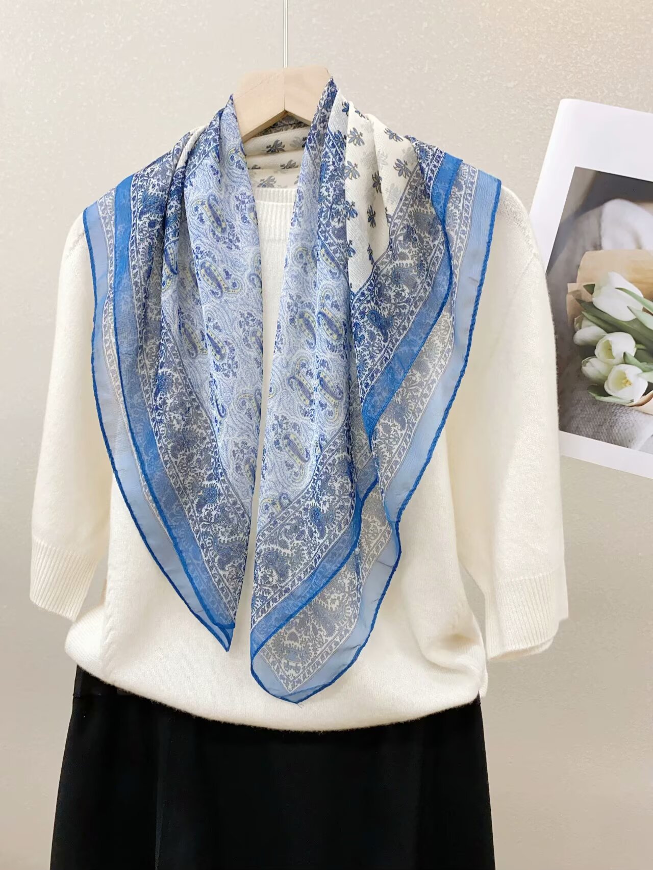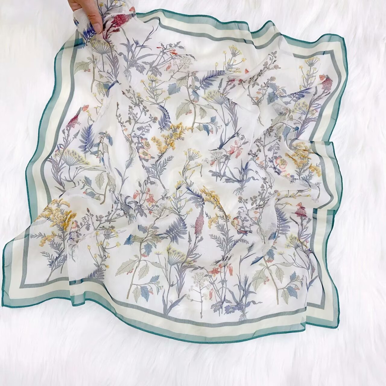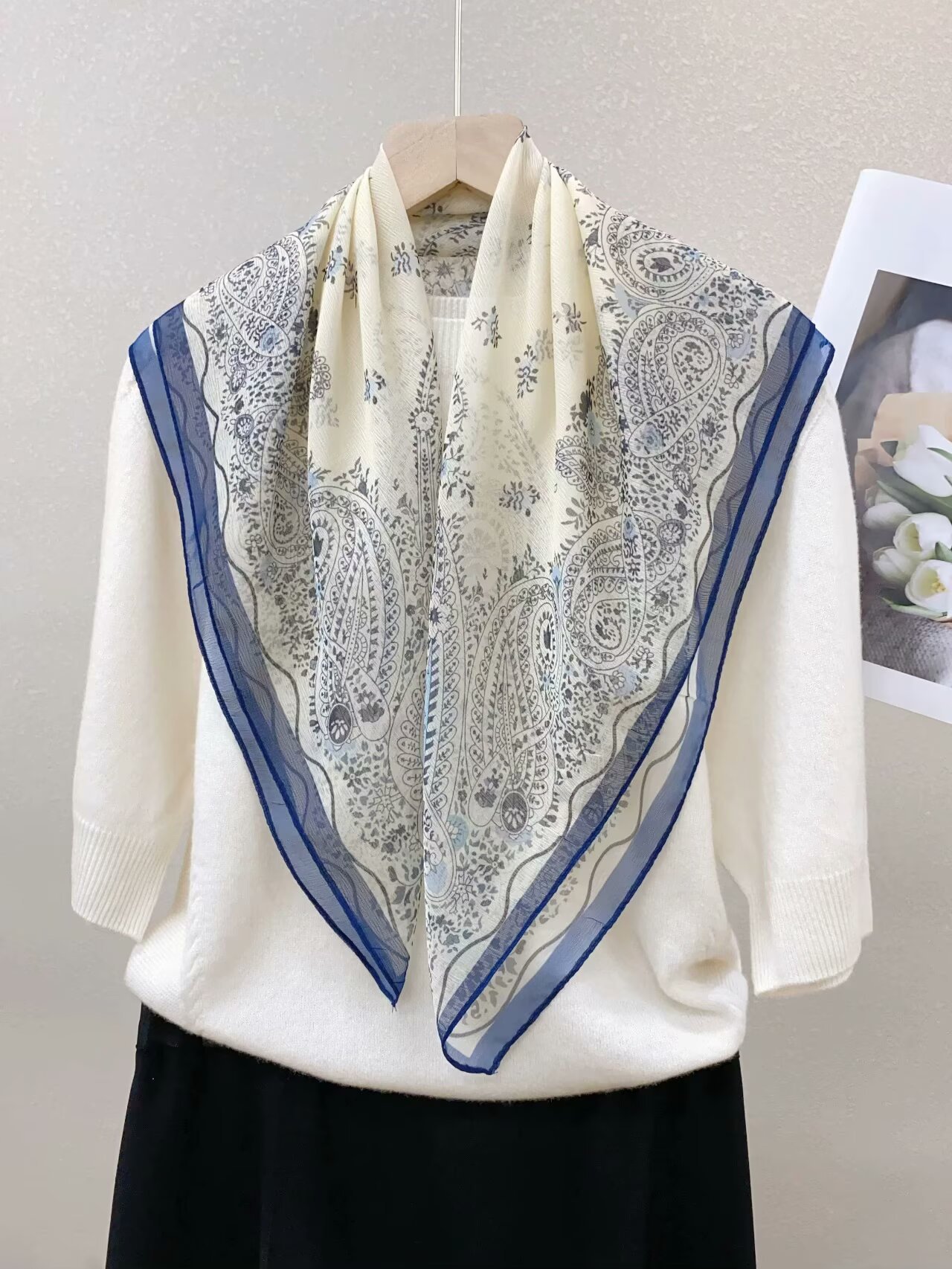새로운 Xili 원사 여름 얇은 70 스퀘어 스카프 작은 실크 스카프 한국 패션 작은 스카프 의류 장식 태양 보호 스카프