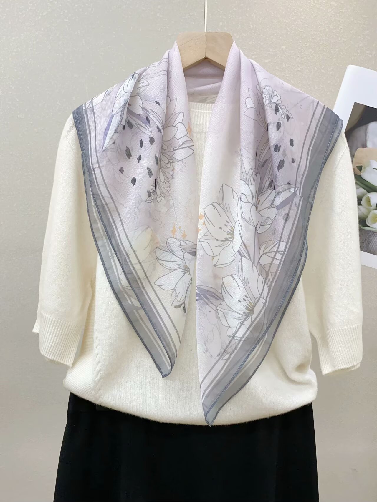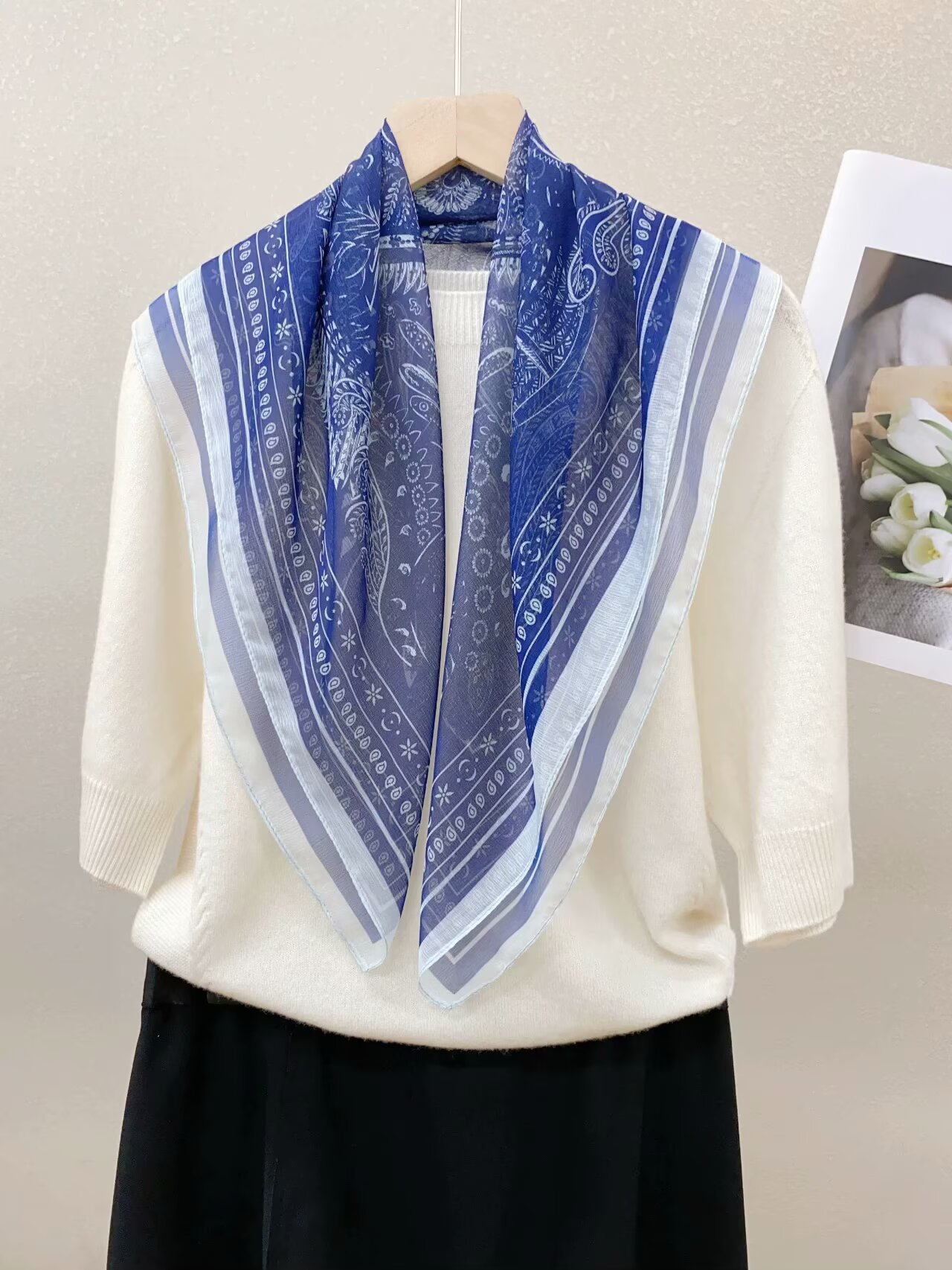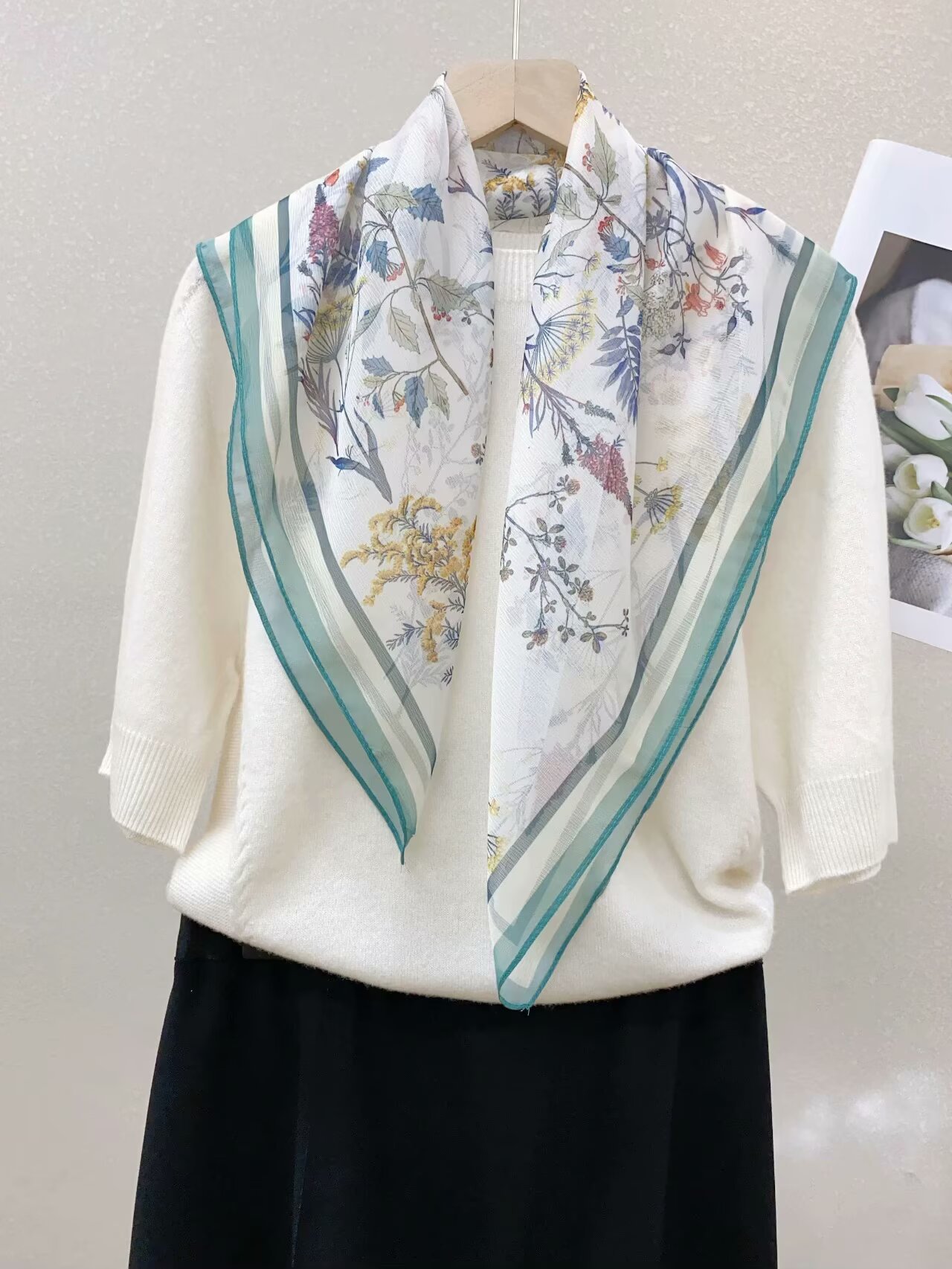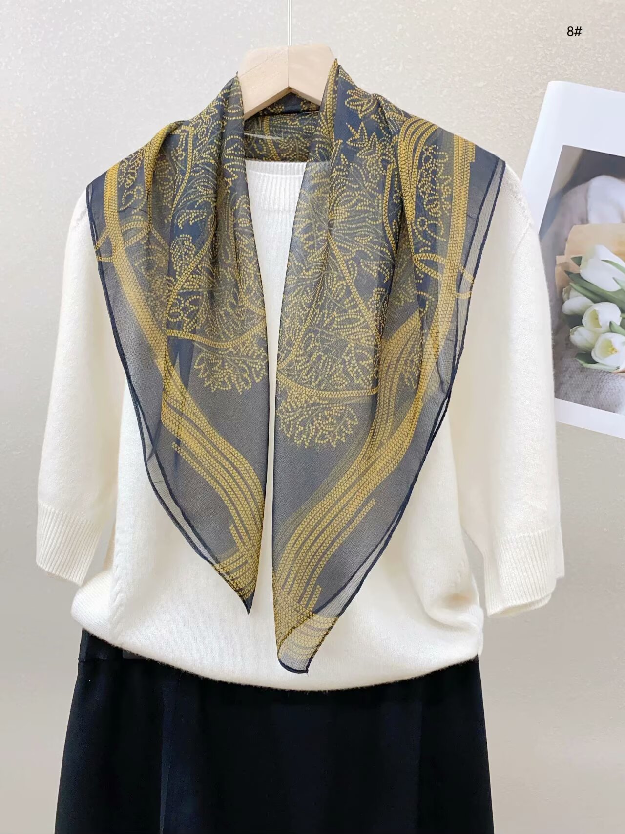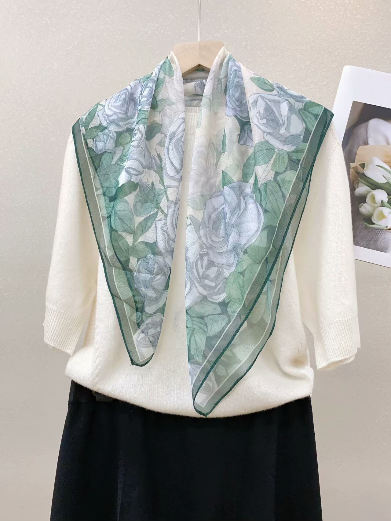 새로운 Xili 원사 여름 얇은 70 스퀘어 스카프 작은 실크 스카프 한국 패션 작은 스카프 의류 장식 태양 보호 스카프