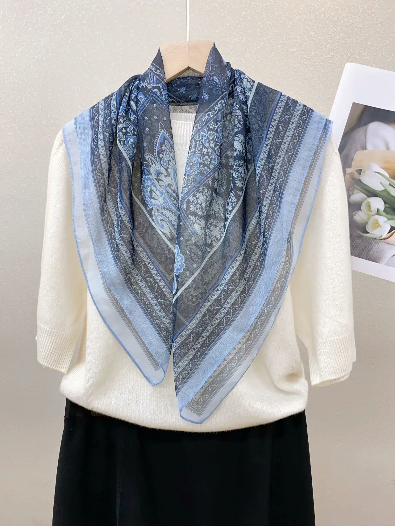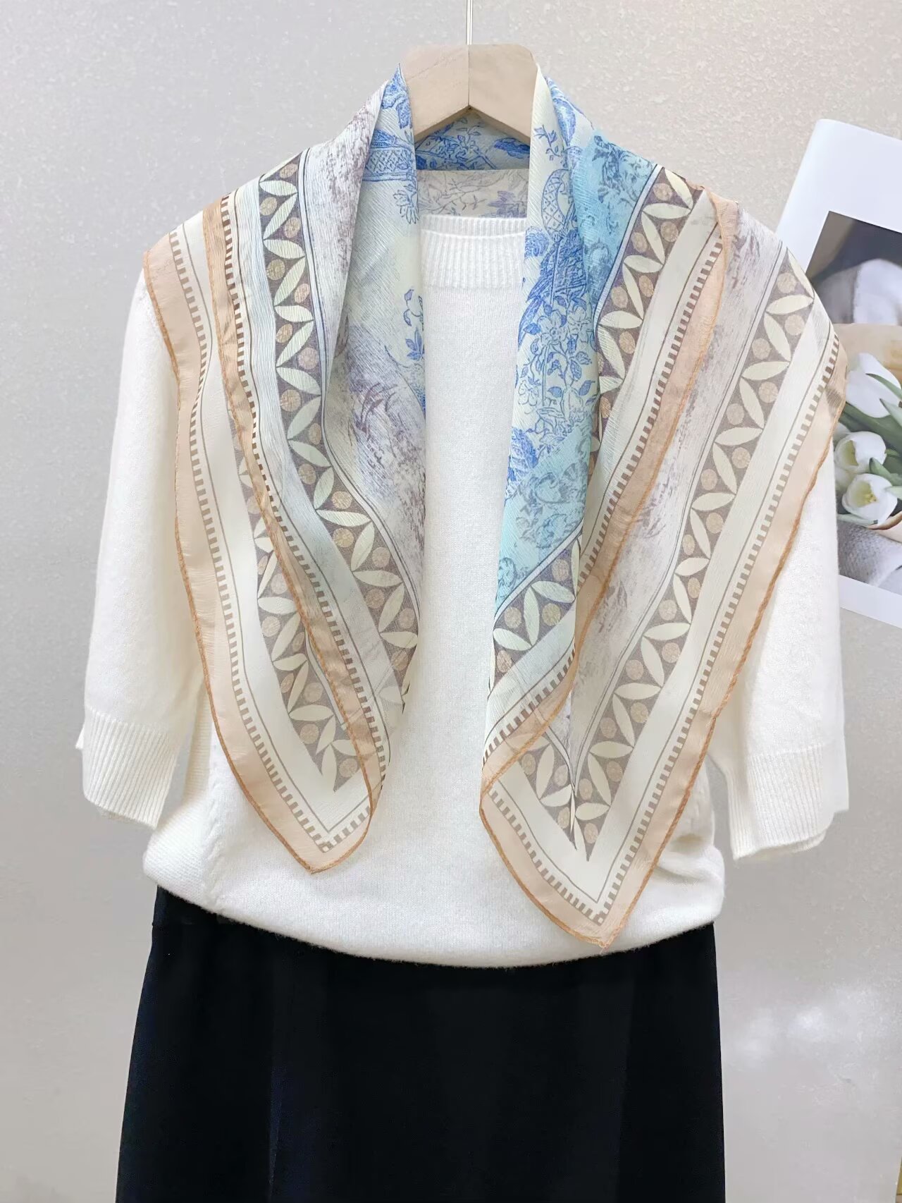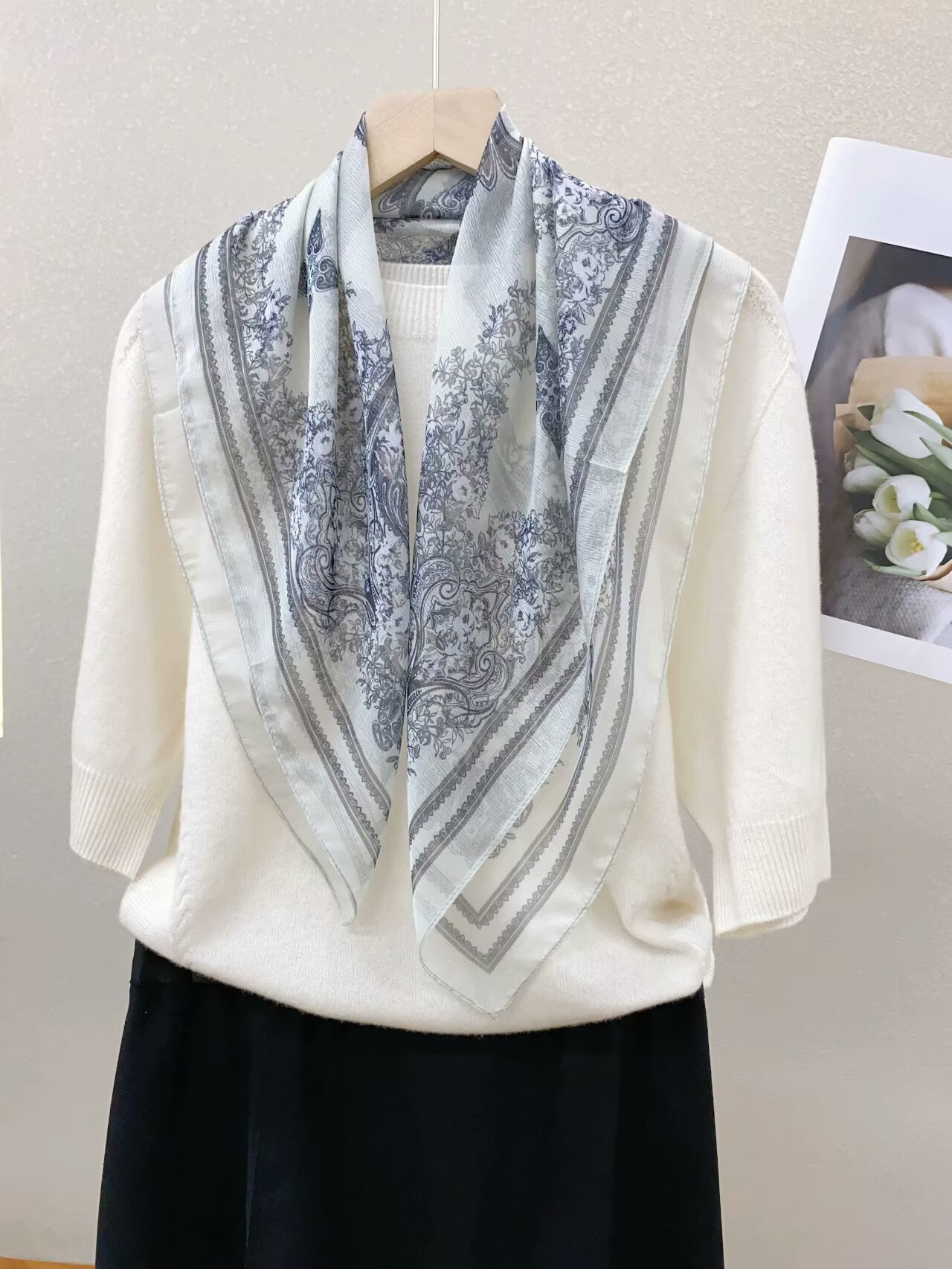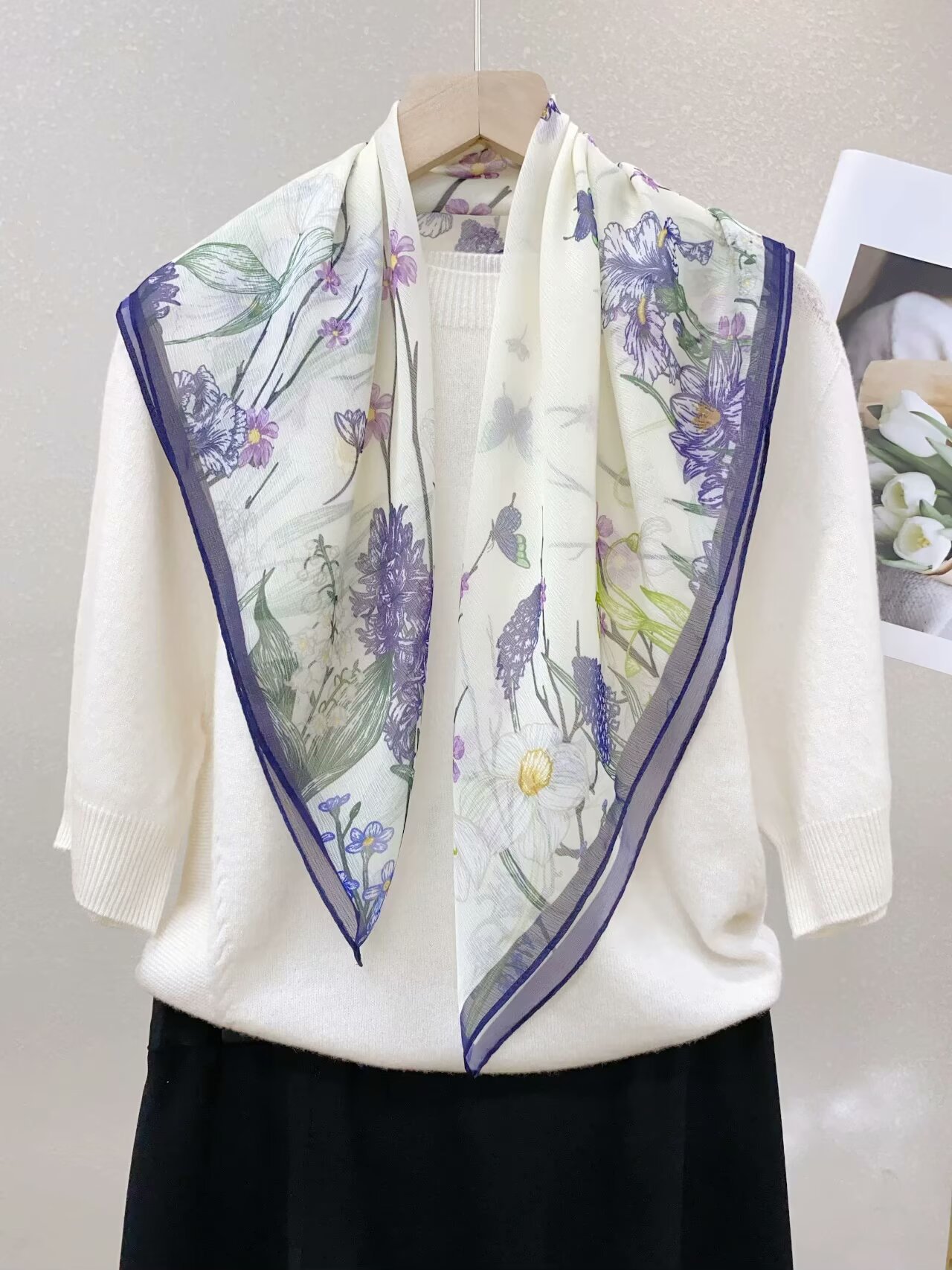 새로운 Xili 원사 여름 얇은 70 스퀘어 스카프 작은 실크 스카프 한국 패션 작은 스카프 의류 장식 태양 보호 스카프