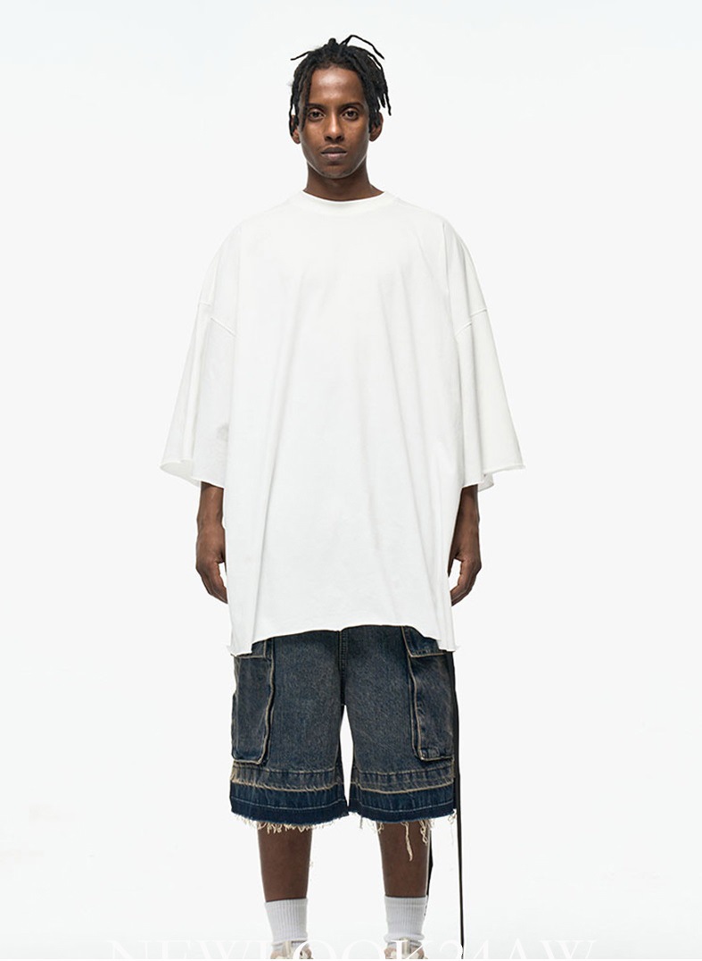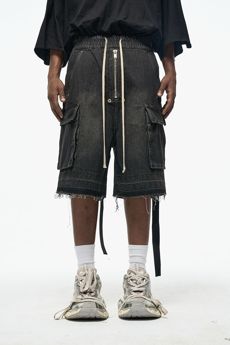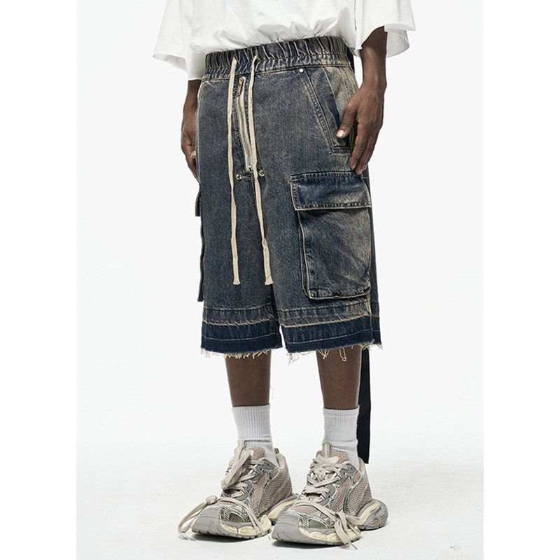 국경 간 바람 그라디언트 씻은 데님 반바지 남자 하이 스트리트 멀티 포켓 스트림 느슨한 와이드 레그 바지