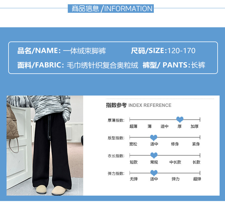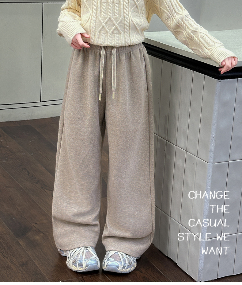 여자 서양식 넓은 다리 바지 2024 가을 겨울 벨벳 통합 한국 스타일 패션 큰 어린이 찹쌀 따뜻한 바지스토어 가기