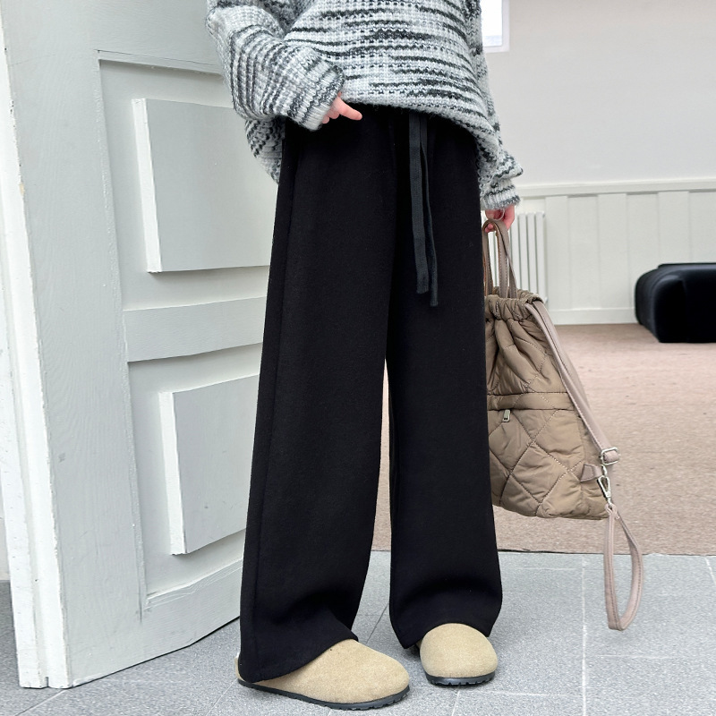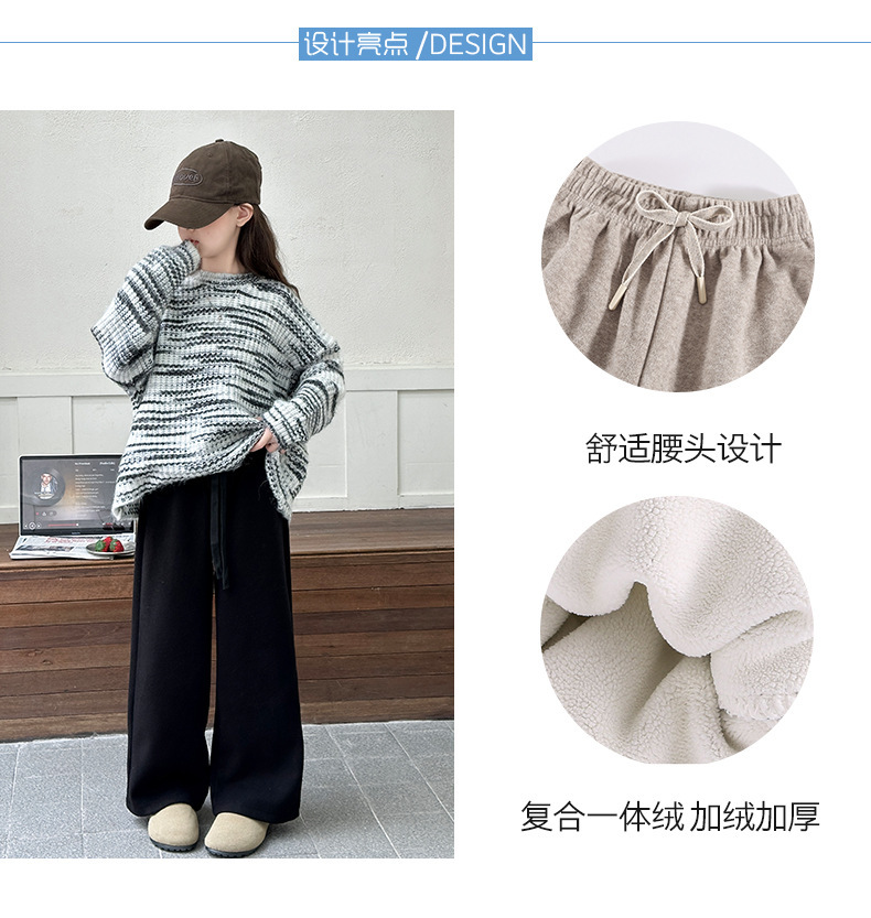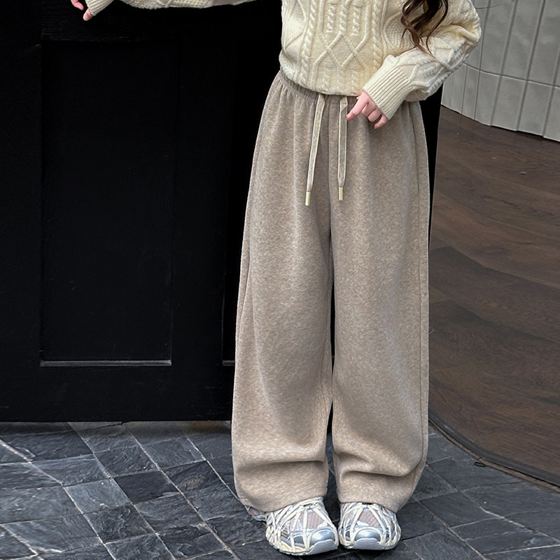 여자 서양식 넓은 다리 바지 2024 가을 겨울 벨벳 통합 한국 스타일 패션 큰 어린이 찹쌀 따뜻한 바지