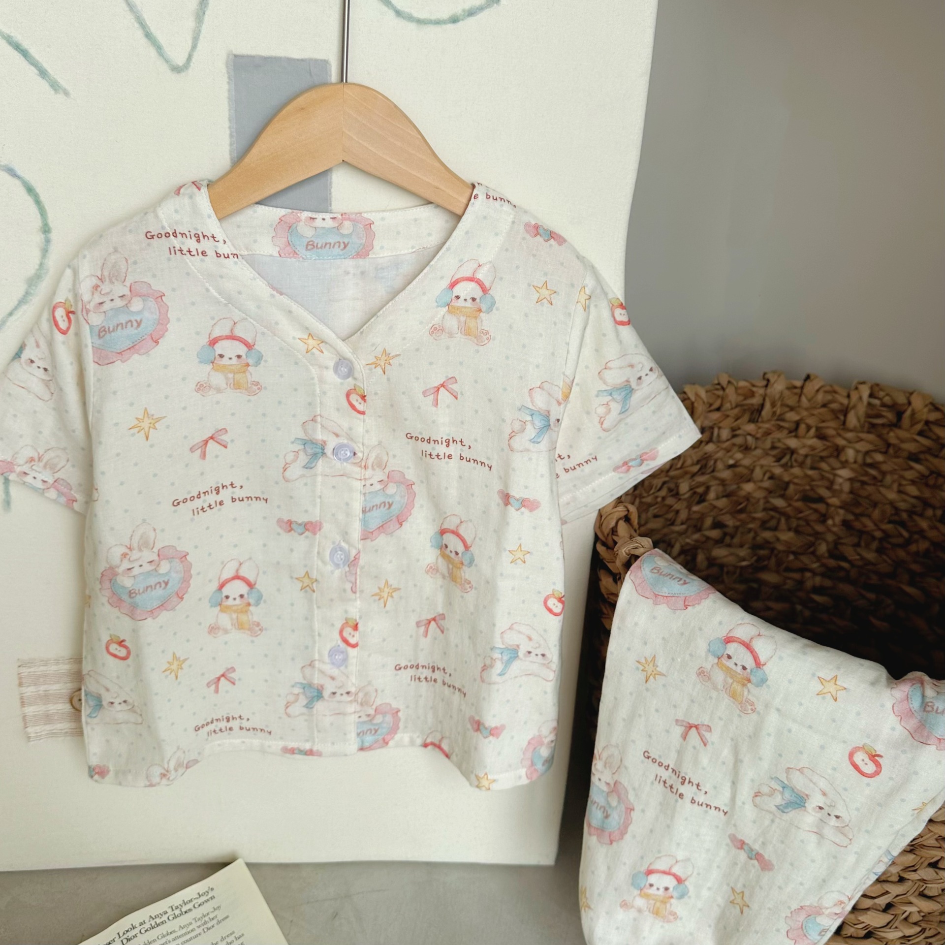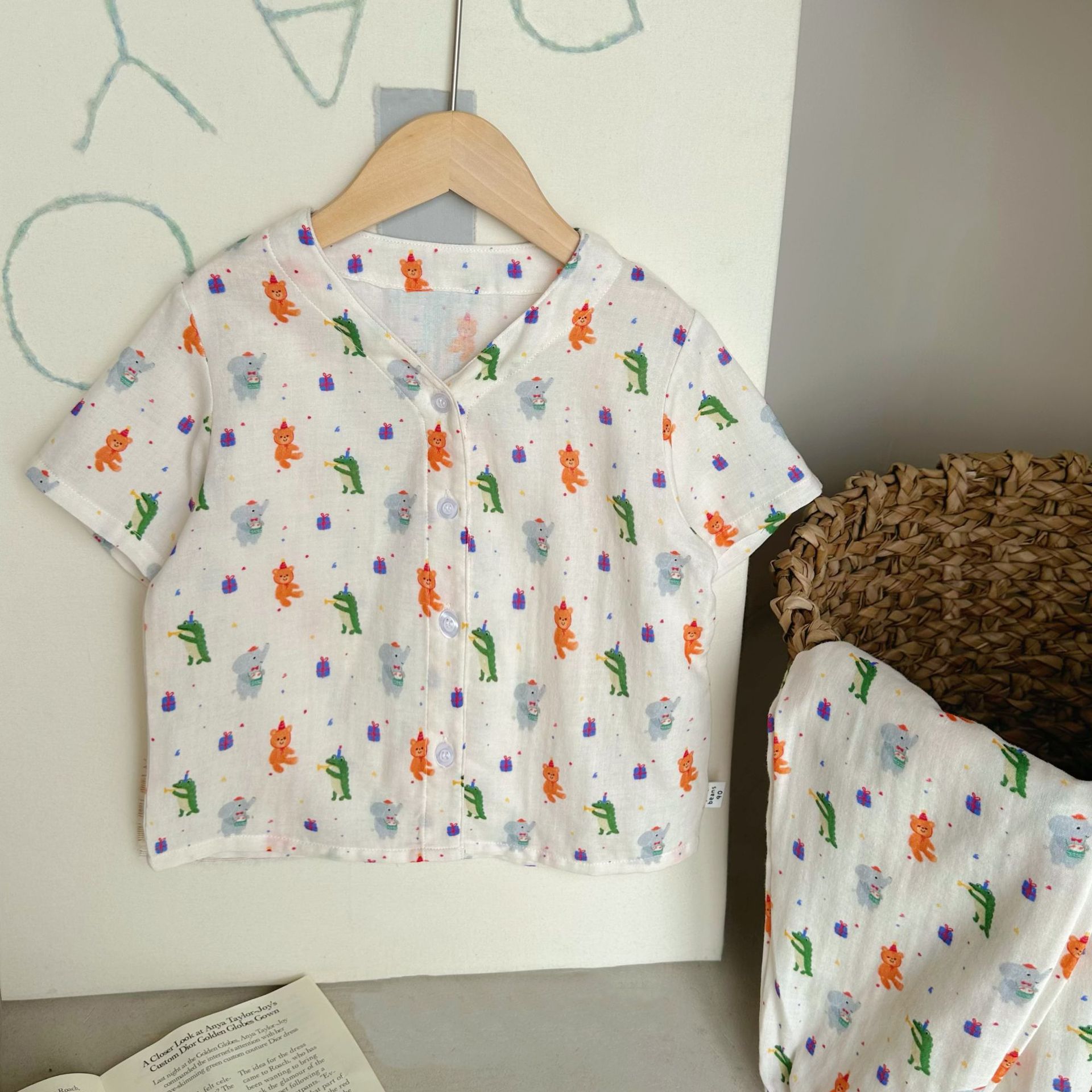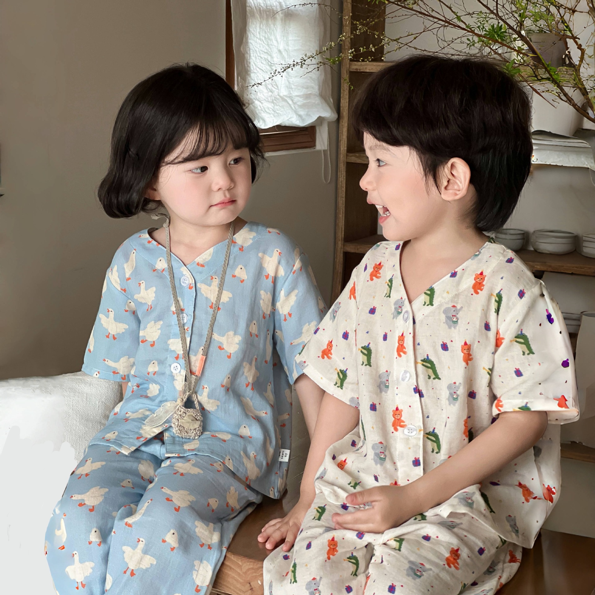 어린이 면화 파자마 세트 2025 여름 중소형 소년 소녀 면화 홈 옷 어린이 면 원사 반팔 모기 방지 바지스토어 가기