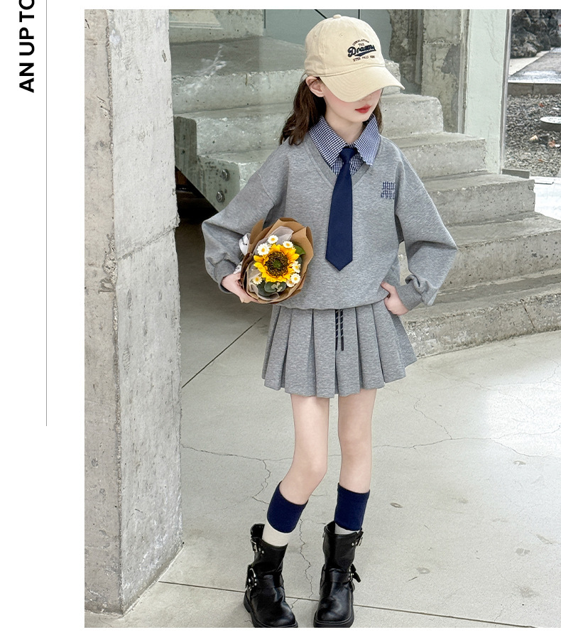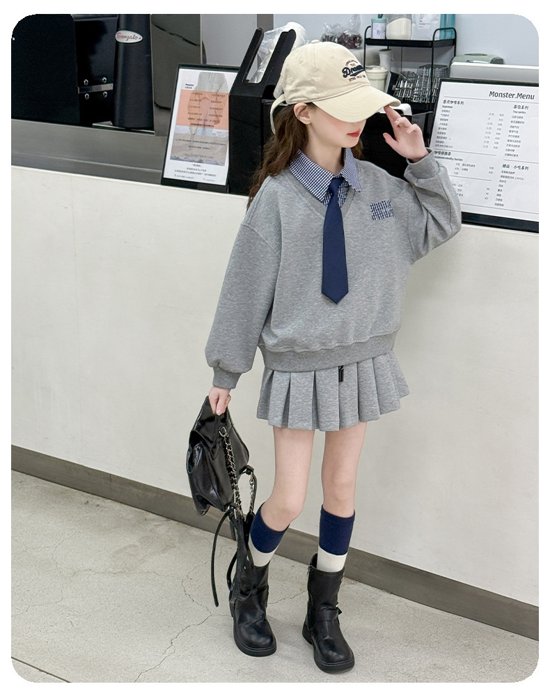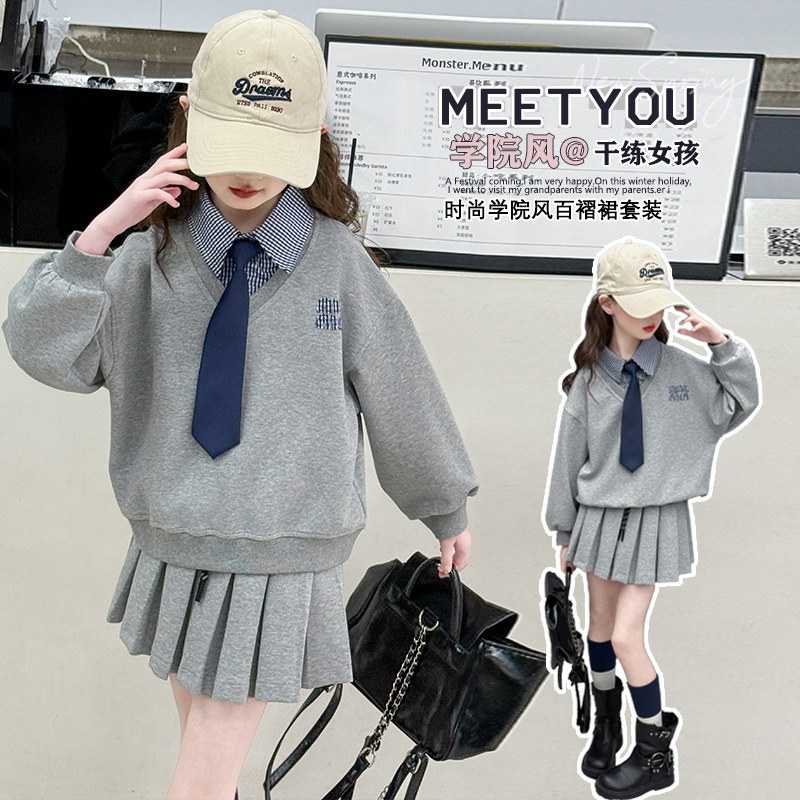 패션 소녀 스웨터 세트 cuhk 어린이 봄과 가을 2025 한국 대학 스타일 주름 치마 세트 소녀의 새로운스토어 가기