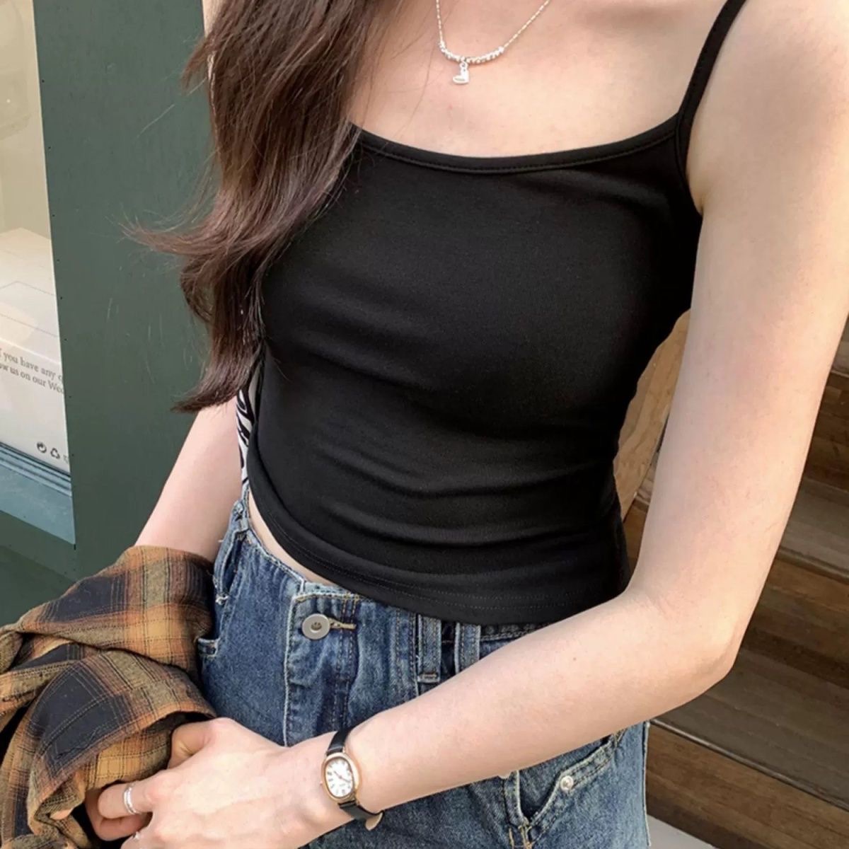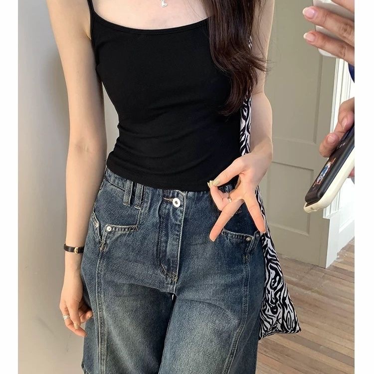 아름다운 스트랩 여성 화이트 조끼 여성의 여름 외부 착용 아름다운 스트랩 가슴 패드 슬림핏 솔리드 컬러 내베이스 민소매 탑스토어 가기