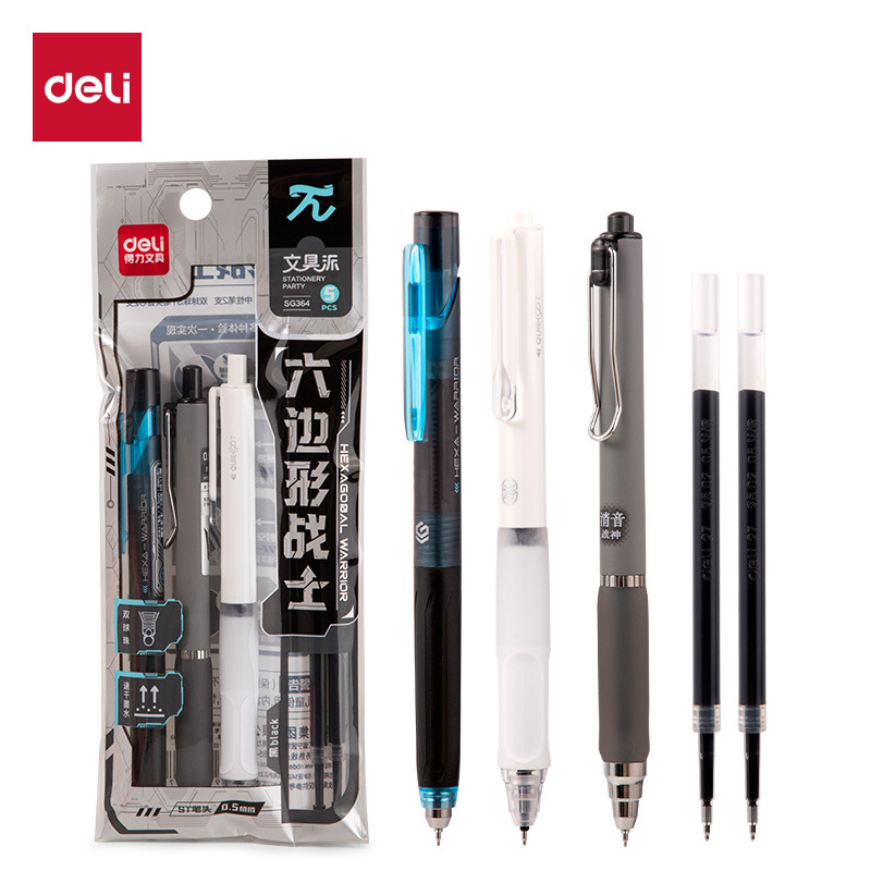 델리 SG364 육각형 전사 필기 세트(블랙)(5개 세트) 생활 문구 고급 잉크 프레스