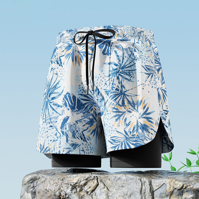 • 2801 리프 화이트 [더블 레이어 수영 트렁크]