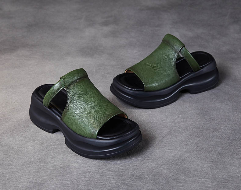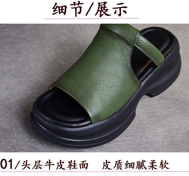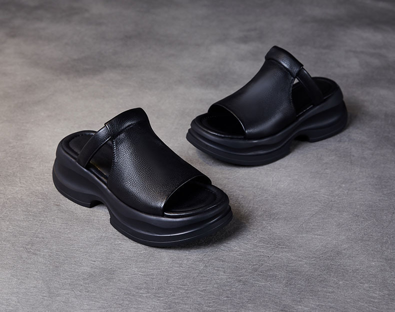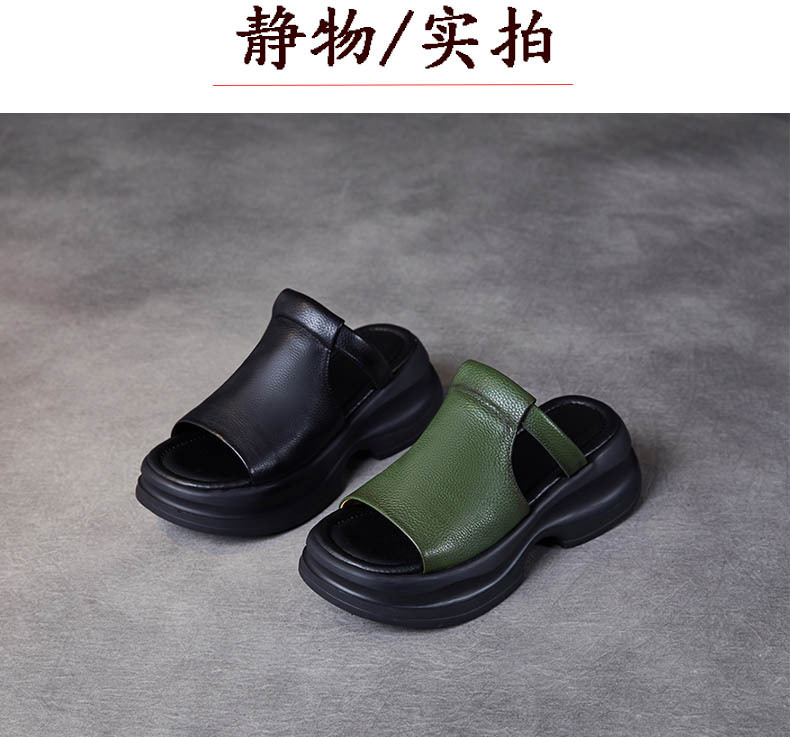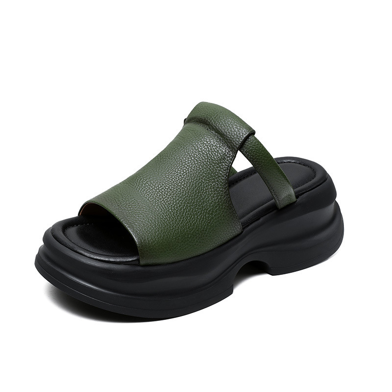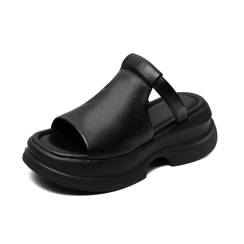 여성용 가죽 플랫폼 두꺼운 밑창 플랫 슬리퍼, 키높이, 오픈토, 여름 2025 신상, 다용도, 엄마용