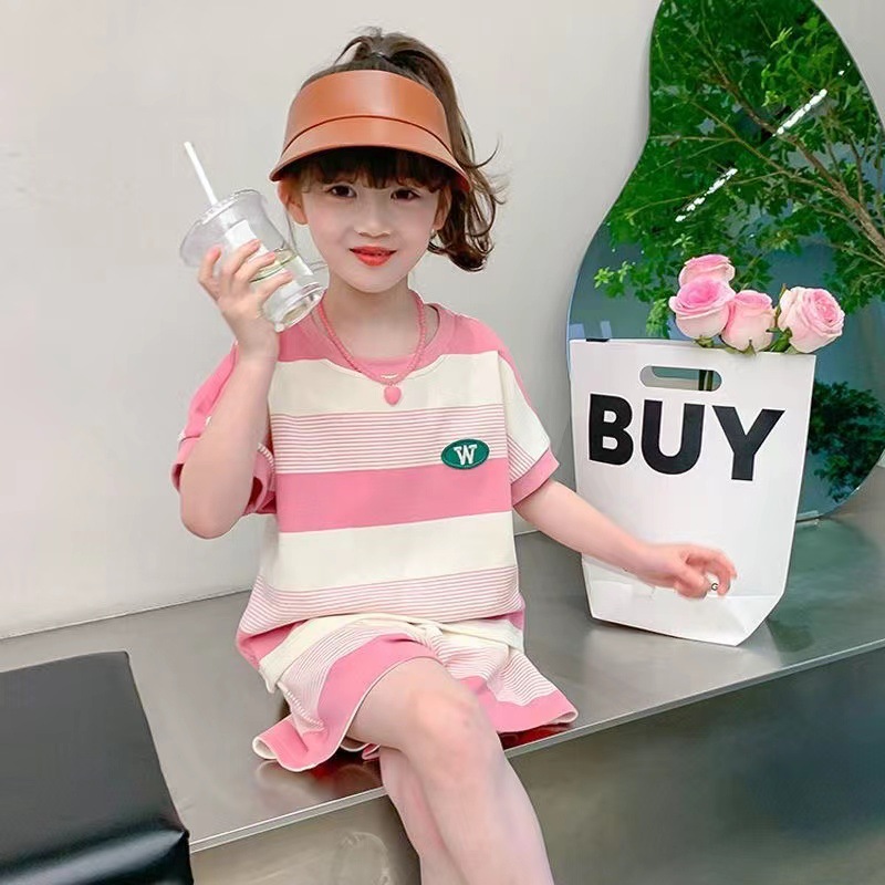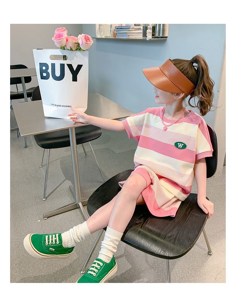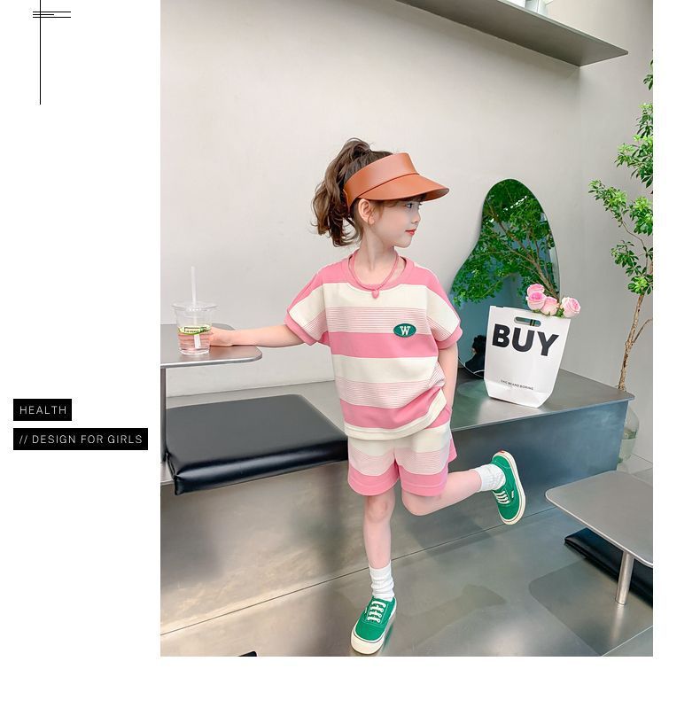2025 새로운 여자 여름 스포츠 정장, 세련된 아동복, 여름 옷, 큰 어린이 반팔 반바지, 여자 투피스 세트스토어 가기