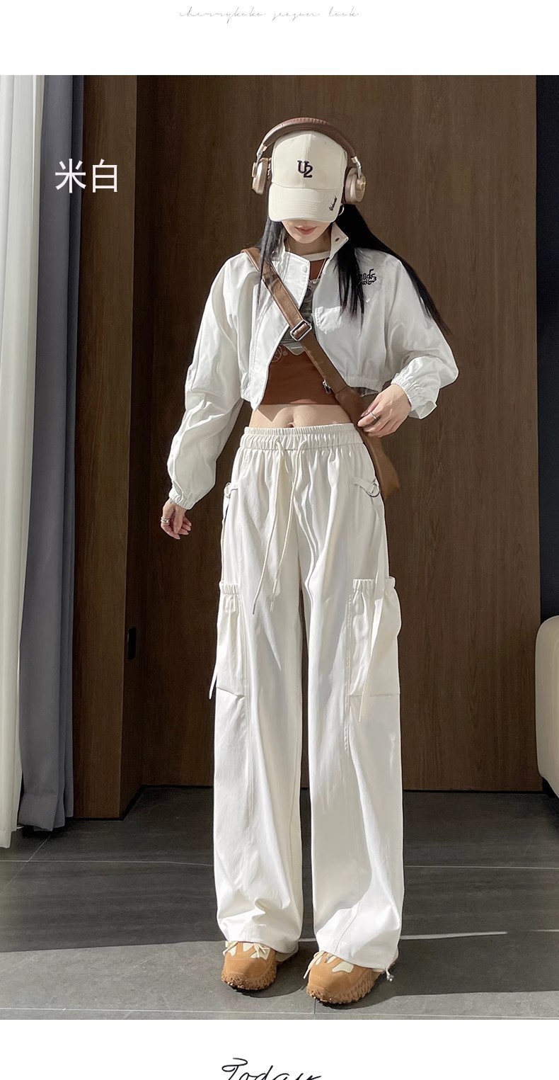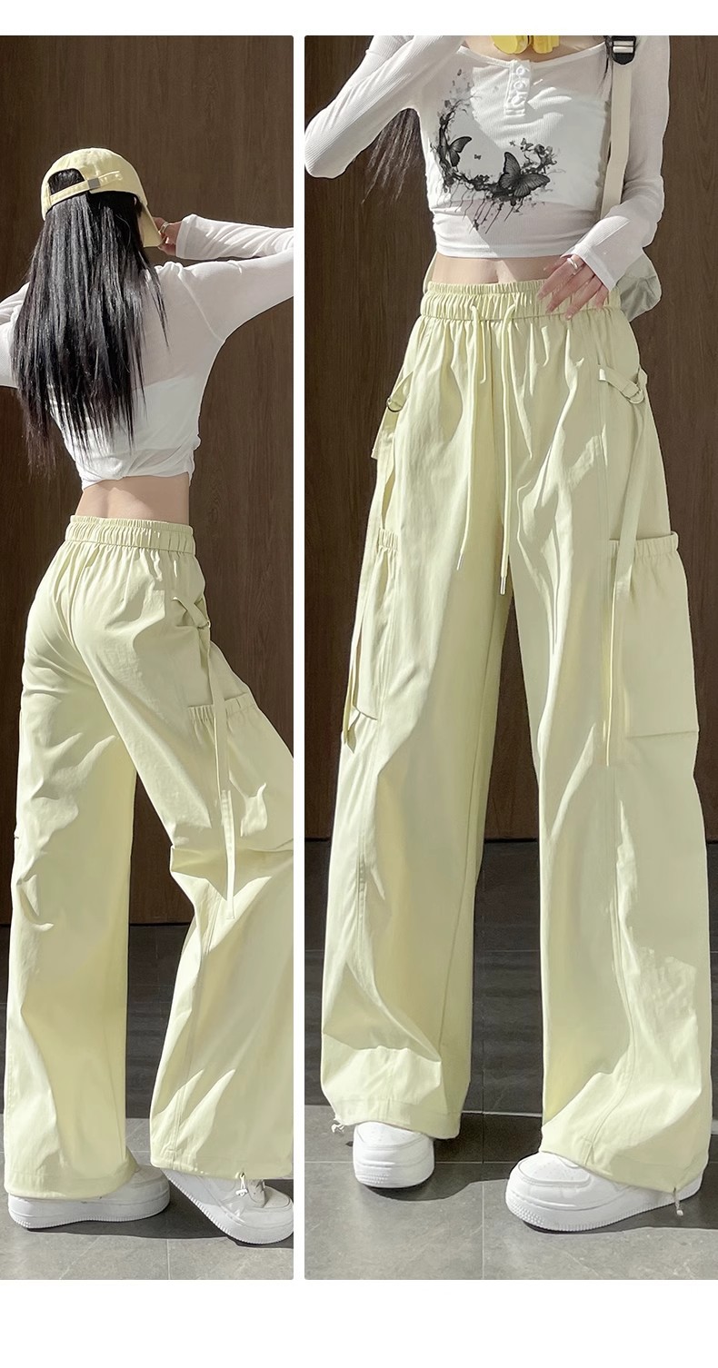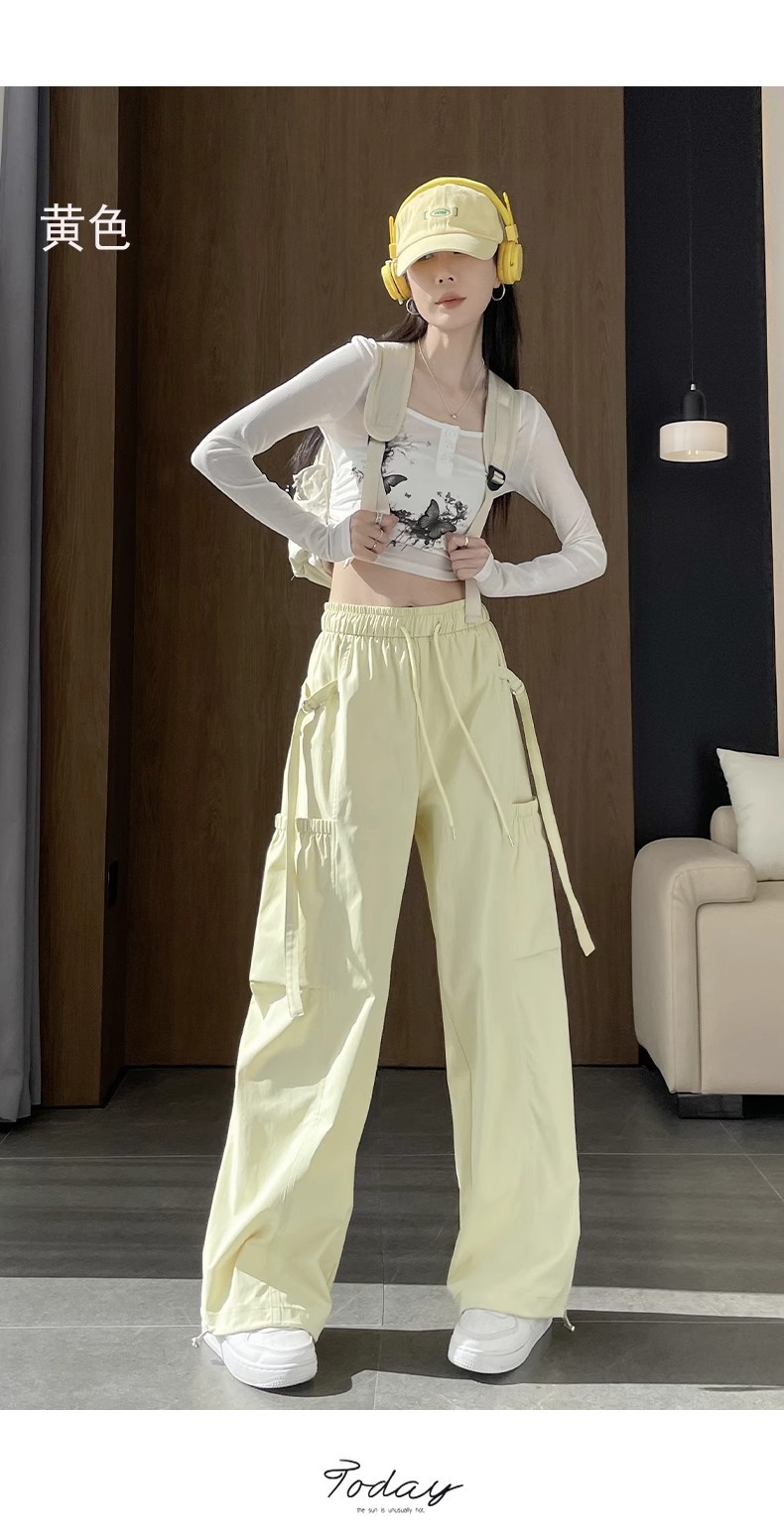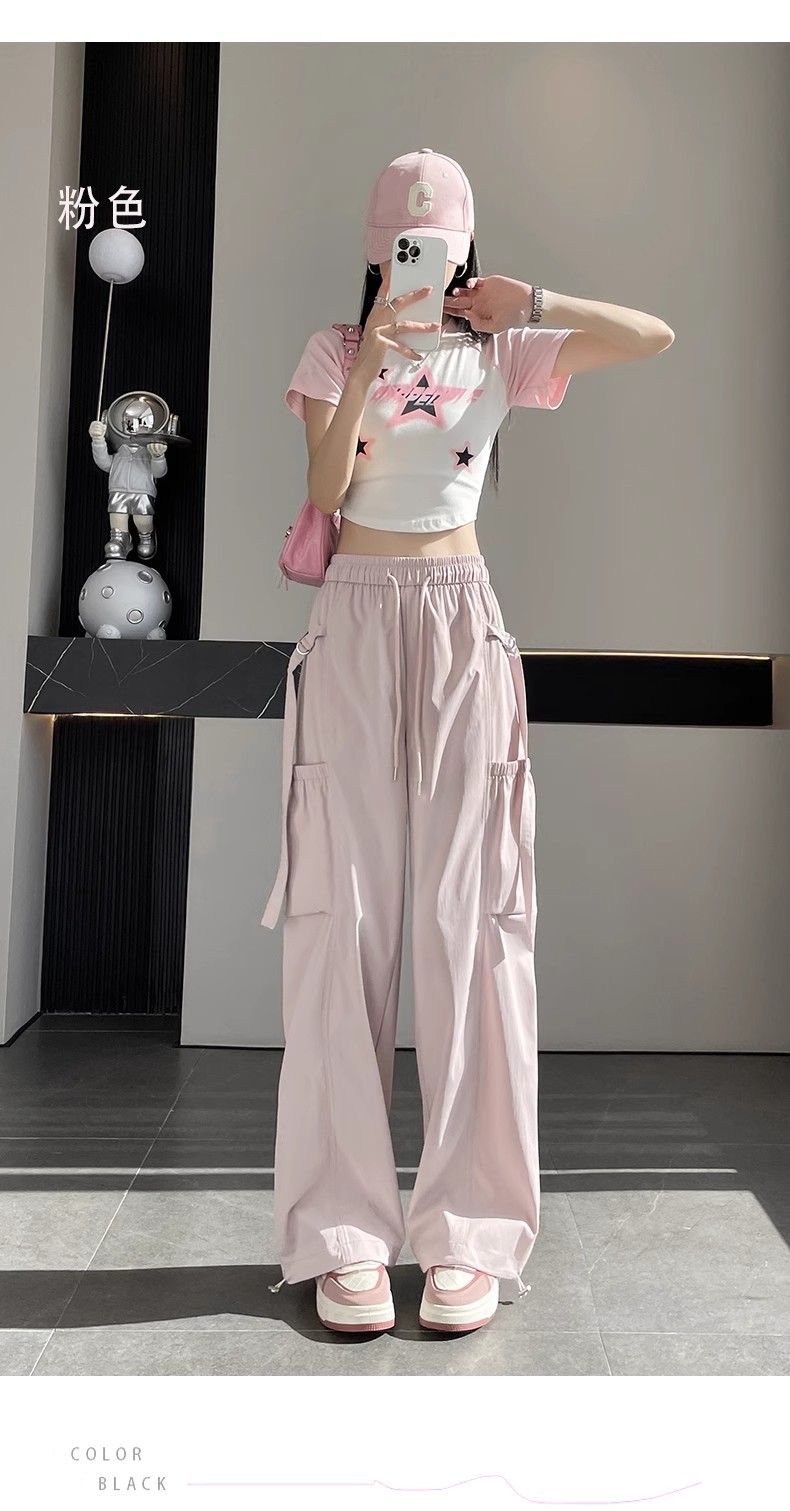 살구색 여성용 작업복 2025 봄 여름 신상 스트레이트 드로스트링 레깅스 투웨어 아메리칸 도파민 충전 스포츠 바지스토어 가기