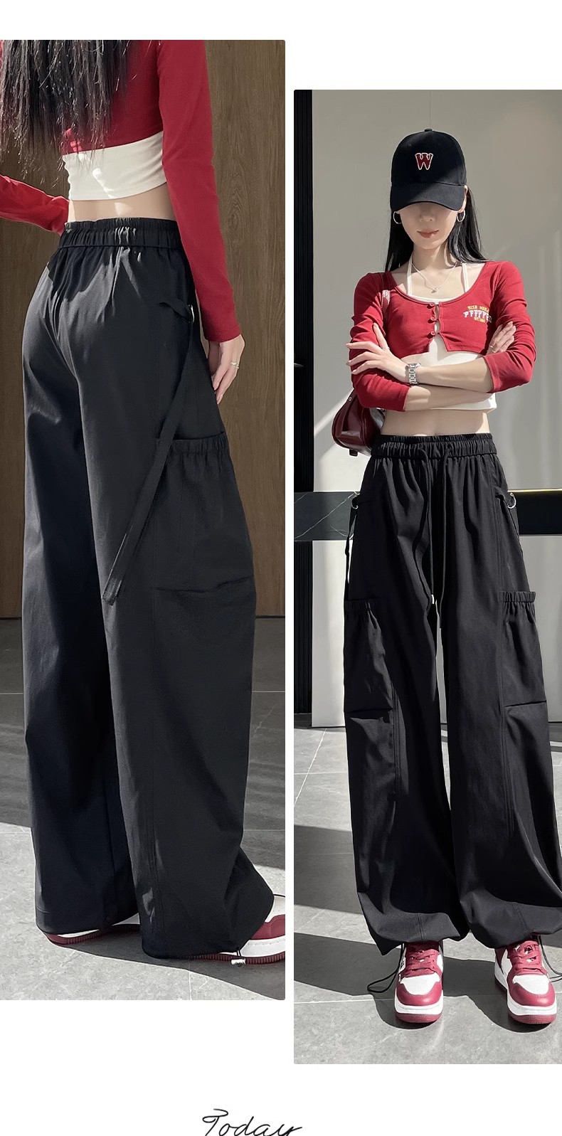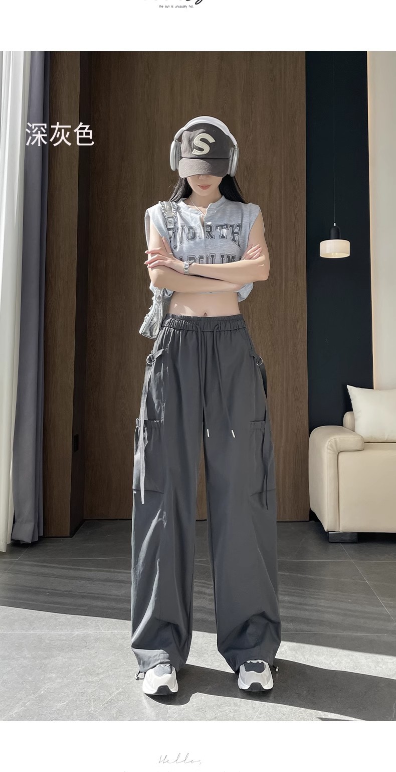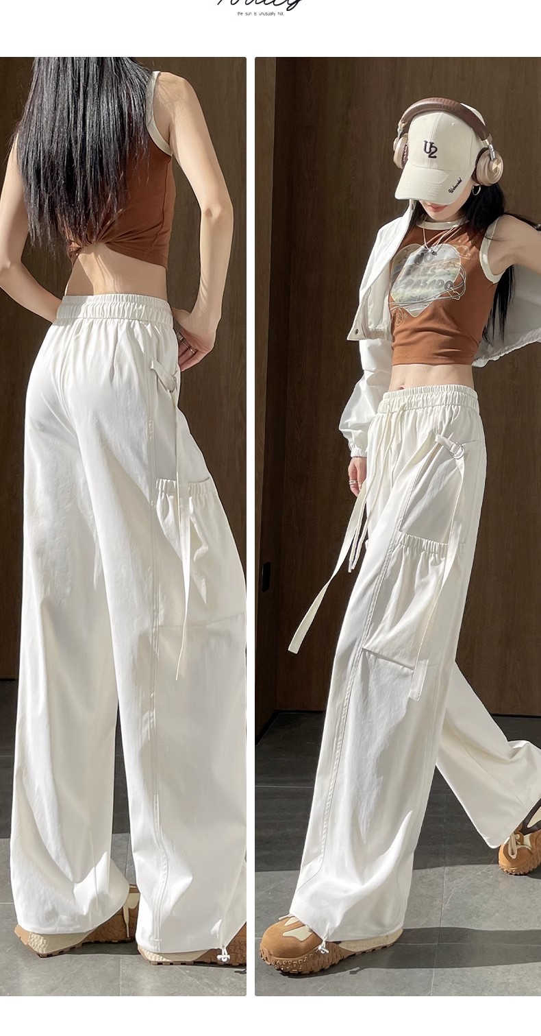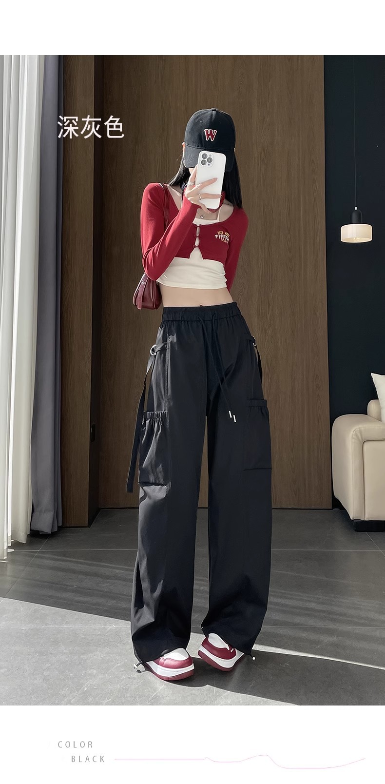 살구색 여성용 작업복 2025 봄 여름 신상 스트레이트 드로스트링 레깅스 투웨어 아메리칸 도파민 충전 스포츠 바지스토어 가기