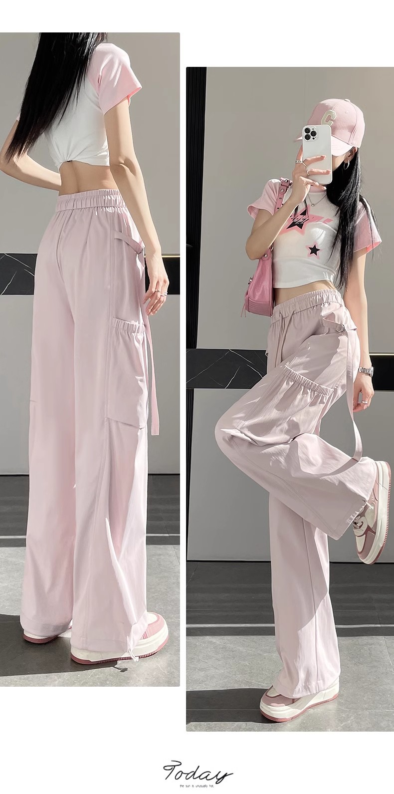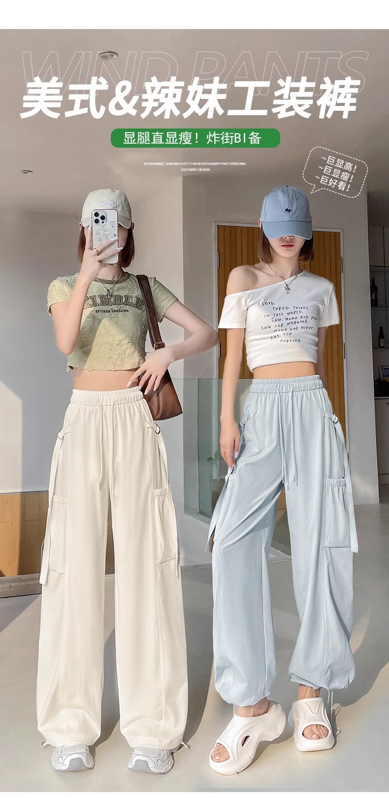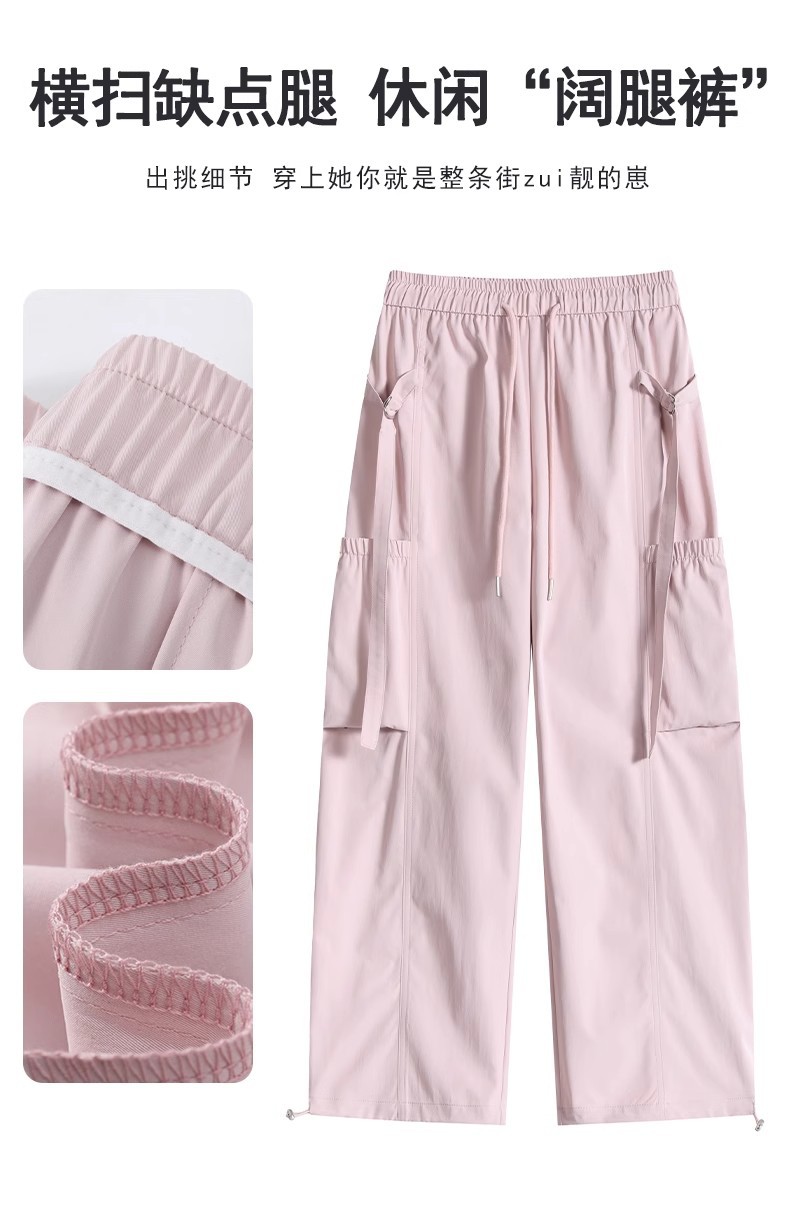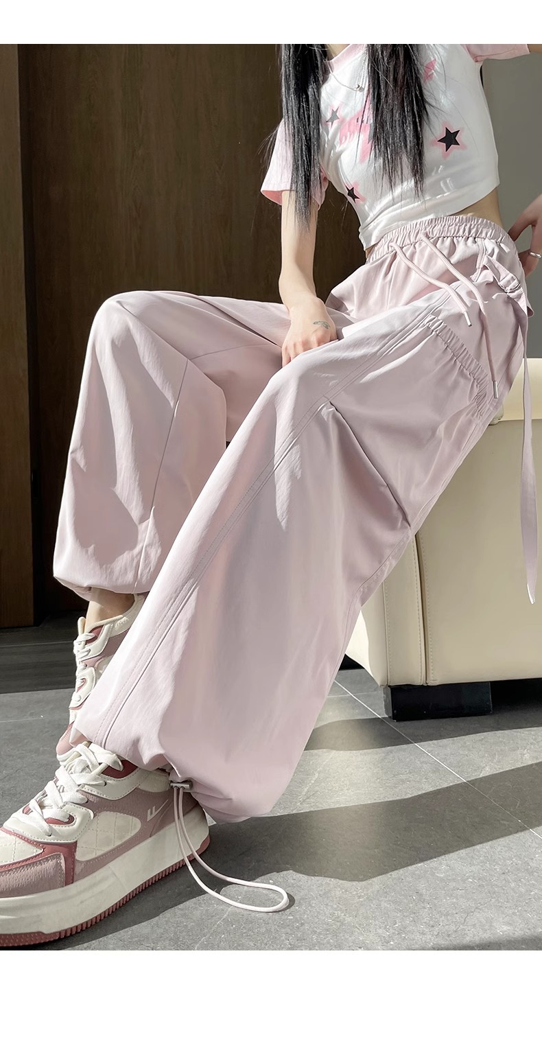 살구색 여성용 작업복 2025 봄 여름 신상 스트레이트 드로스트링 레깅스 투웨어 아메리칸 도파민 충전 스포츠 바지