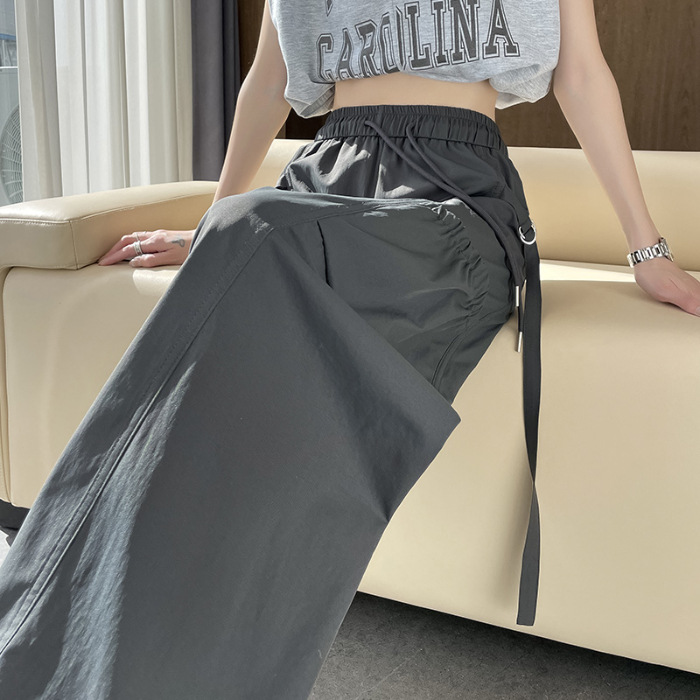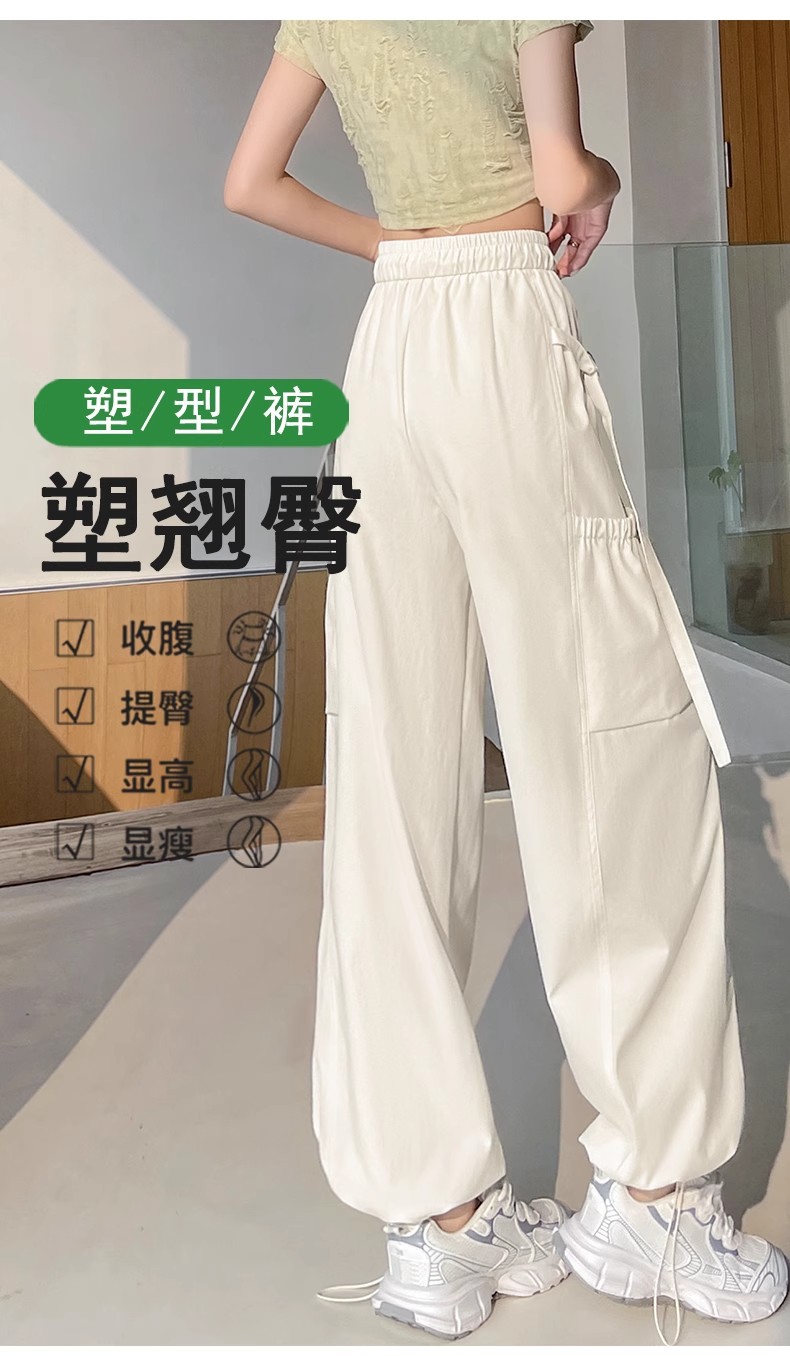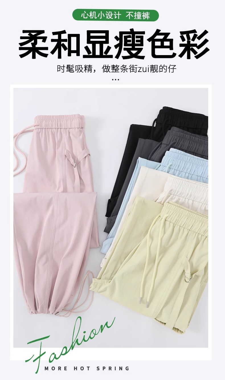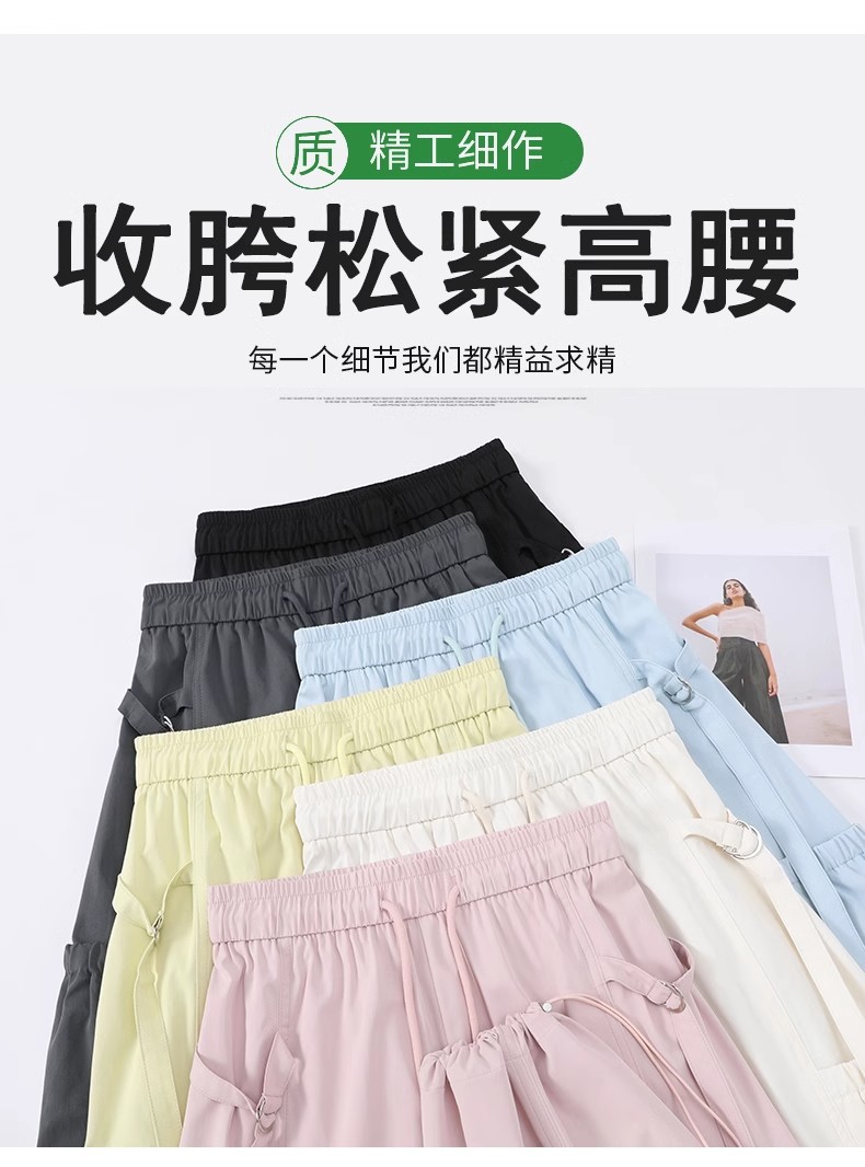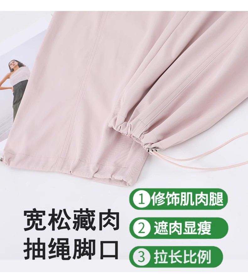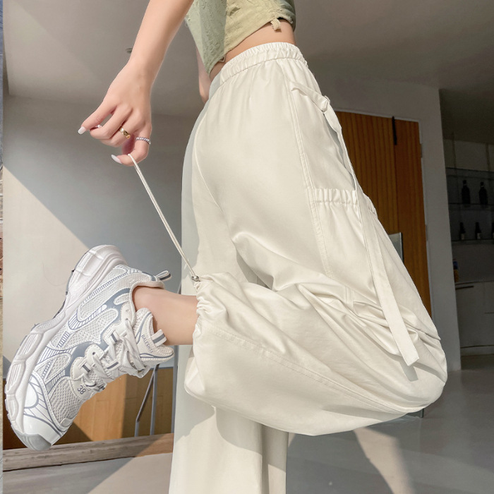 살구색 여성용 작업복 2025 봄 여름 신상 스트레이트 드로스트링 레깅스 투웨어 아메리칸 도파민 충전 스포츠 바지