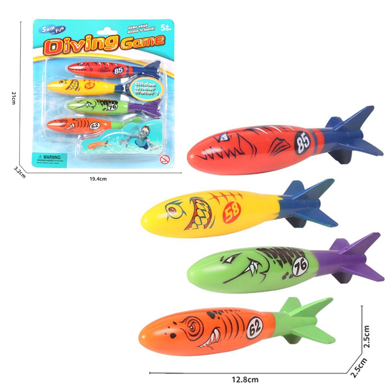 국경 간 뜨거운 판매 여름 장난감 수영장 보물 찾기 크기 상어 어뢰 다이빙 싱크 워터 플레이 장난감 세트
