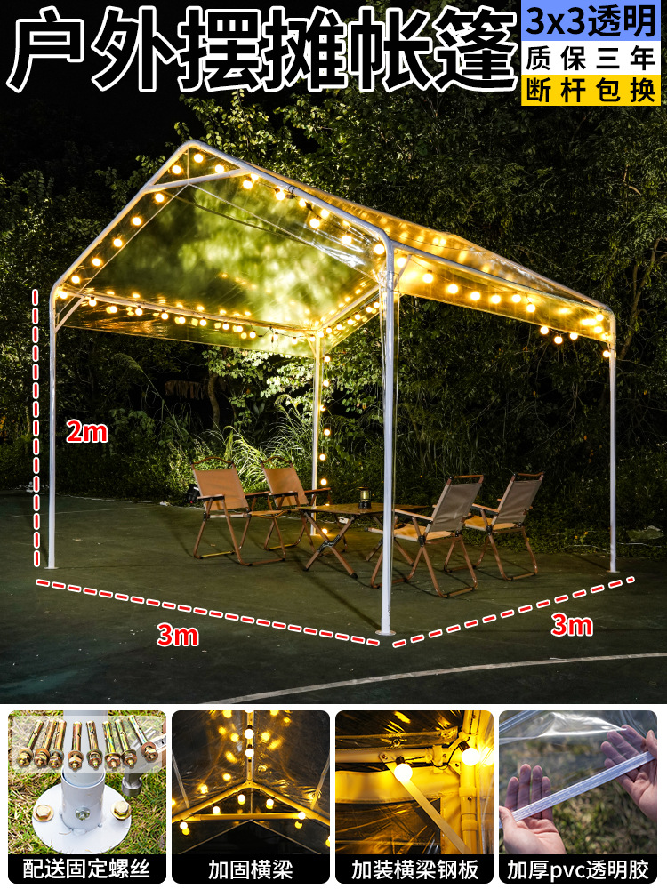 • 3Mx3M 투명 스톨 퍼걸러 완전 투명 + 3면
