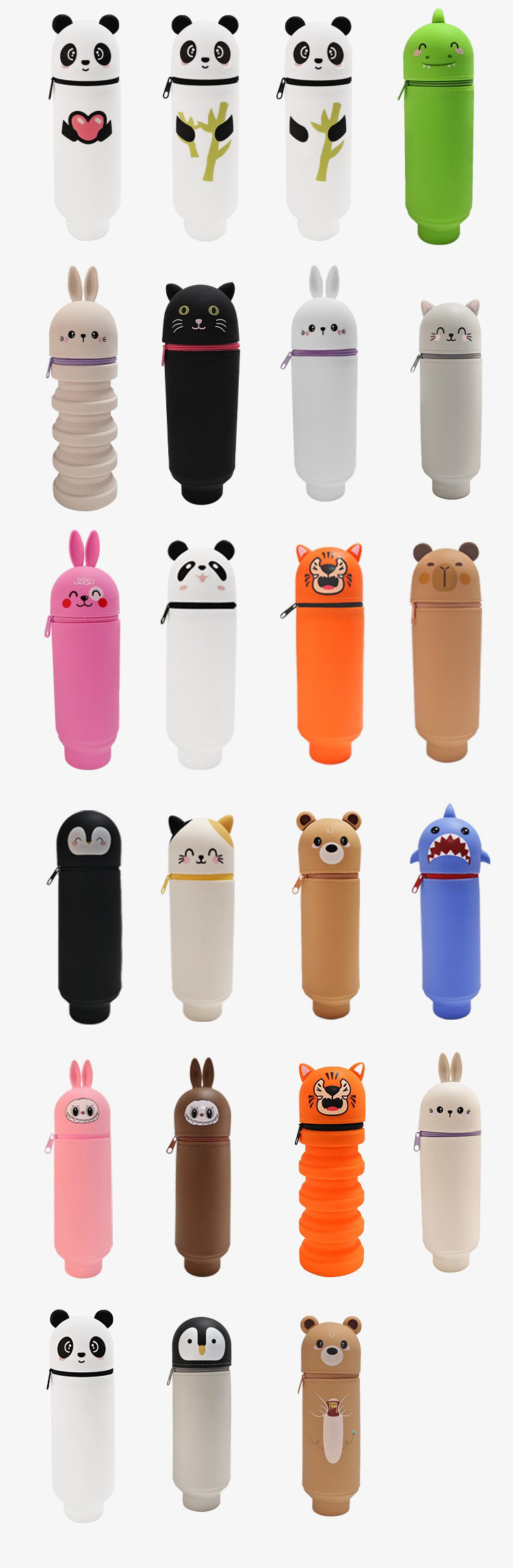 국경 간 팬더 실리콘 연필 케이스 연필 문구 상자 만화 학생 펜 저장 가방 연필 케이스 실리콘 문구 상자스토어 가기