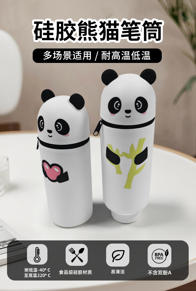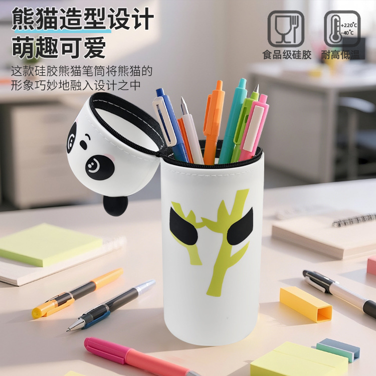 국경 간 팬더 실리콘 연필 케이스 연필 문구 상자 만화 학생 펜 저장 가방 연필 케이스 실리콘 문구 상자