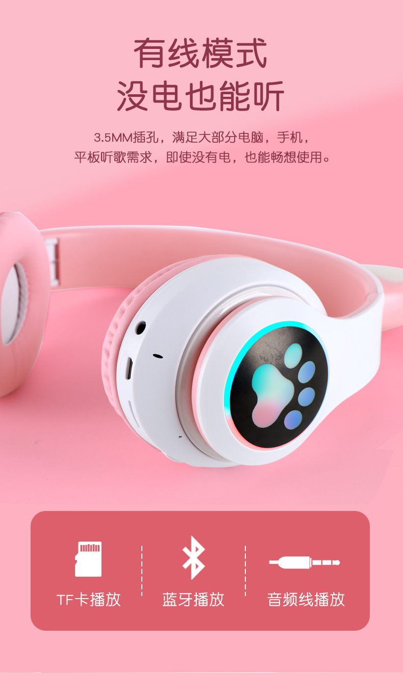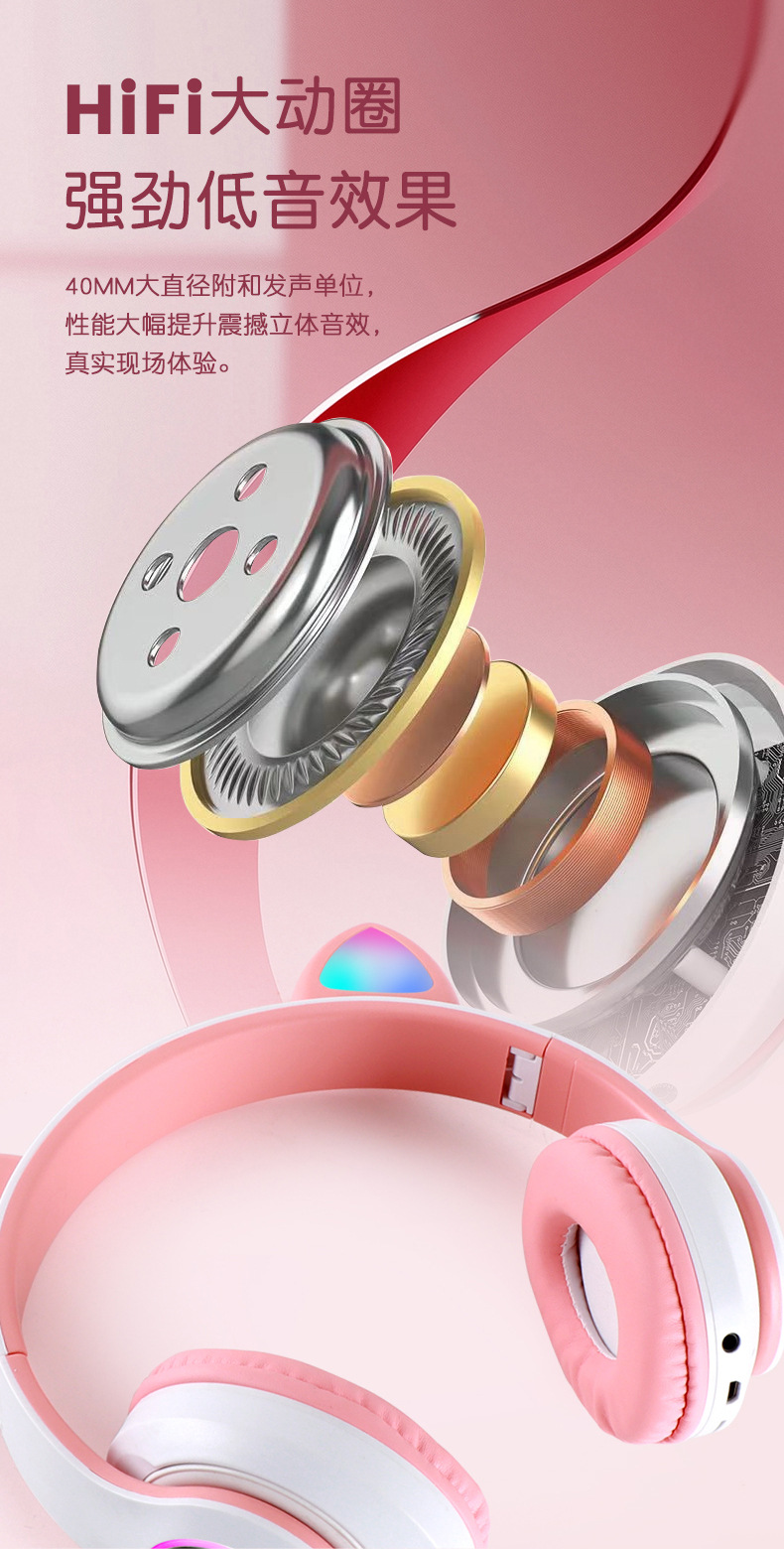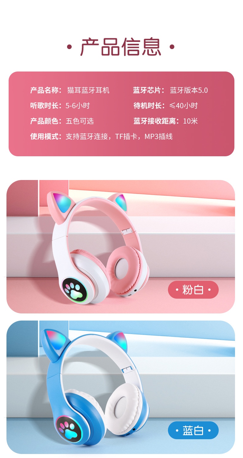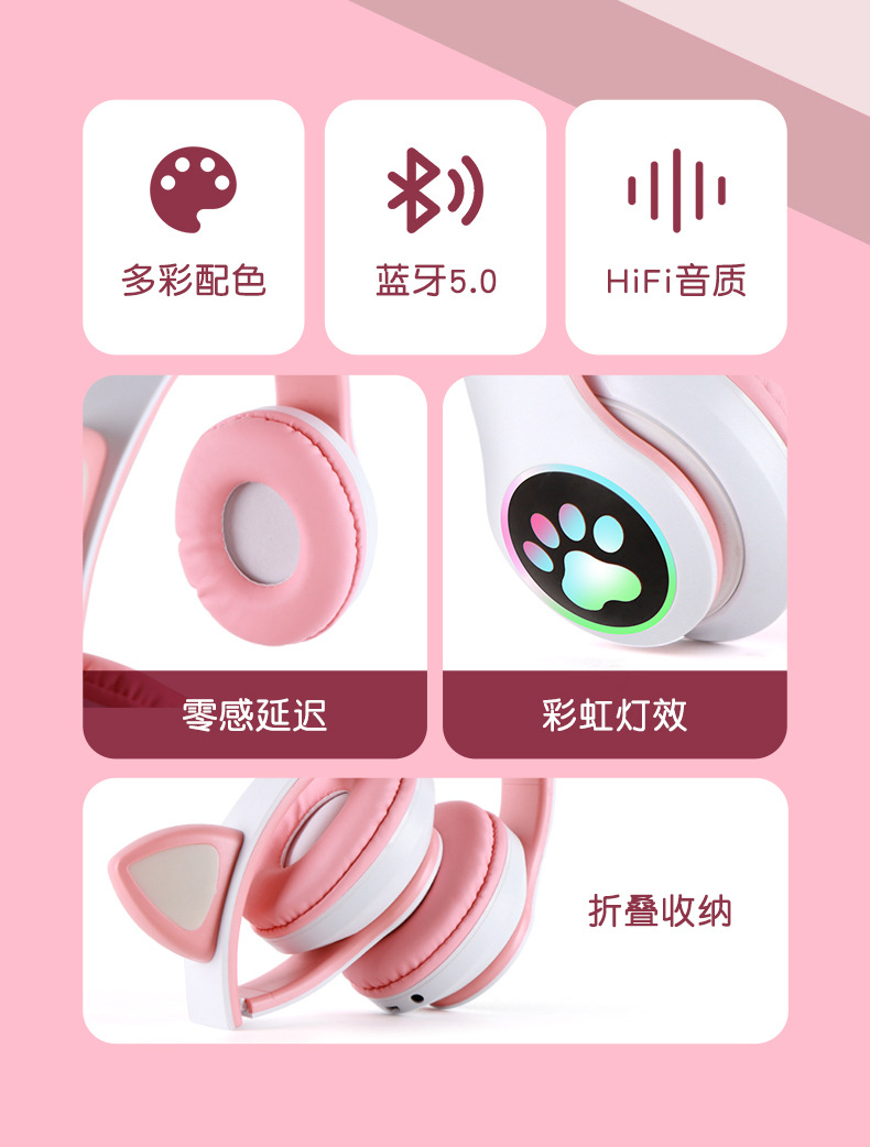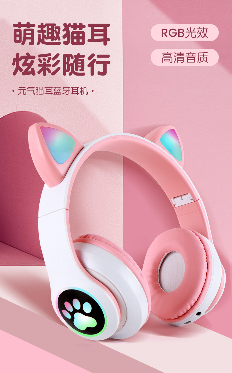새로운 STN-28 소녀용 발광 고양이 귀 헤드셋 무선 블루투스 이어폰 접이식 스포츠 게임용 이어폰스토어 가기