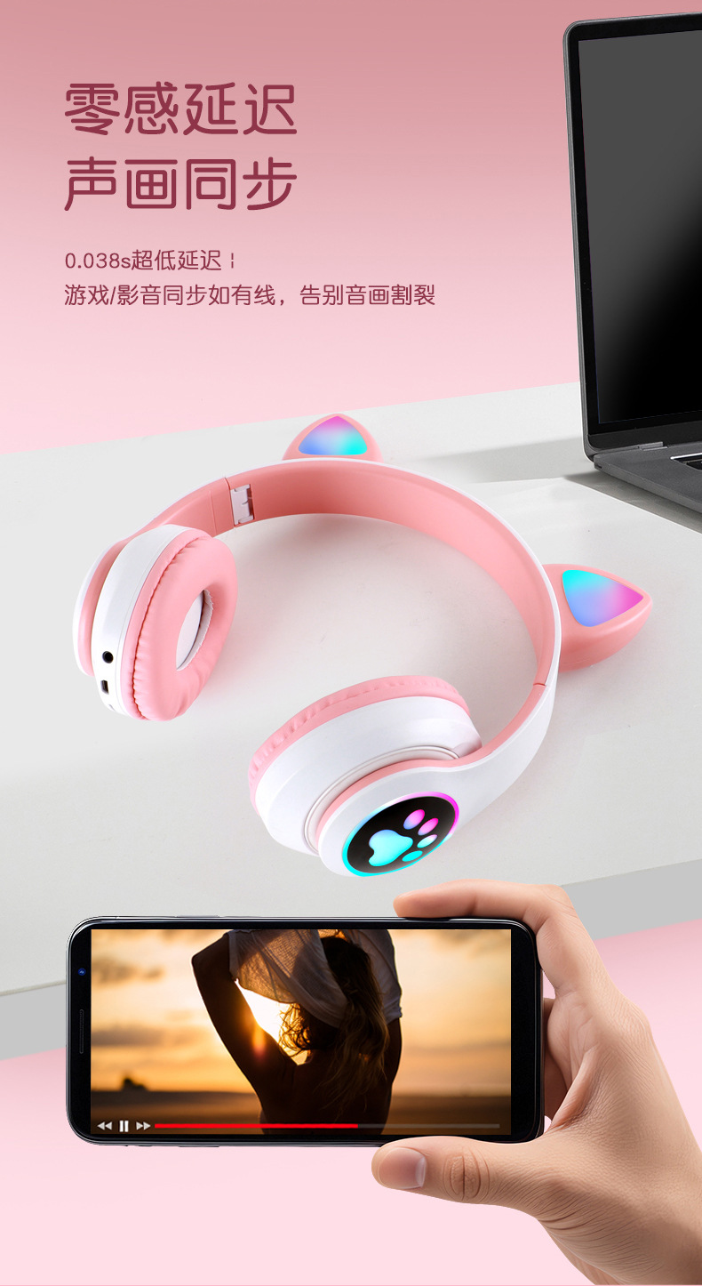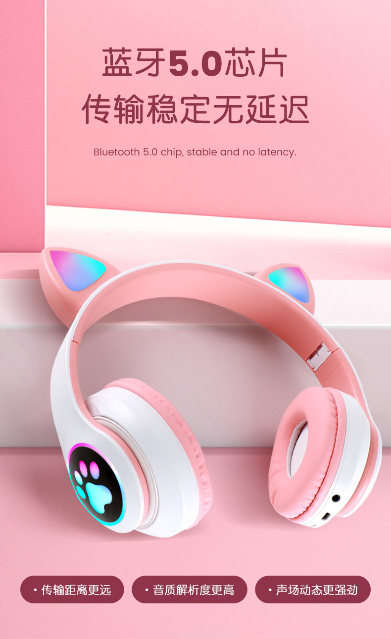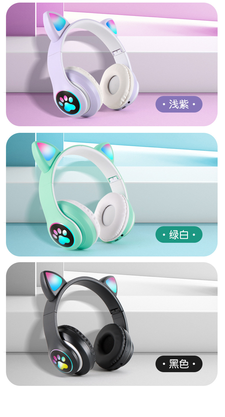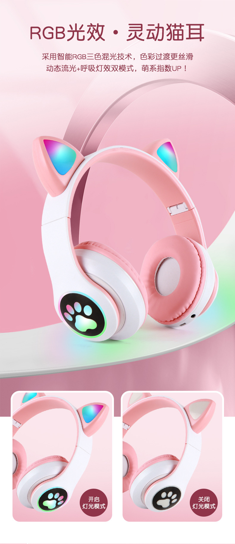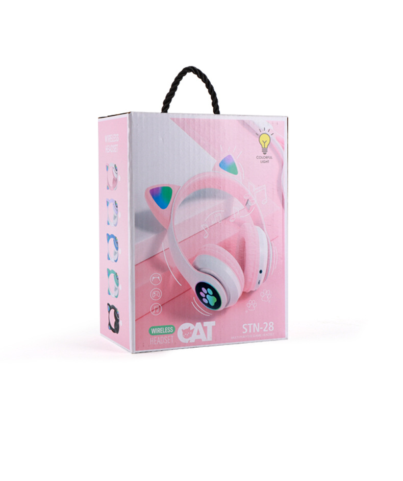 새로운 STN-28 소녀용 발광 고양이 귀 헤드셋 무선 블루투스 이어폰 접이식 스포츠 게임용 이어폰