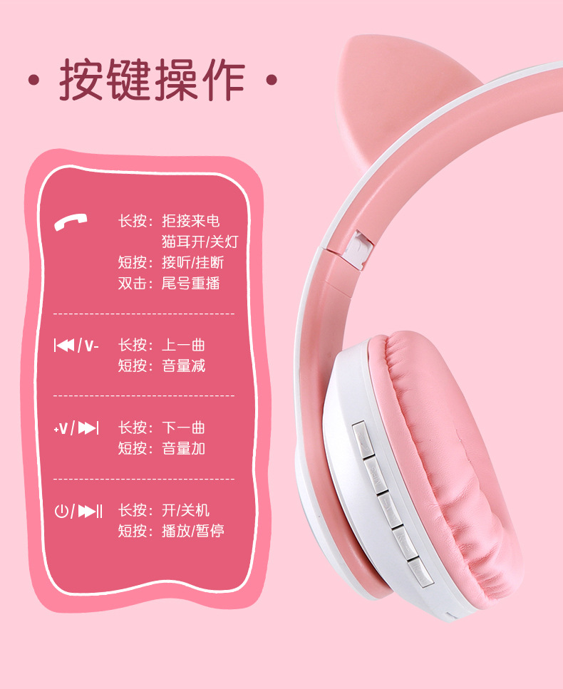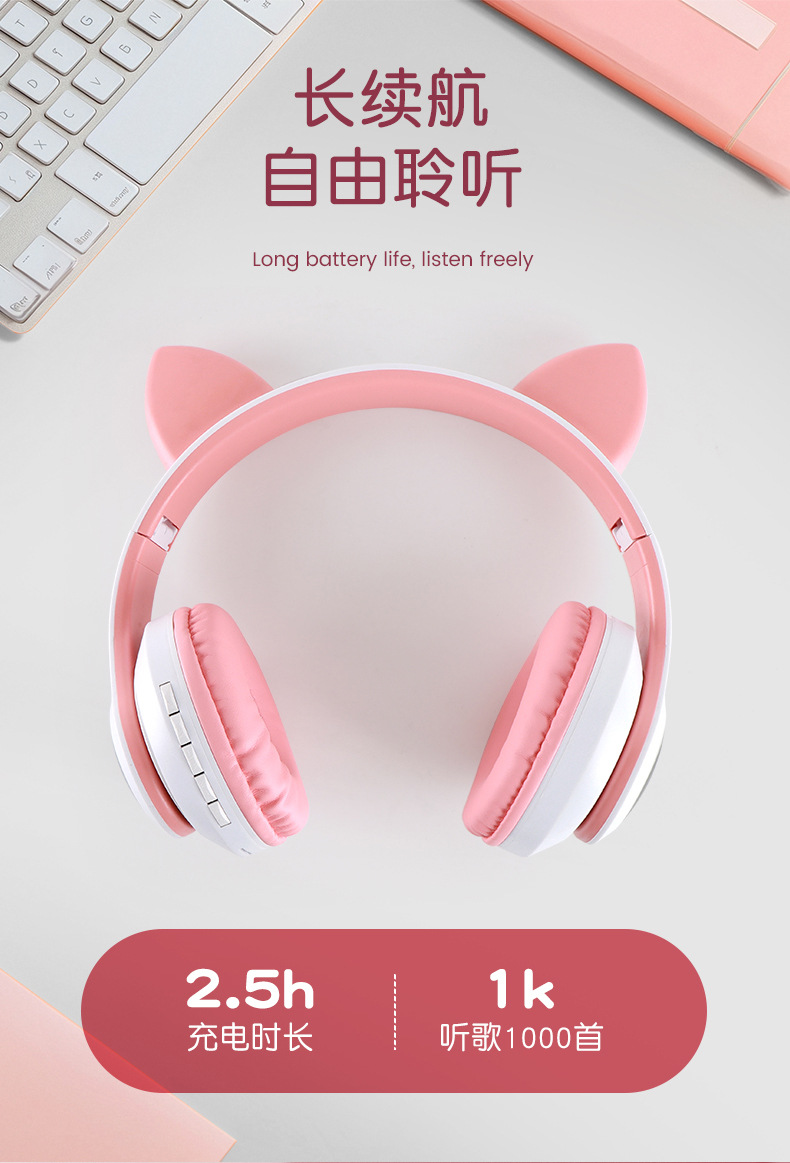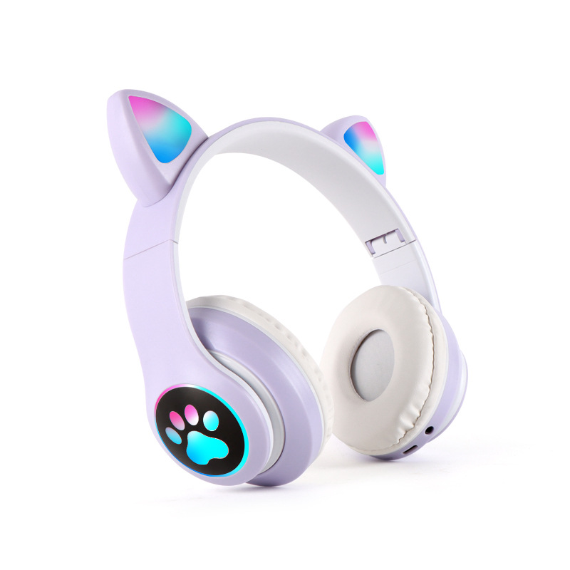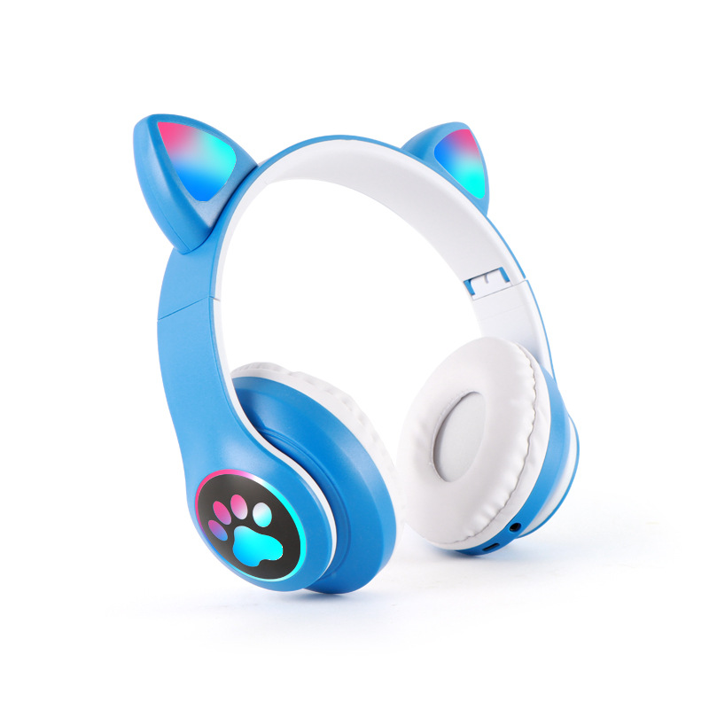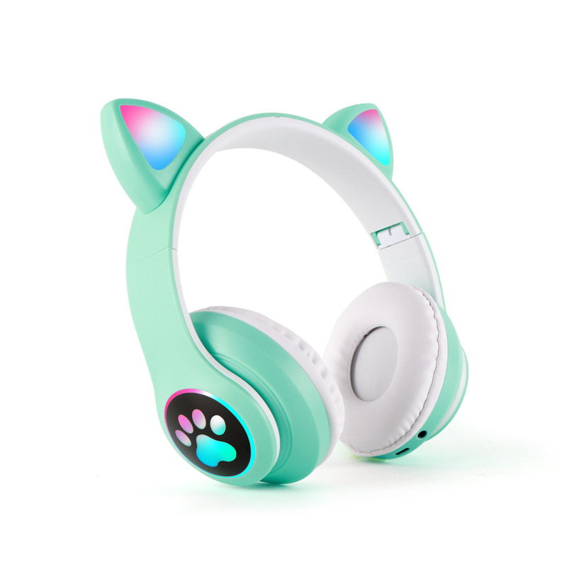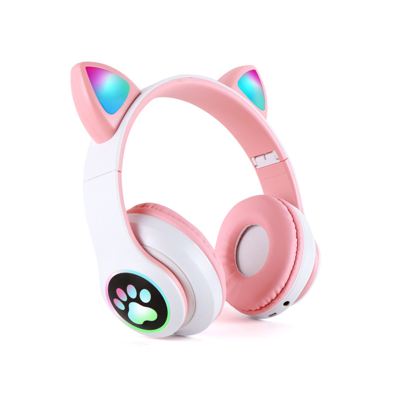 새로운 STN-28 소녀용 발광 고양이 귀 헤드셋 무선 블루투스 이어폰 접이식 스포츠 게임용 이어폰