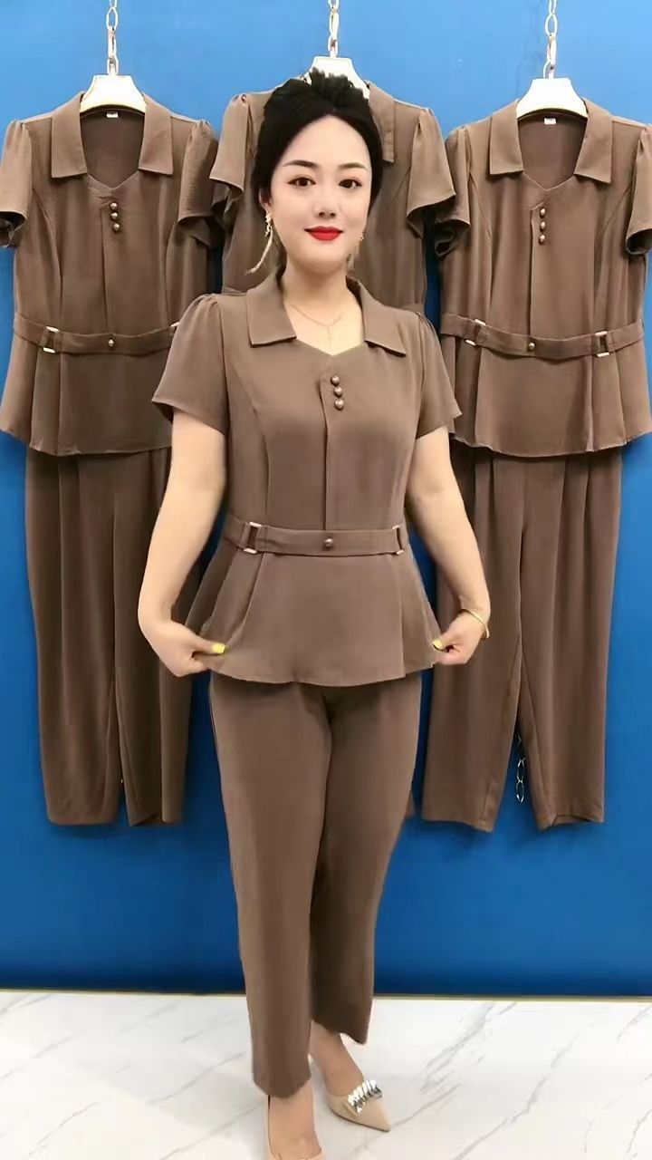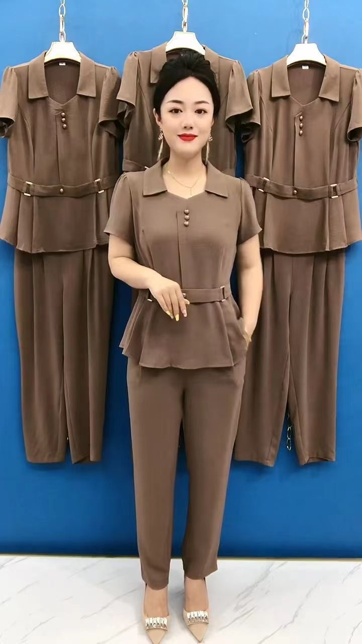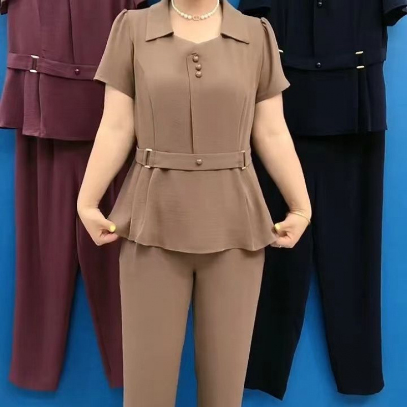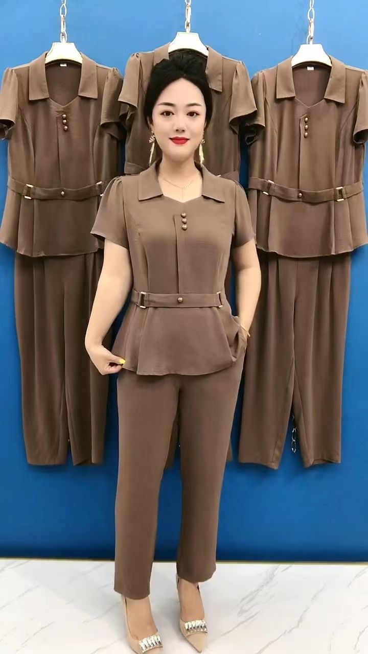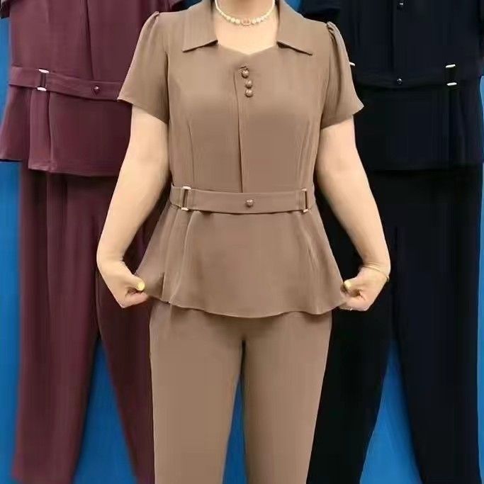 세트 여성의 고급 중년 어머니 서양식 여름 플러스 사이즈 느슨한 여름 캐주얼 반팔 투피스 세트 2024 새로운스토어 가기