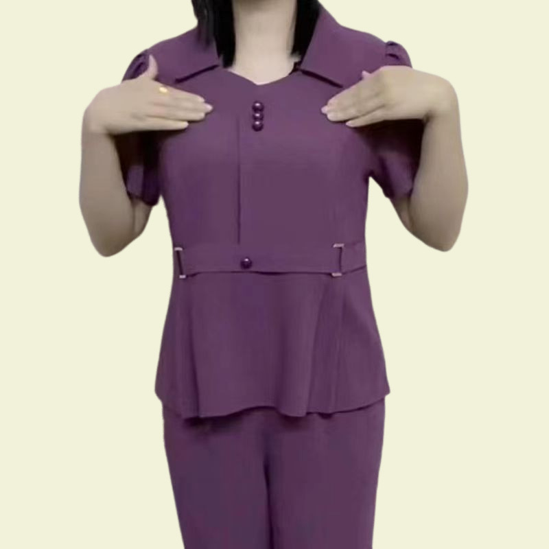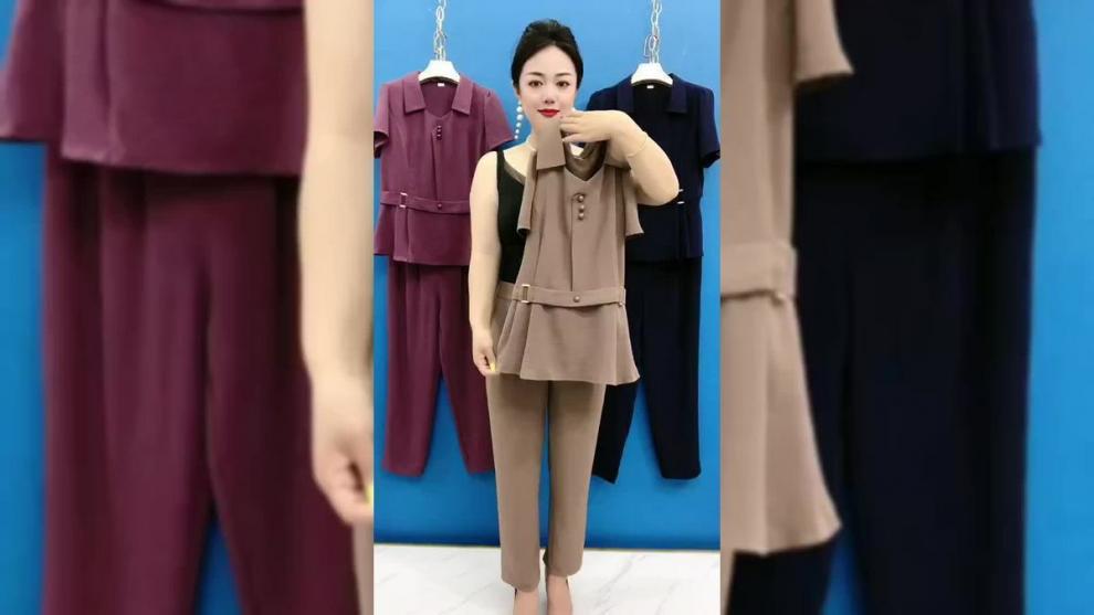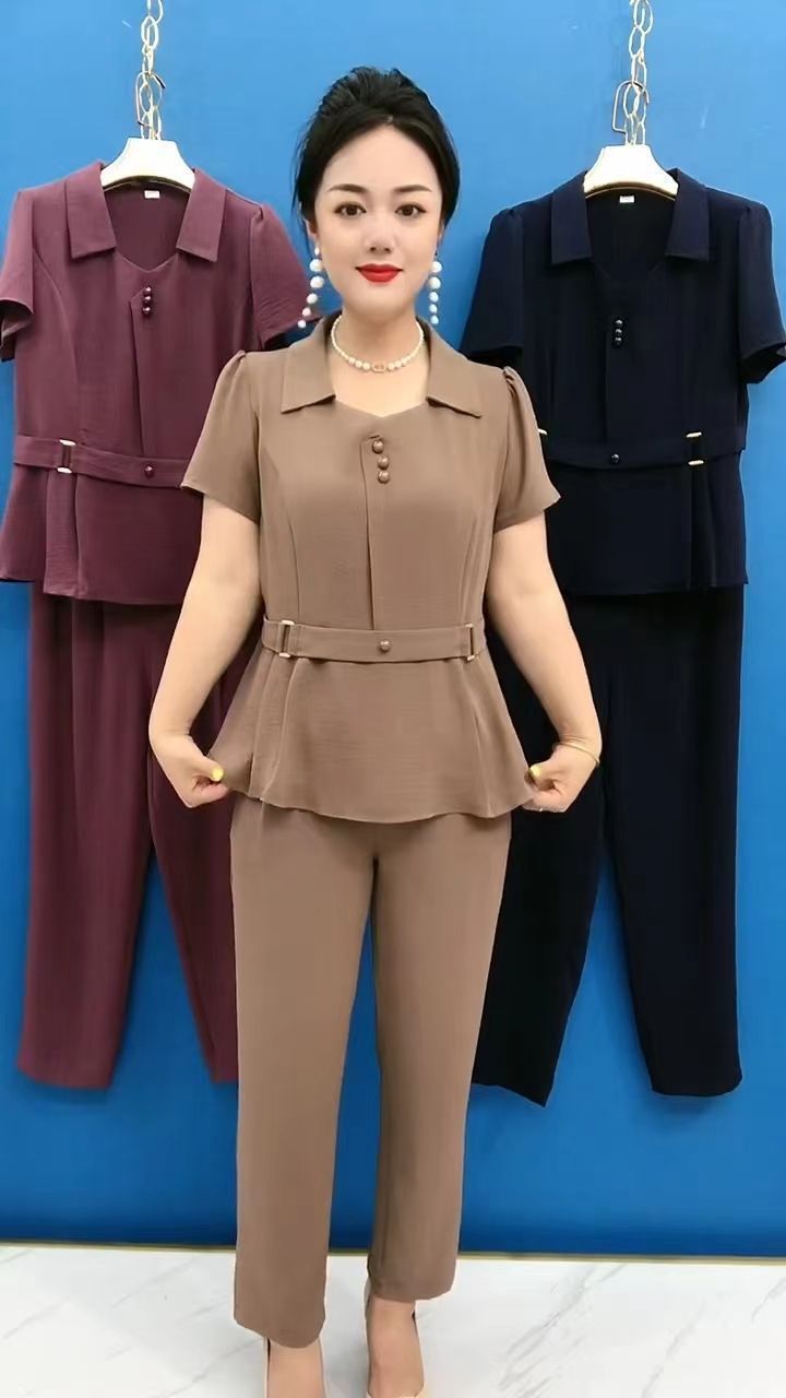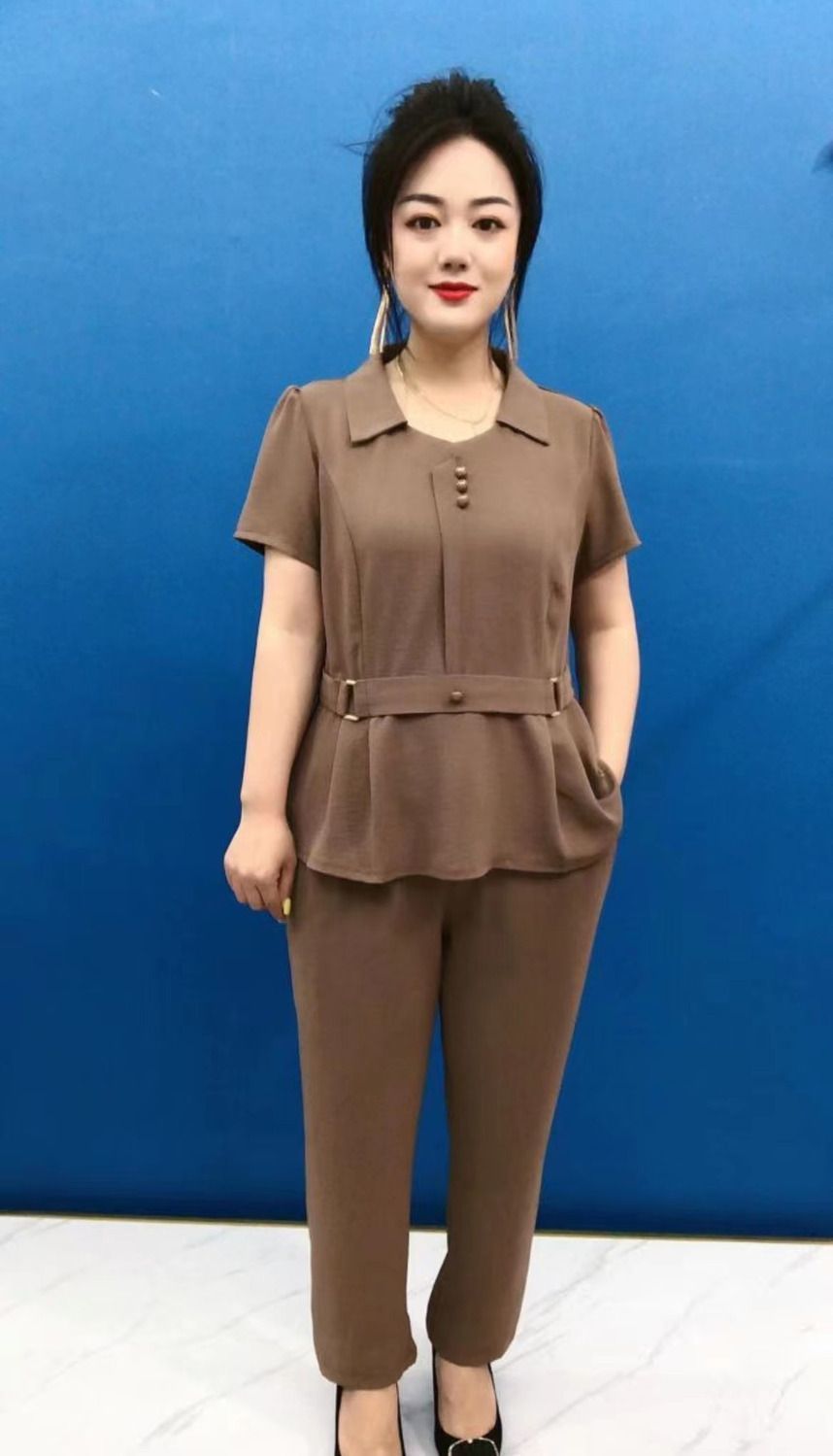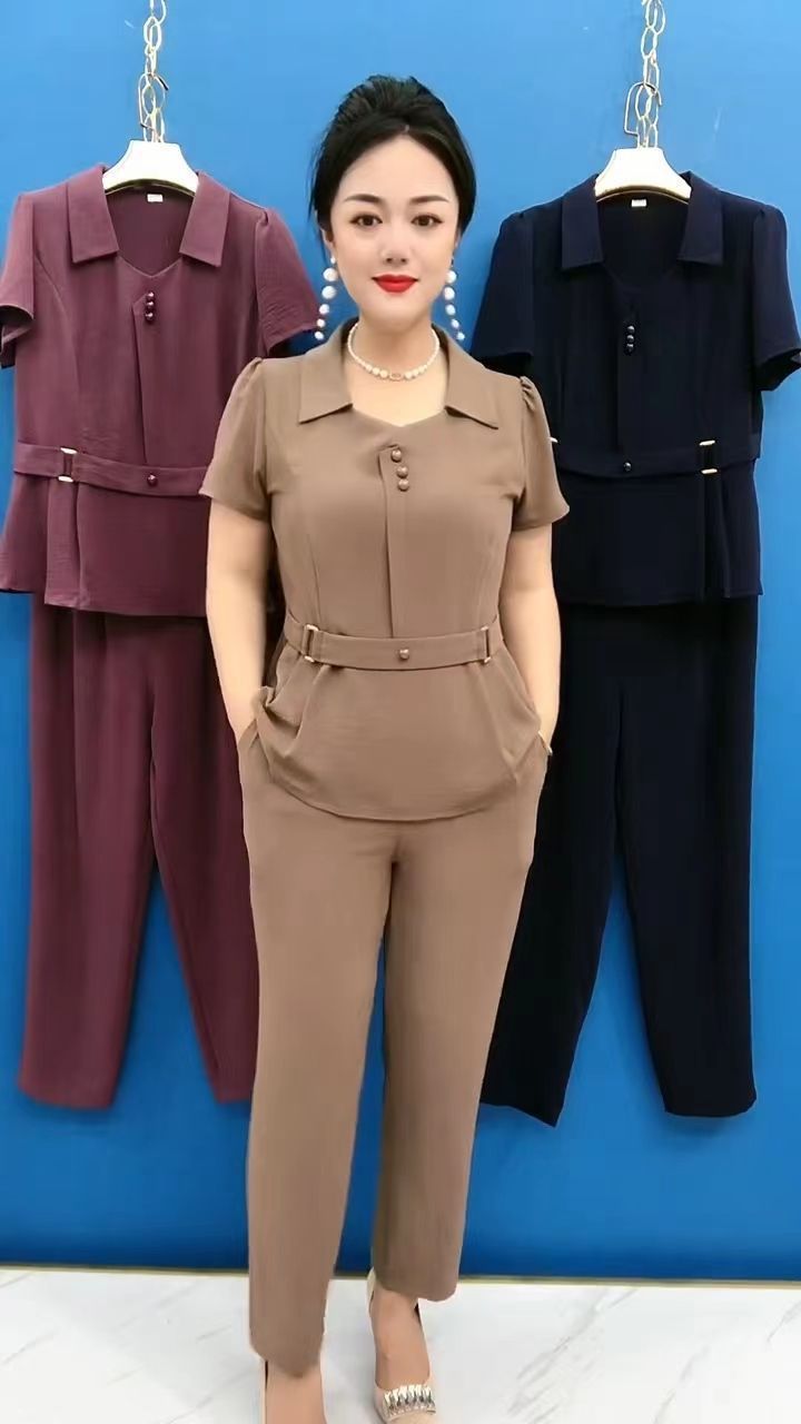 세트 여성의 고급 중년 어머니 서양식 여름 플러스 사이즈 느슨한 여름 캐주얼 반팔 투피스 세트 2024 새로운스토어 가기