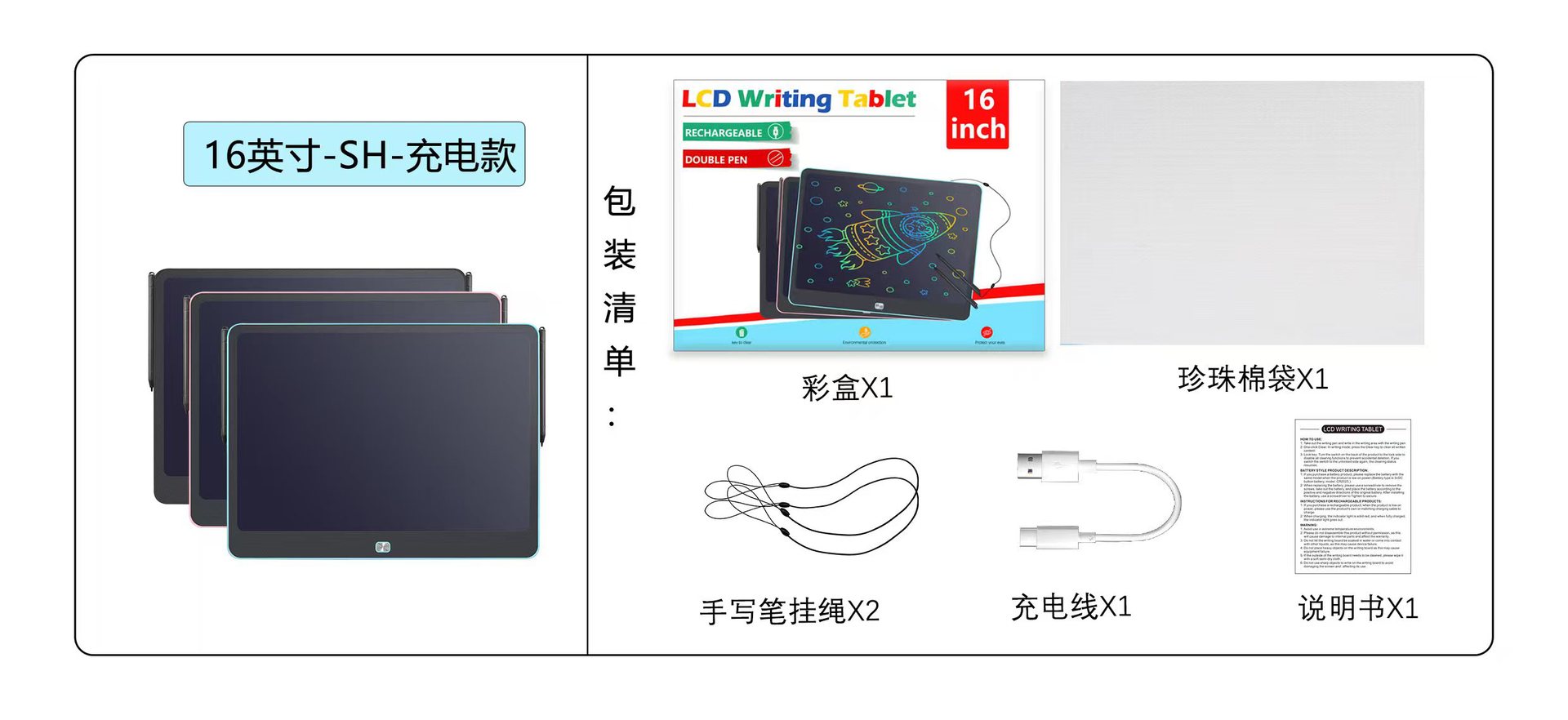 대형 충전식 LCD 드로잉 보드 16inch LCD 듀얼 펜 드로잉 보드 작은 칠판 어린이 낙서 보드 필기 보드