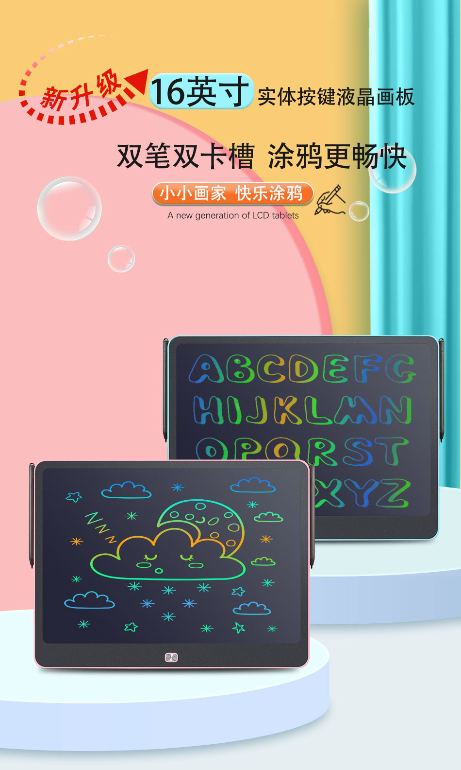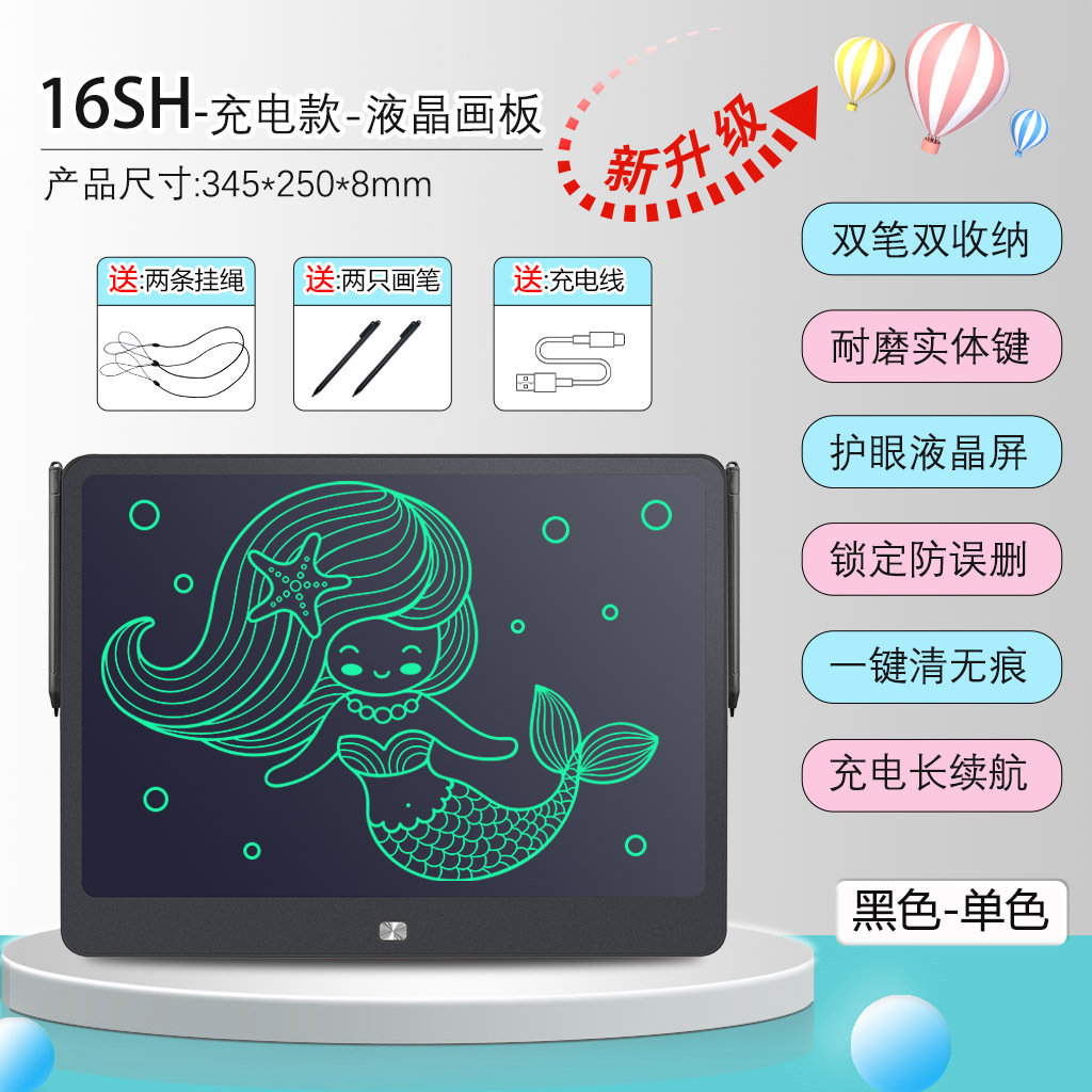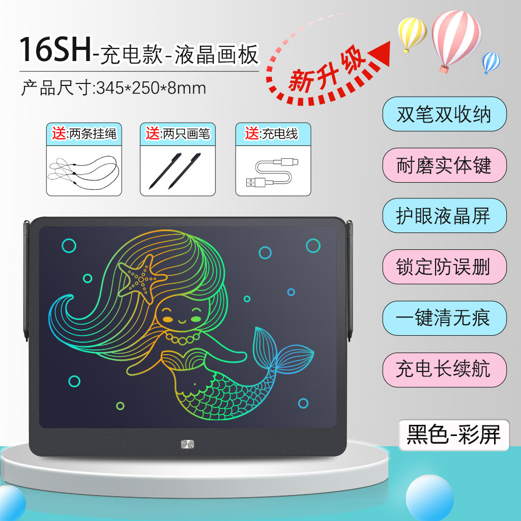대형 충전식 LCD 드로잉 보드 16inch LCD 듀얼 펜 드로잉 보드 작은 칠판 어린이 낙서 보드 필기 보드스토어 가기