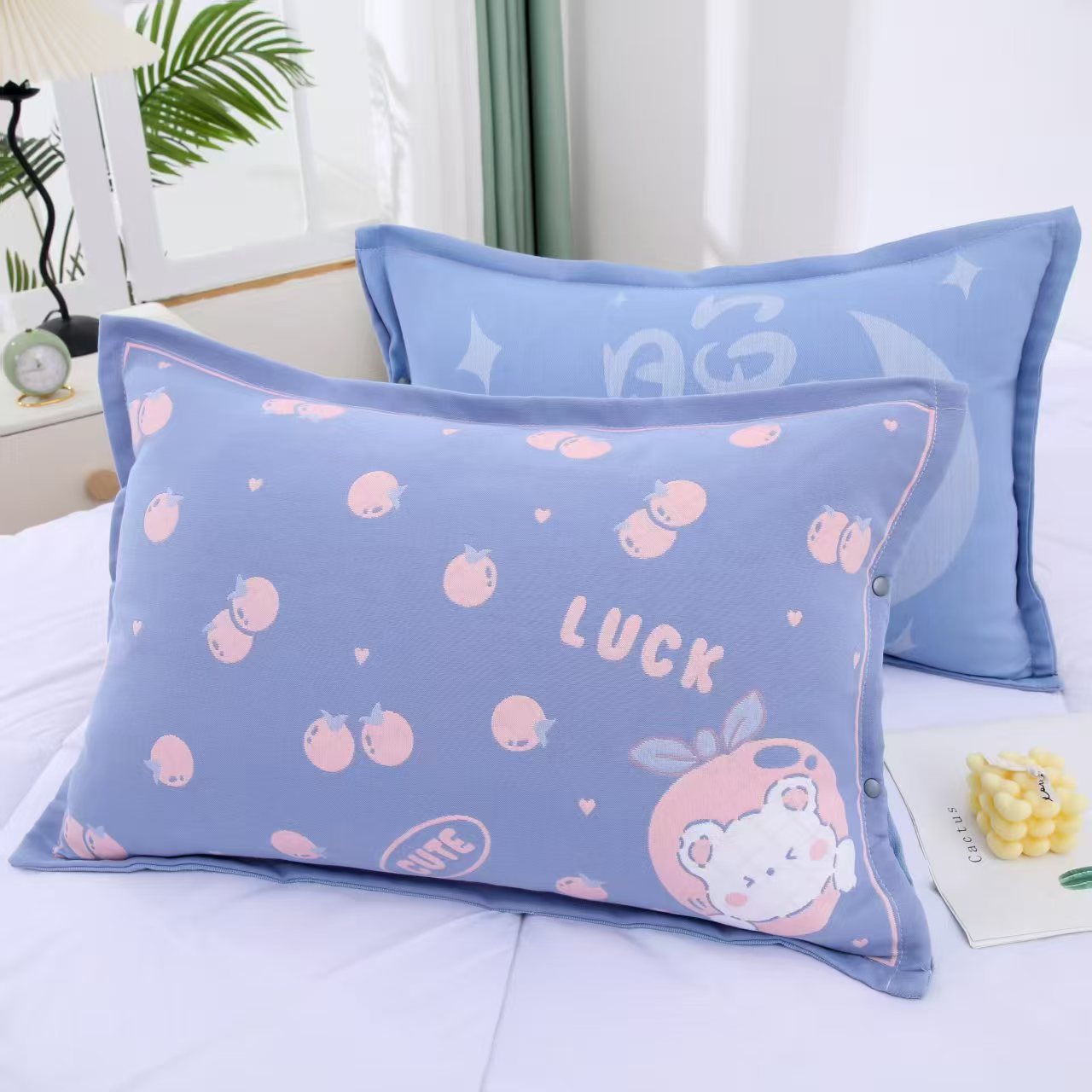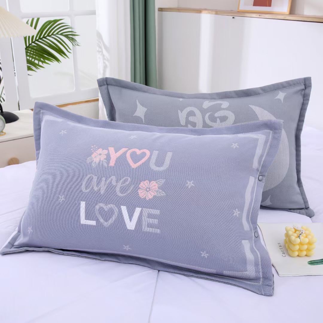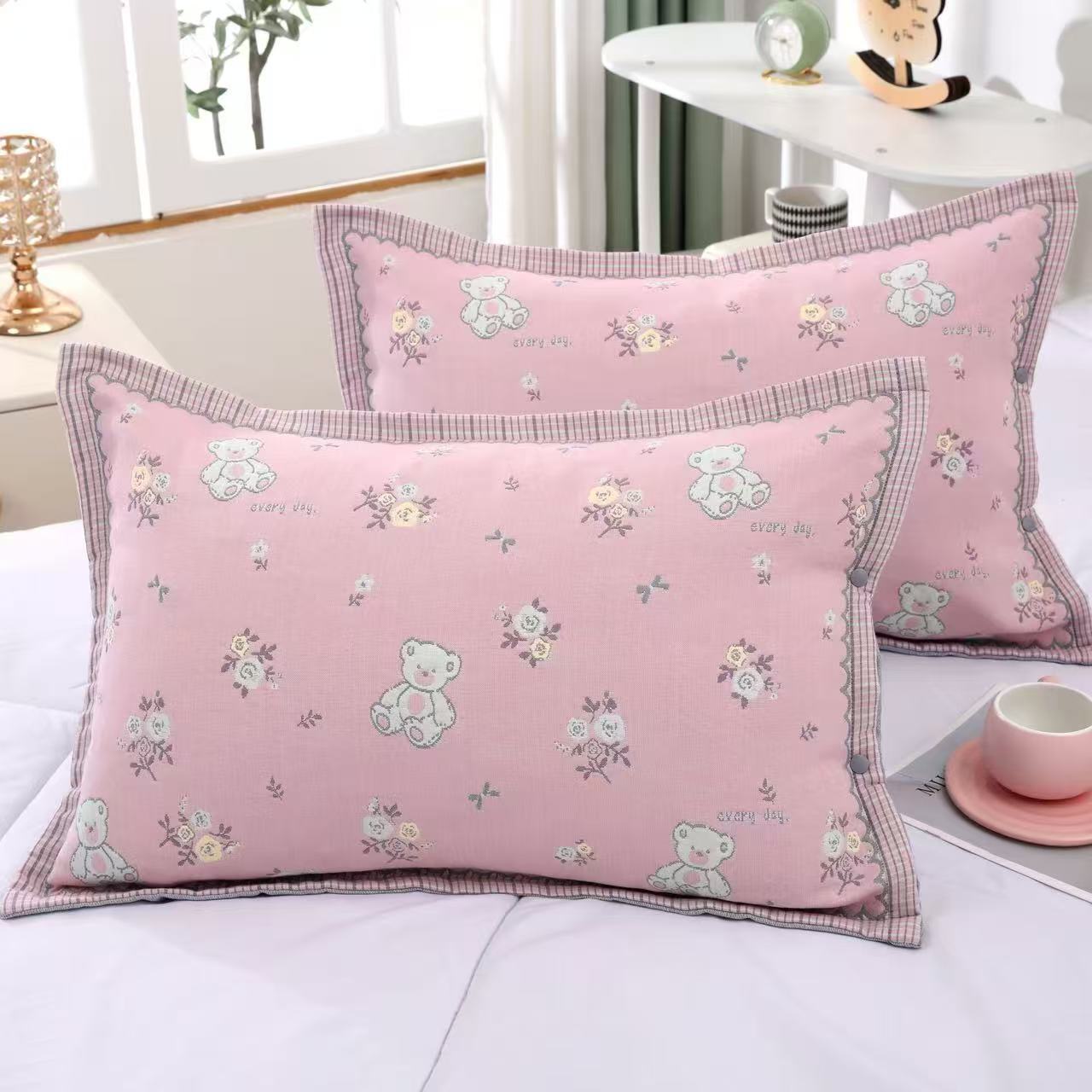 40*60 순면 거즈 베개 커버 한 쌍, 대형 및 두꺼운 순면 베개 커버, 가정용 싱글 성인용 베개 커버스토어 가기