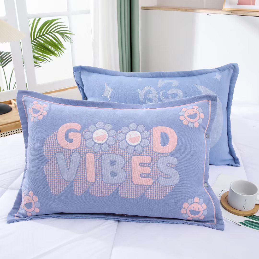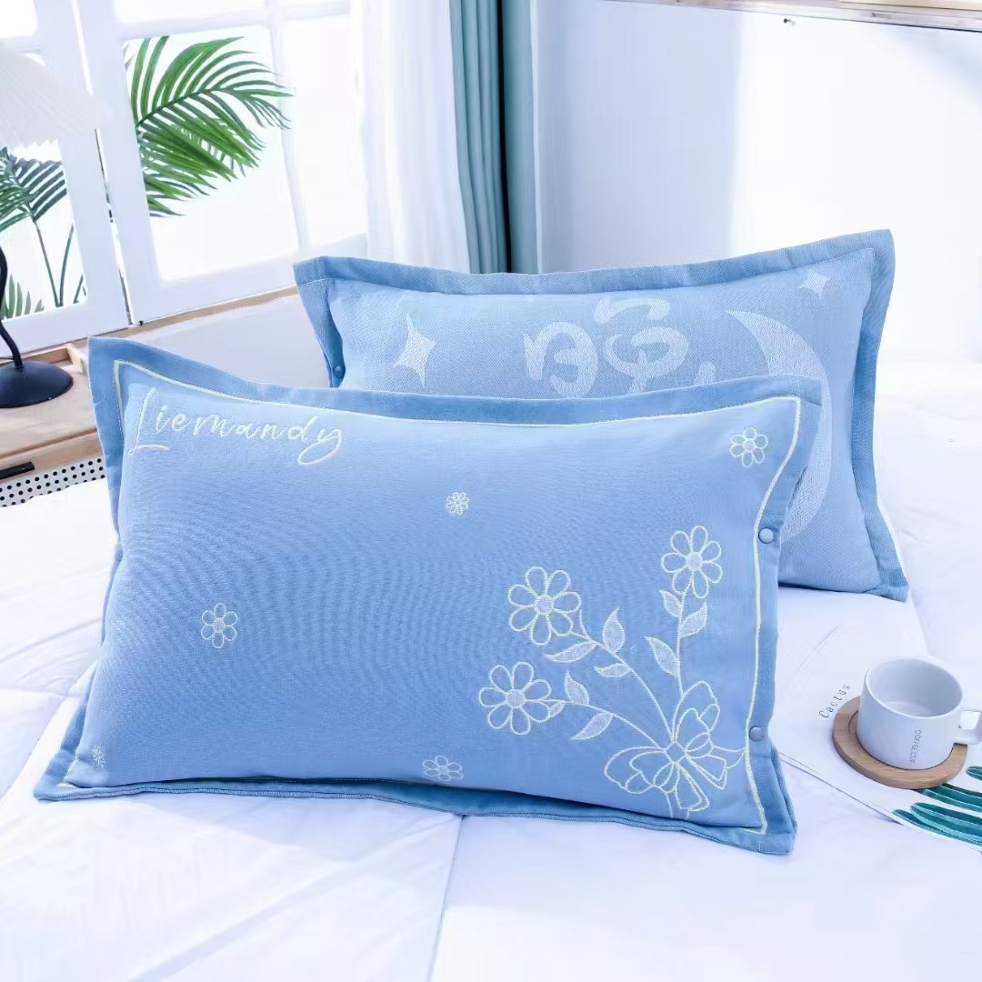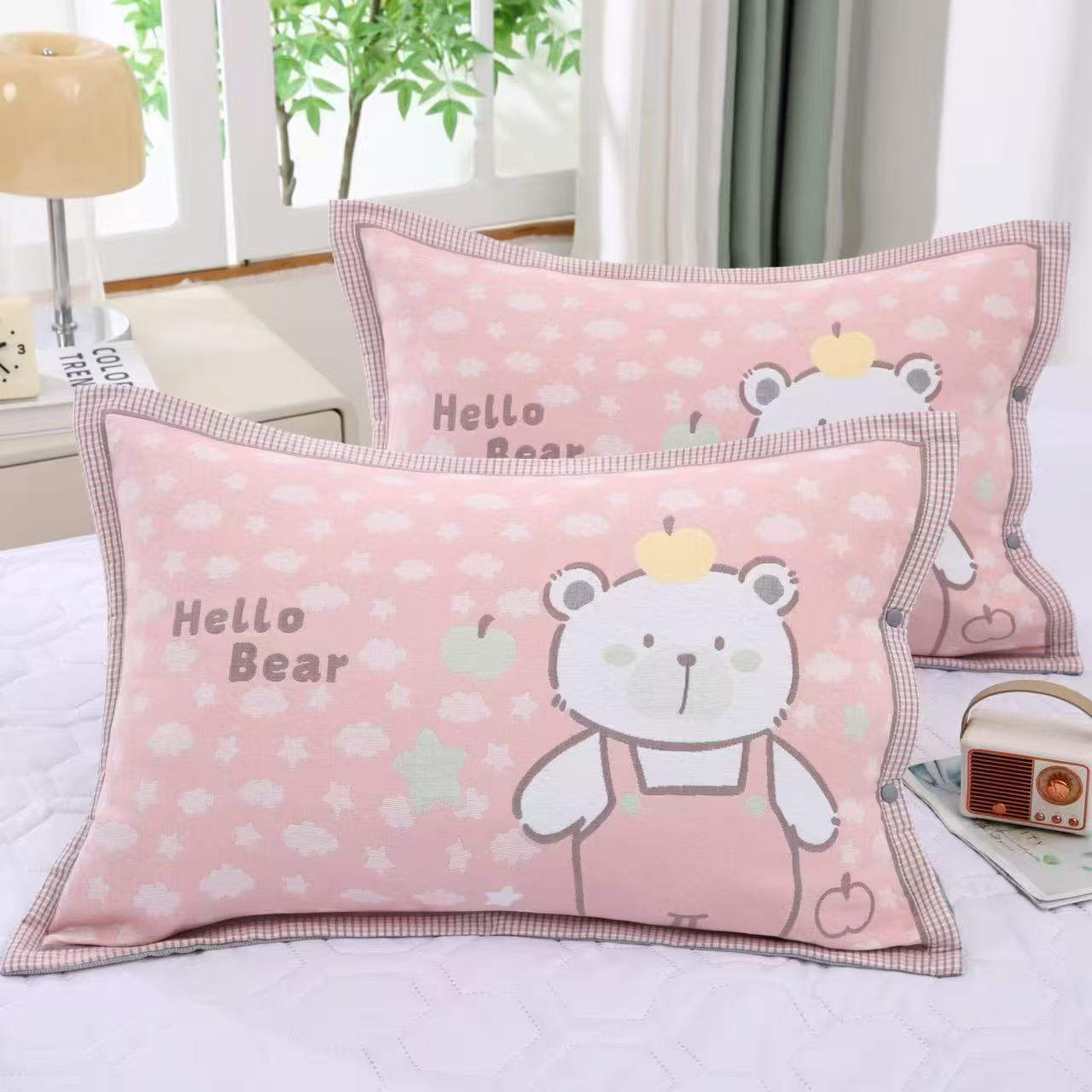 40*60 순면 거즈 베개 커버 한 쌍, 대형 및 두꺼운 순면 베개 커버, 가정용 싱글 성인용 베개 커버스토어 가기