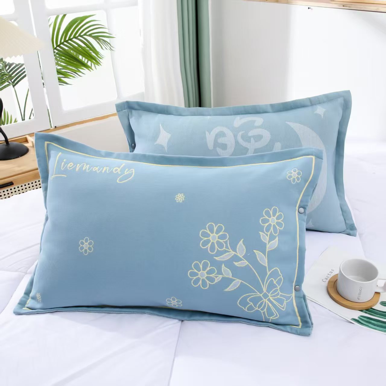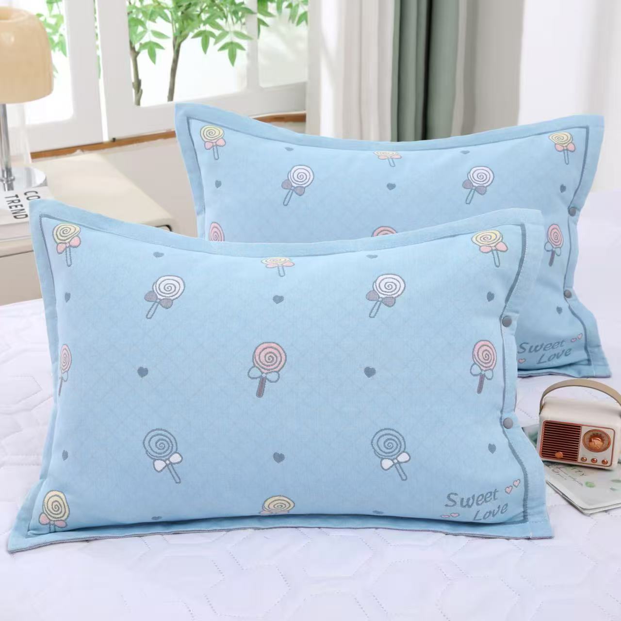40*60 순면 거즈 베개 커버 한 쌍, 대형 및 두꺼운 순면 베개 커버, 가정용 싱글 성인용 베개 커버
