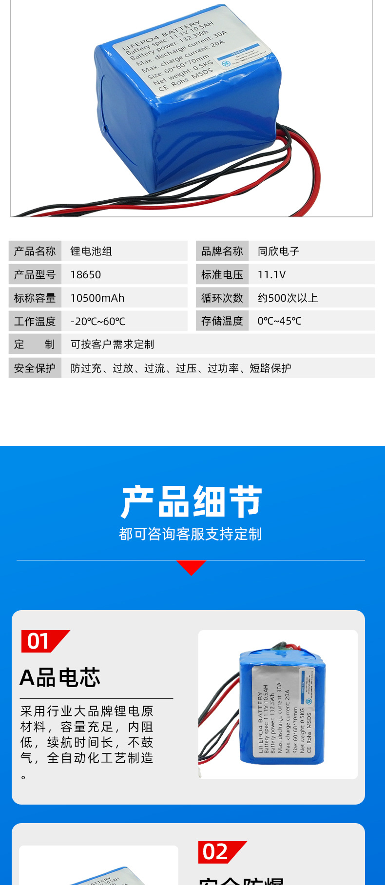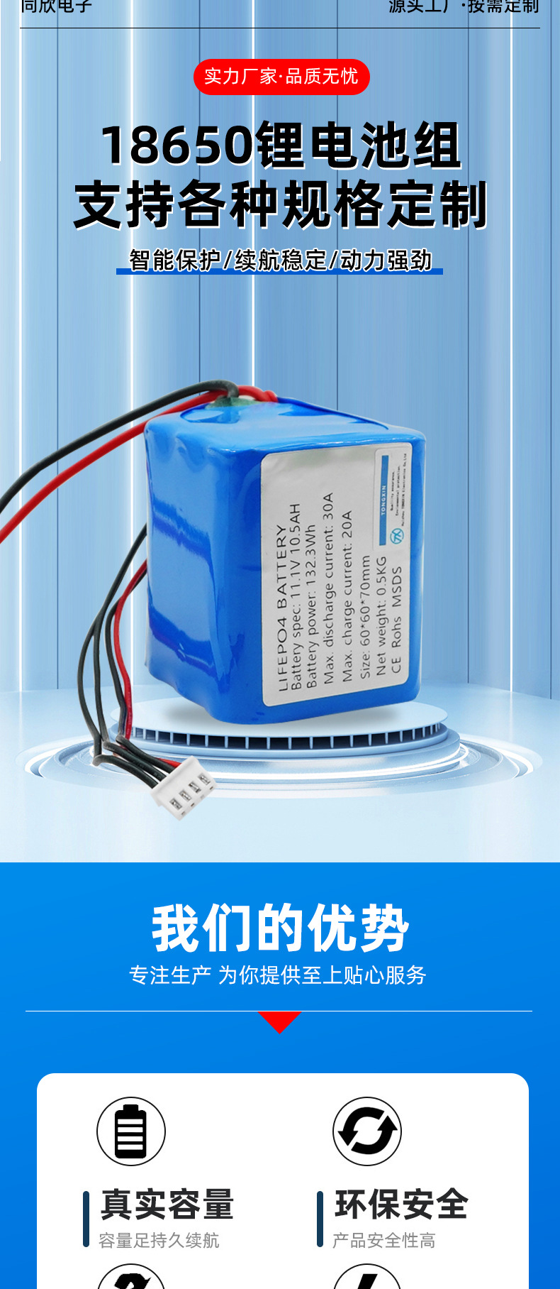 18650 폴리머 리튬 배터리 팩 11.1V 배터리 애완 동물 워터 디스펜서 블루투스 스피커 전자 체중계 모니터링