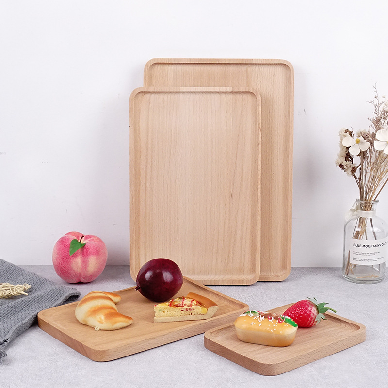 스팟 나무 트레이 레스토랑 서빙 트레이 직사각형 너도밤나무 트레이 세트 고급 사무실 애프터눈 티 트레이스토어 가기