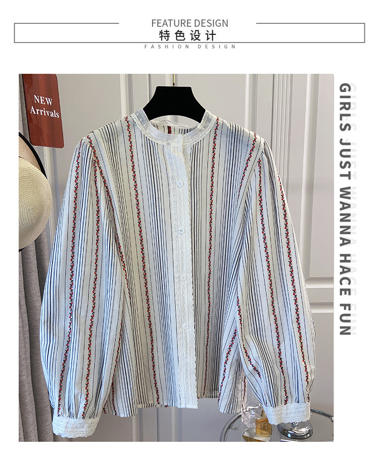 이른 봄 뉴 에이지 감소 꽃 줄무늬 긴팔 셔츠 탑 여성 플러스 사이즈 느슨한 틈새 달콤한 셔츠 트렌드