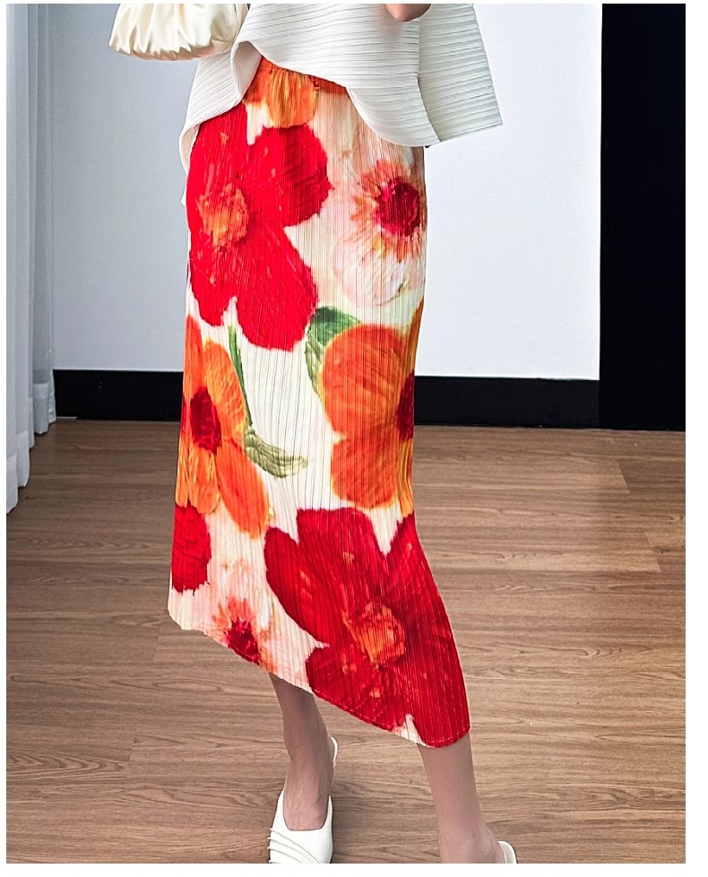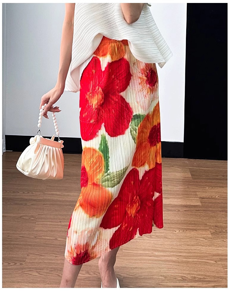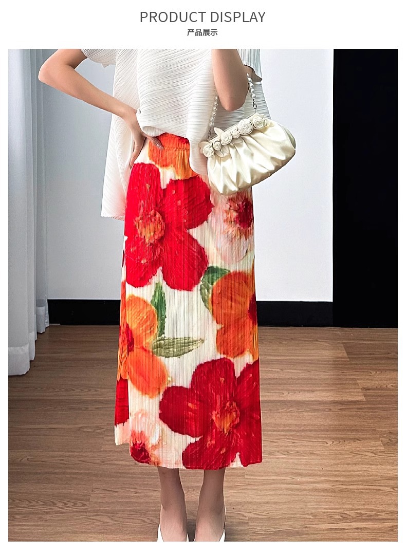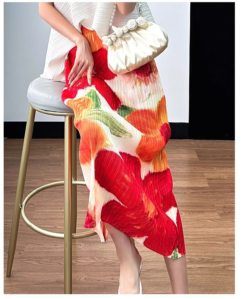 2025년 여름 여성을 위한 캐주얼 스커트, 중간 길이 스커트, 고급 주름 스트레이트 스커트, 슬리밍 하이웨이스트 A라인 스커트스토어 가기