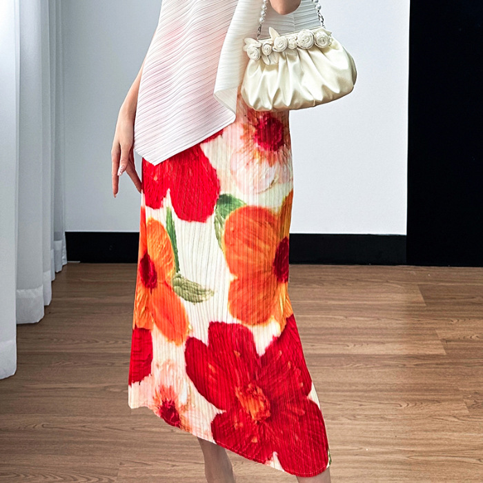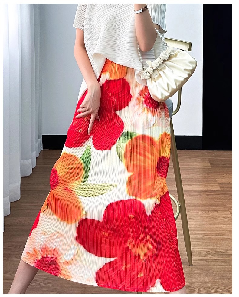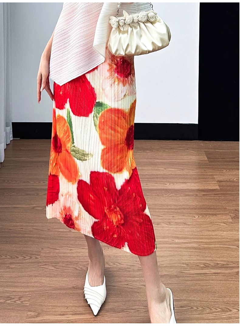 2025년 여름 여성을 위한 캐주얼 스커트, 중간 길이 스커트, 고급 주름 스트레이트 스커트, 슬리밍 하이웨이스트 A라인 스커트
