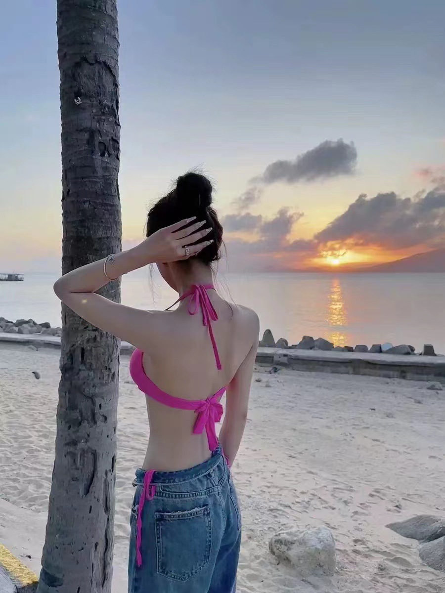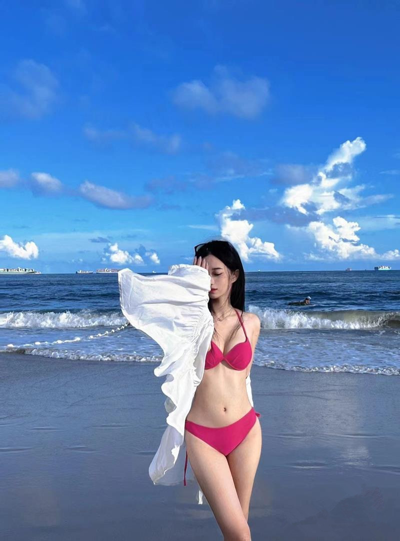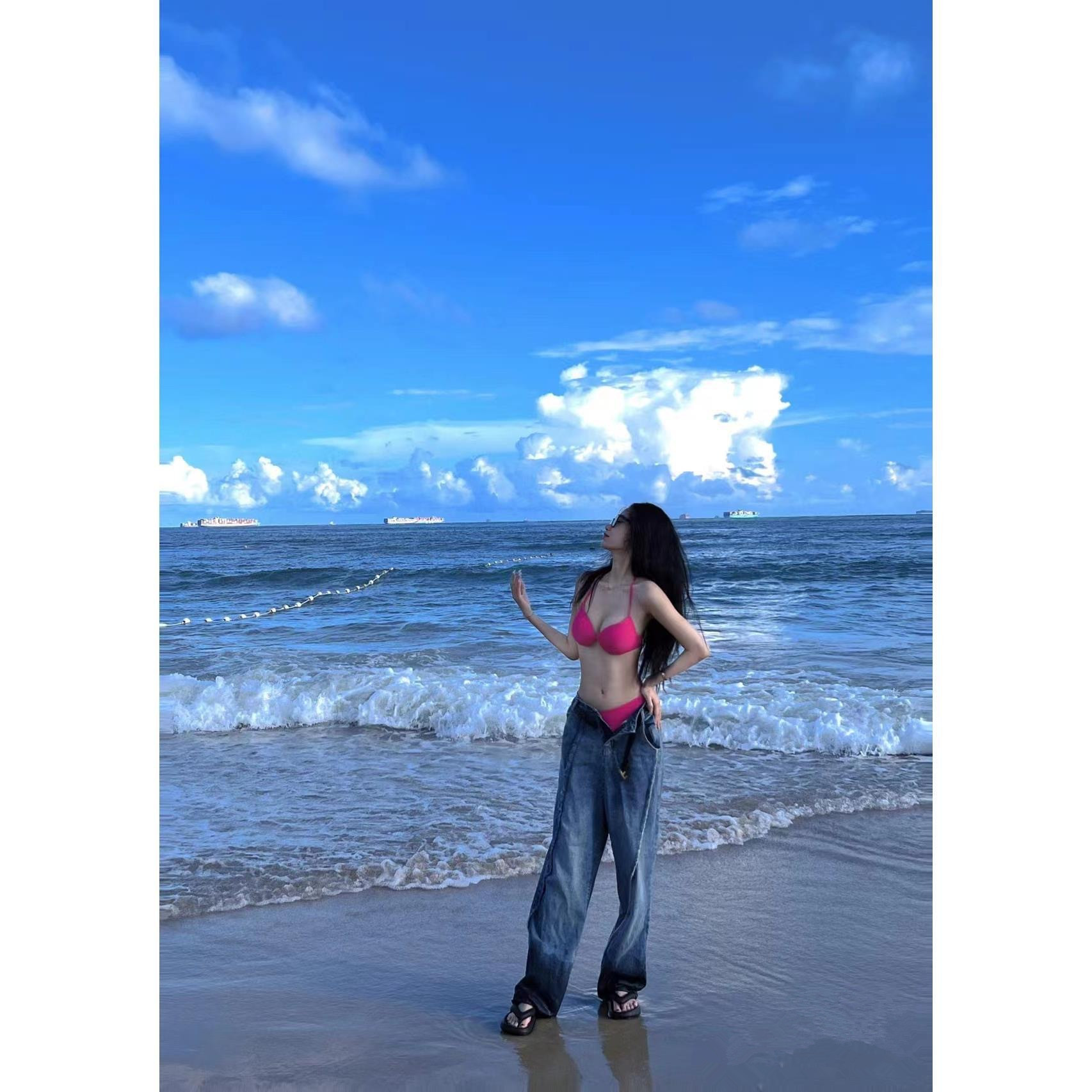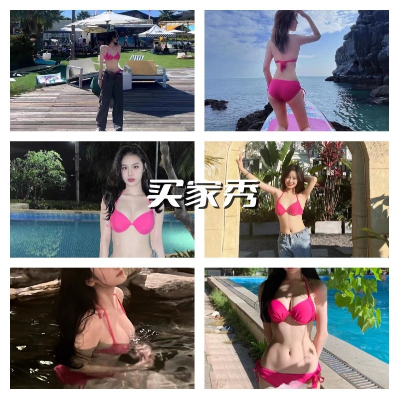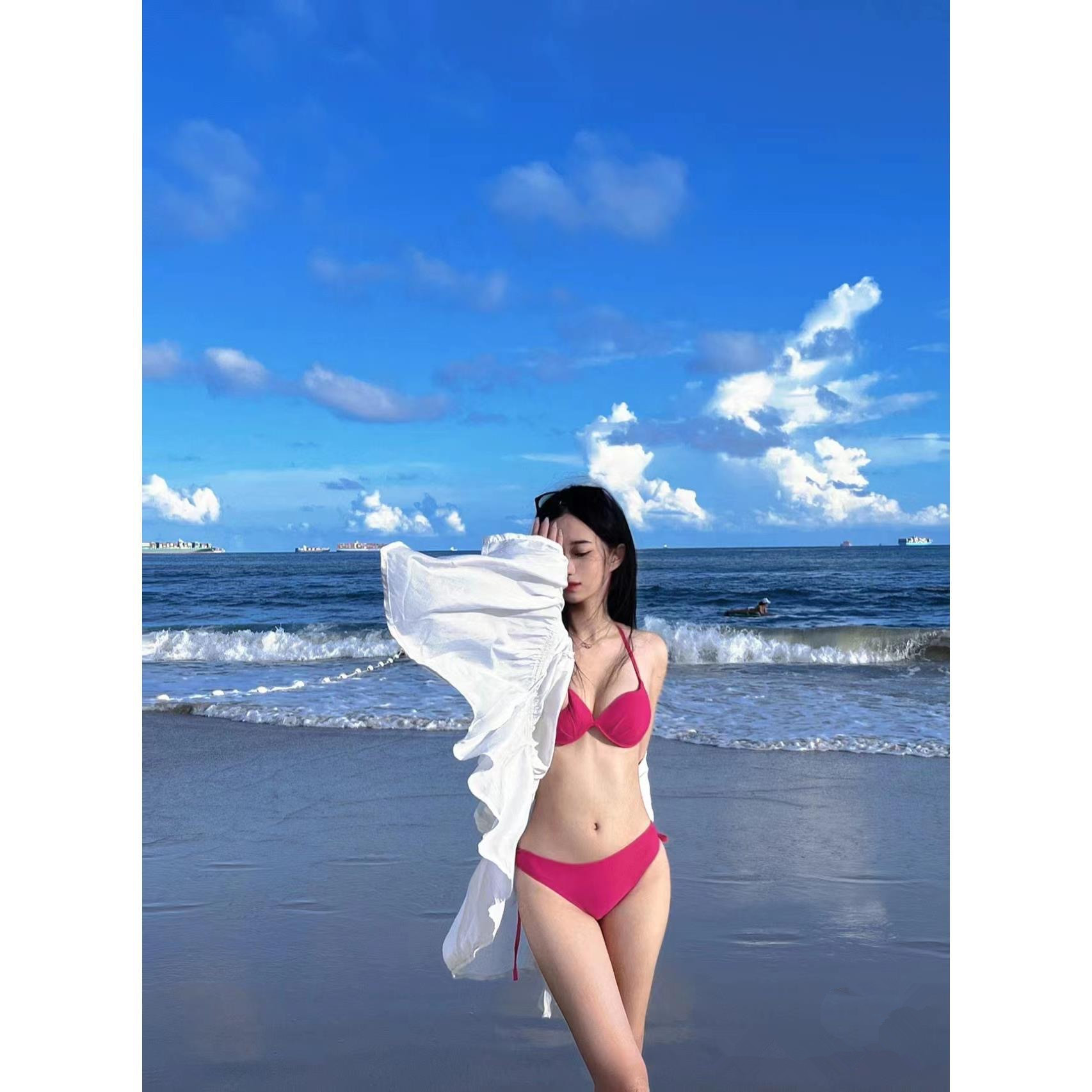 비키니 투피스 화이트 섹시 로즈 레드 스플릿 수영복 소녀 온천 해변 휴가 순수 욕망 수영복스토어 가기